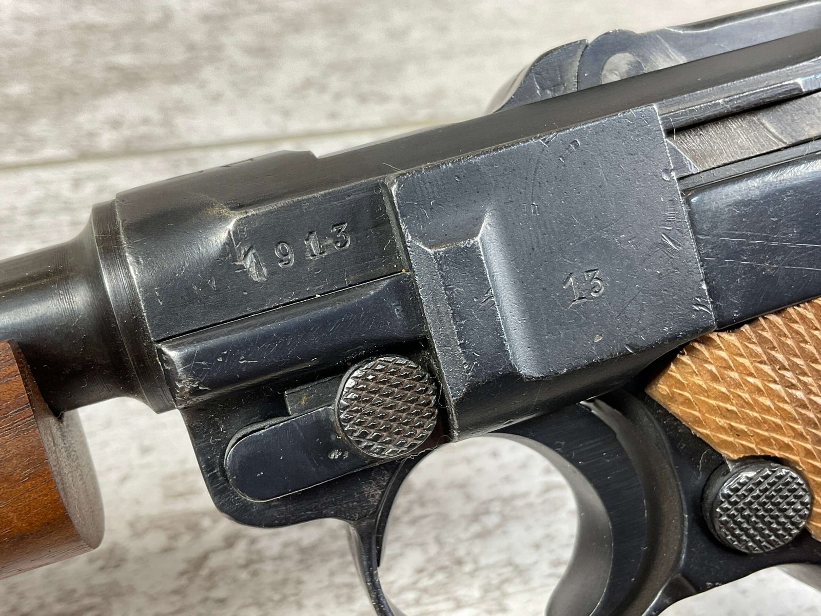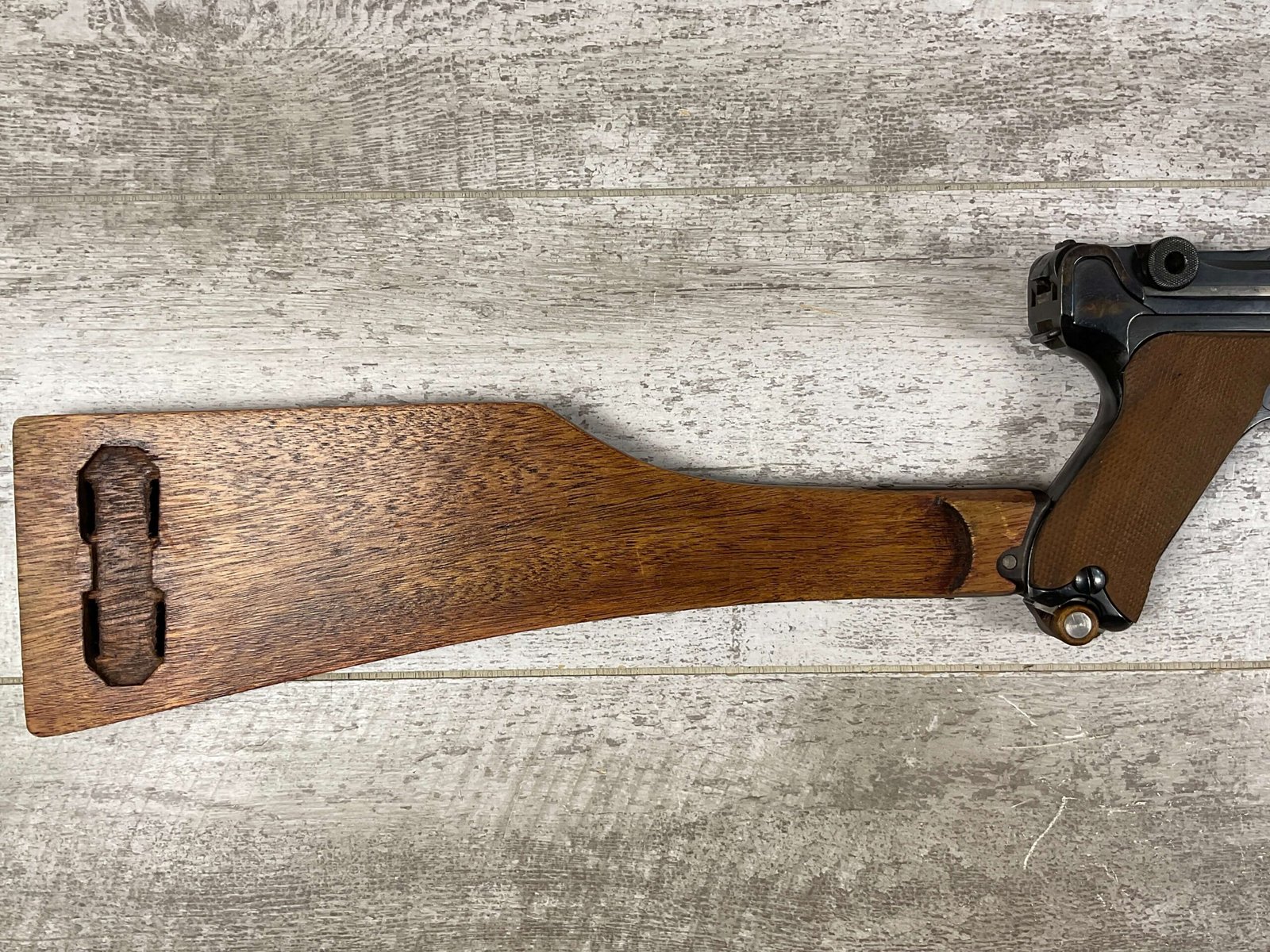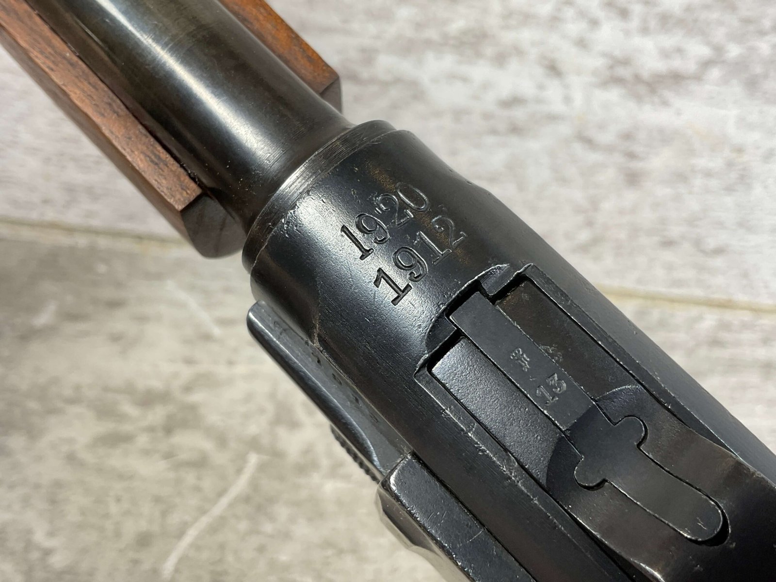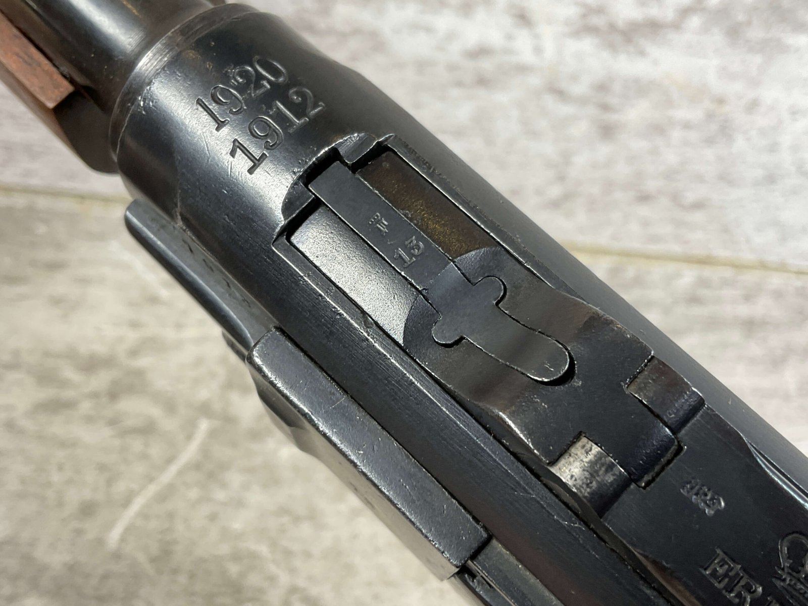 ERFURT LUGER P08 1920 9MM CARBINE SEMI AUTO PISTOL, JAMES EARL JONES COLLECTION #7851c, 16.25″ BARREL, EXC MINTY BORE & RIFLING, 70% REBLUE CONDITION, EXC REPRO GRIPS, VG UNMARKED STOCK, EXC EARLY SWISS MAGAZINE, CONDITION AS SHOWN IN PICTURES, FROM THE JAMES EARL JONES “FAVORITES” COLLECTION W/ CERTIFICATE OF AUTHENTICITY.