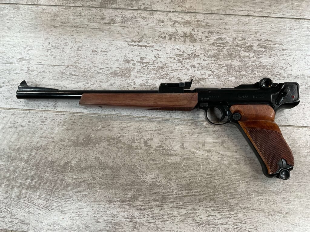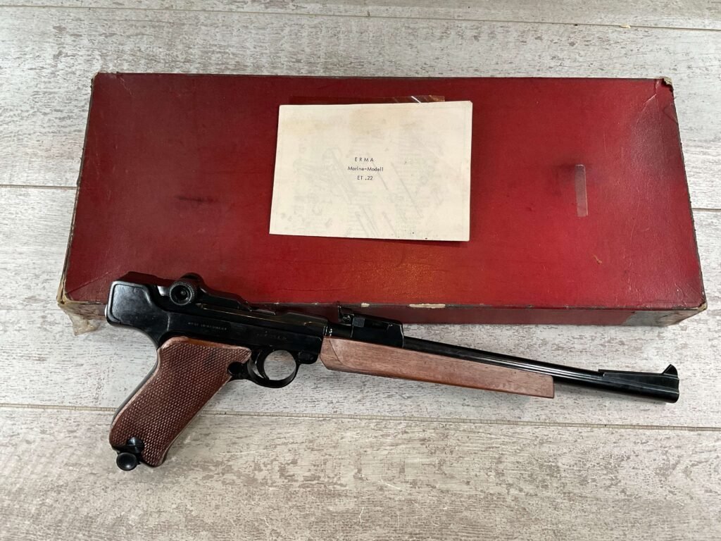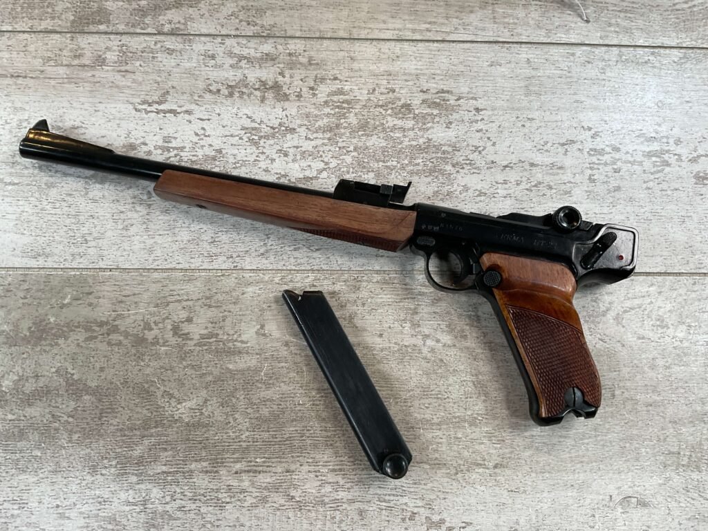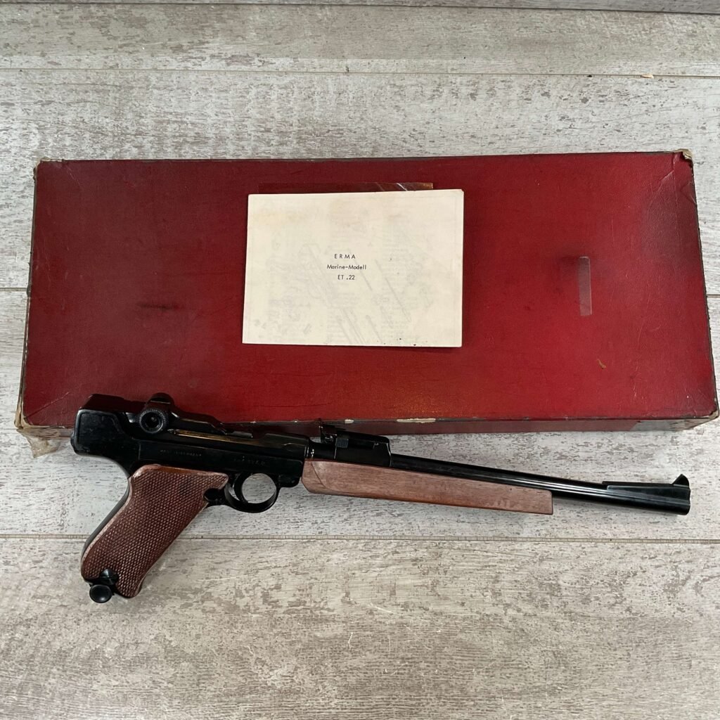 The Erma ET-22, also known as the Navy Luger, is a variant of the famous German Luger pistol chambered in .22 Long Rifle. It was produced by the Erma-Werke company, a German firearms manufacturer. The ET-22 was primarily designed as a training and recreational pistol, offering a similar operating mechanism to the larger-caliber Lugers but with reduced recoil and ammunition costs.