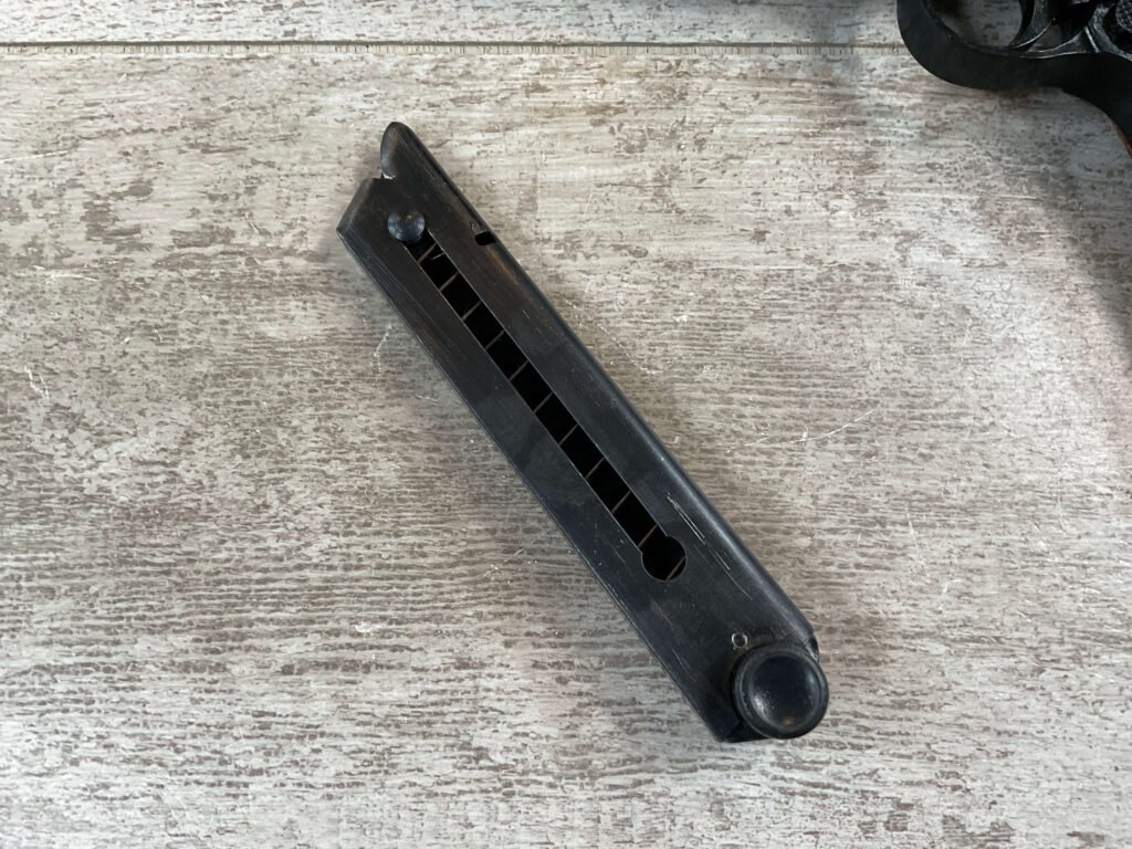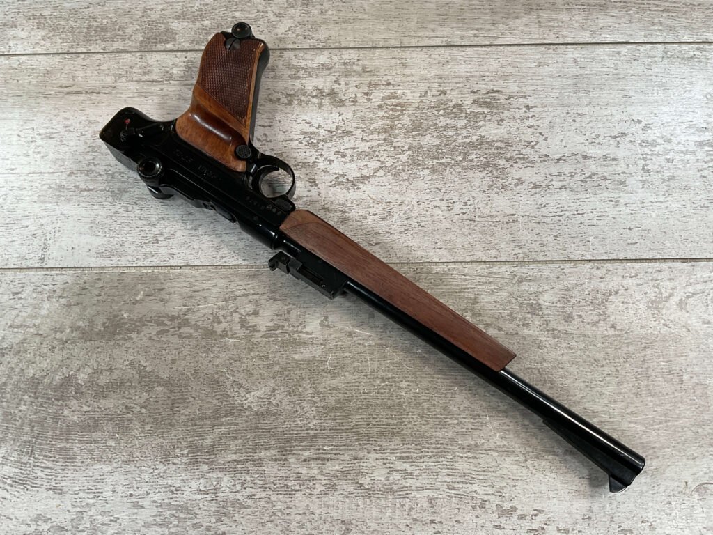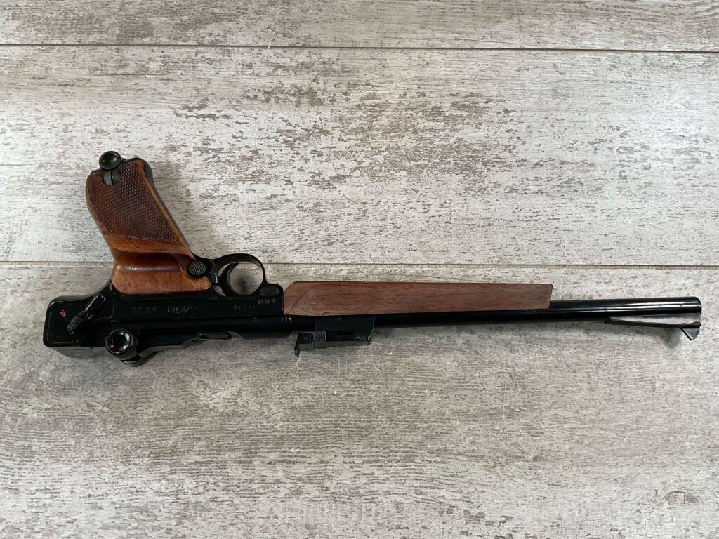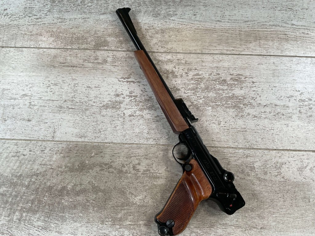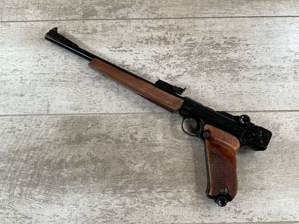 The Erma ET-22, also known as the Navy Luger, is a variant of the famous German Luger pistol chambered in .22 Long Rifle. It was produced by the Erma-Werke company, a German firearms manufacturer. The ET-22 was primarily designed as a training and recreational pistol, offering a similar operating mechanism to the larger-caliber Lugers but with reduced recoil and ammunition costs.