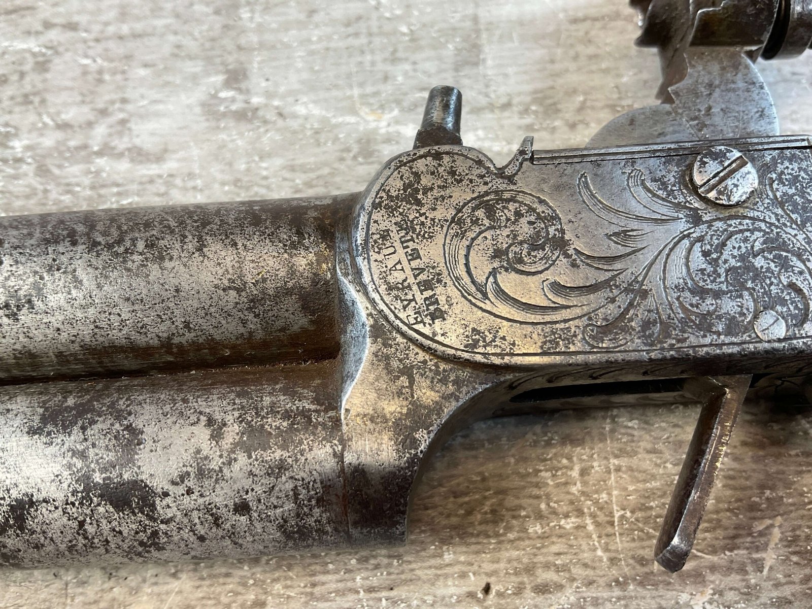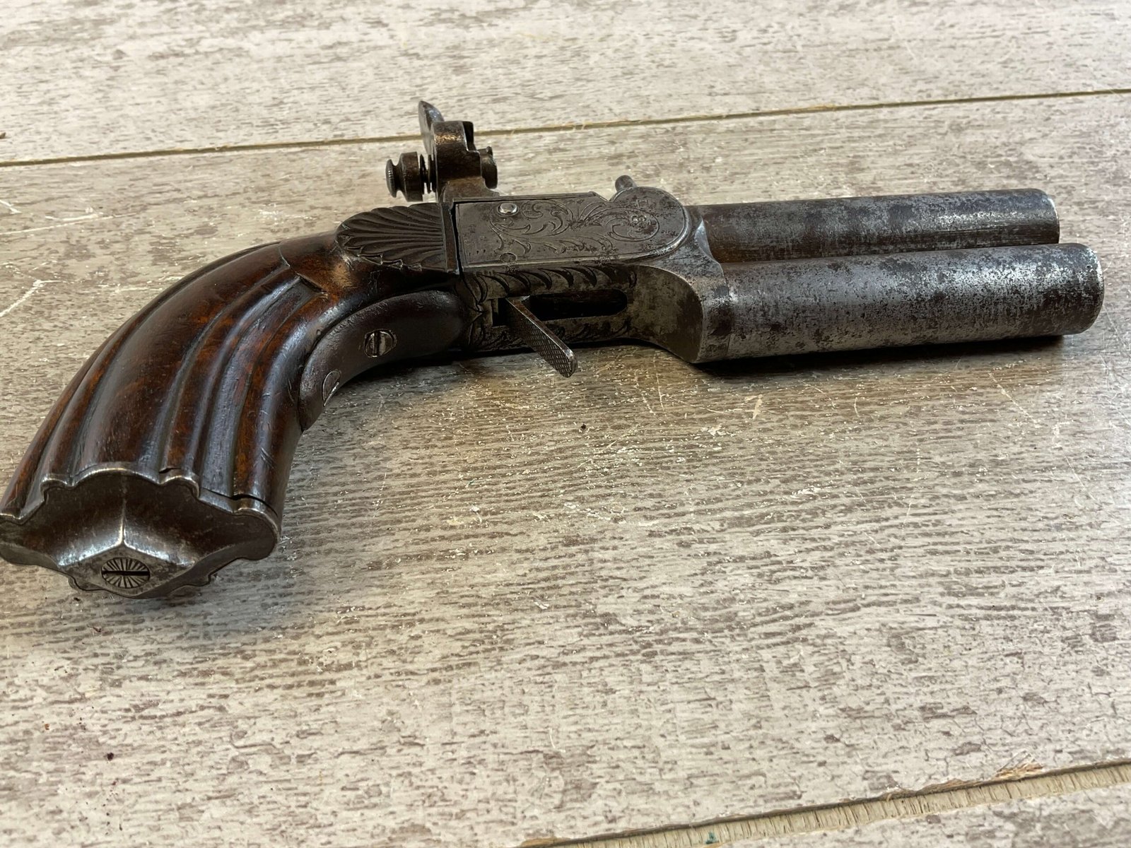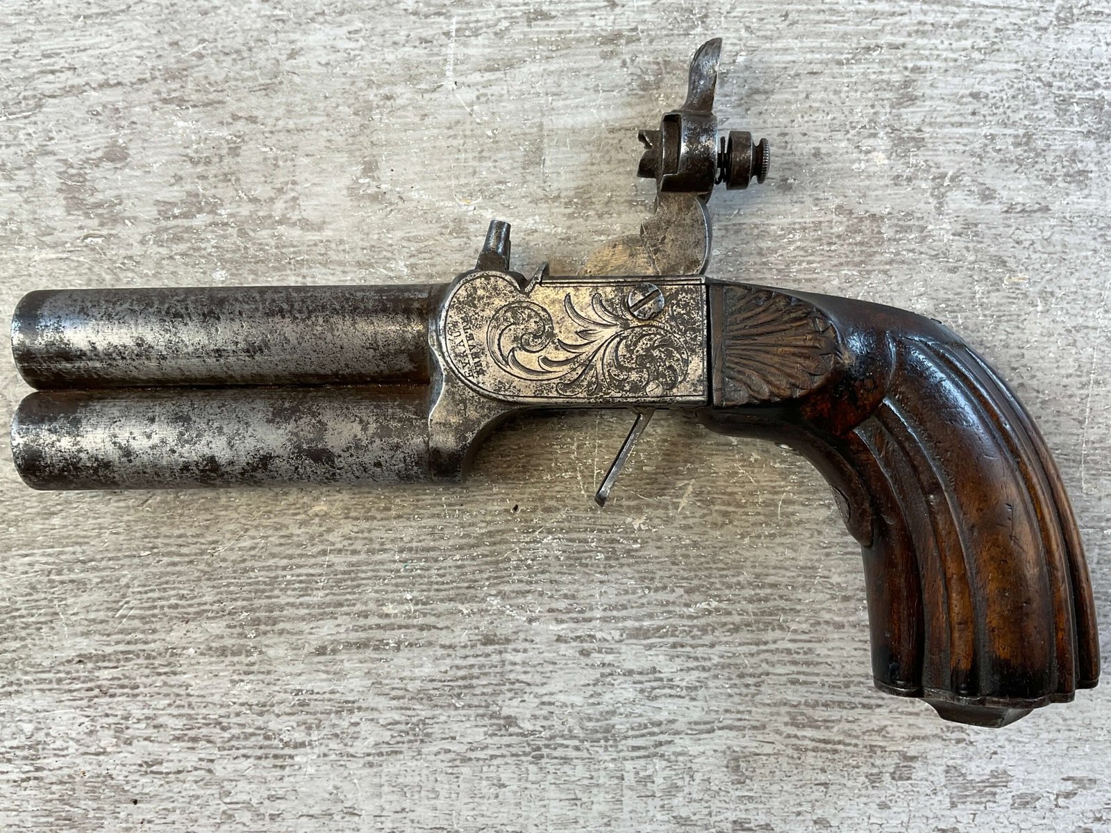EYRAUL BREVETE .44 CAL DOUBLE BARREL PERCUSSION PISTOL, JAMES EARL JONES COLLECTION, ANTIQUE #5-10945-PF