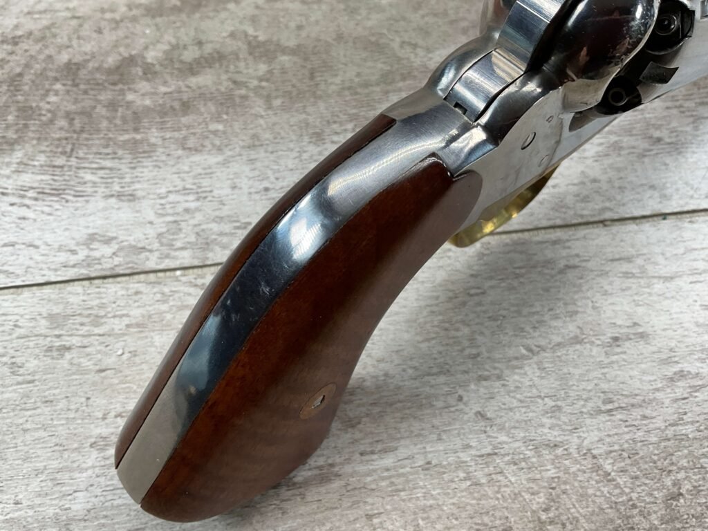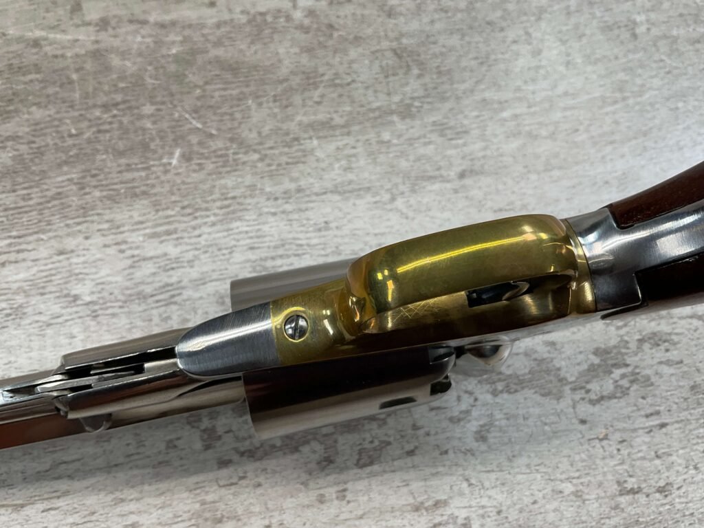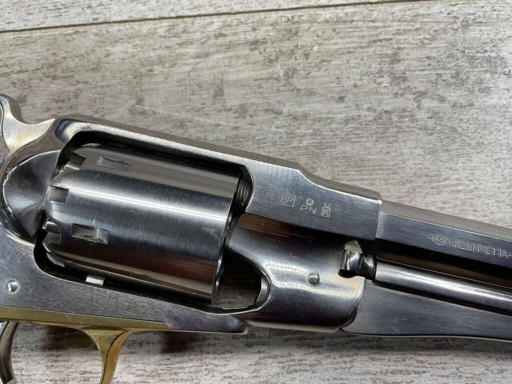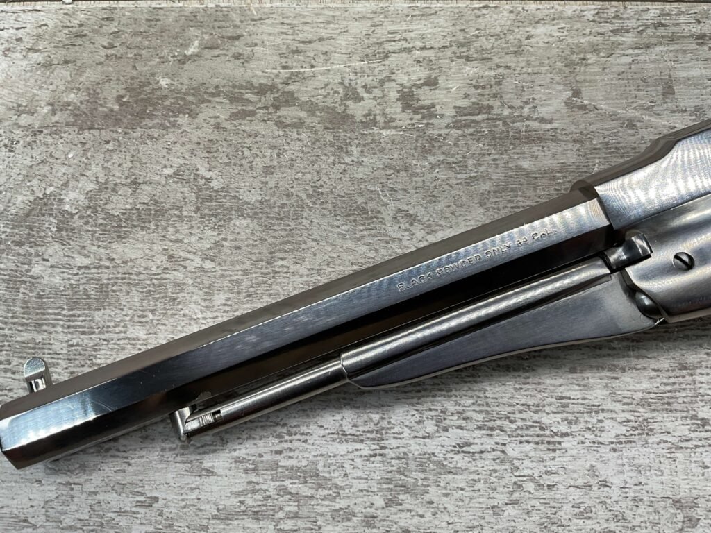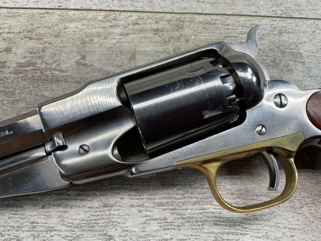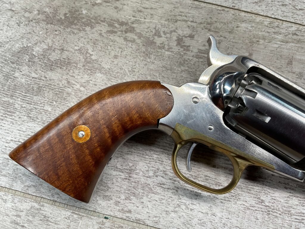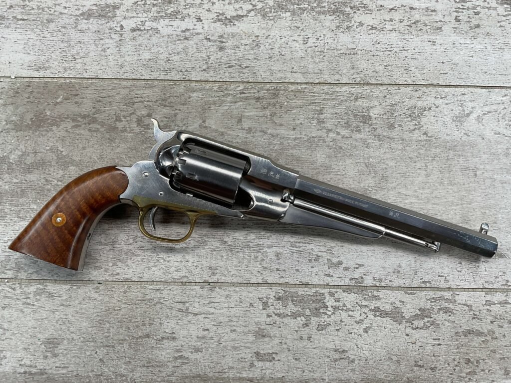 • Action: Cap-and-ball revolver that uses black powder or substitutes, requiring the user to load each chamber.