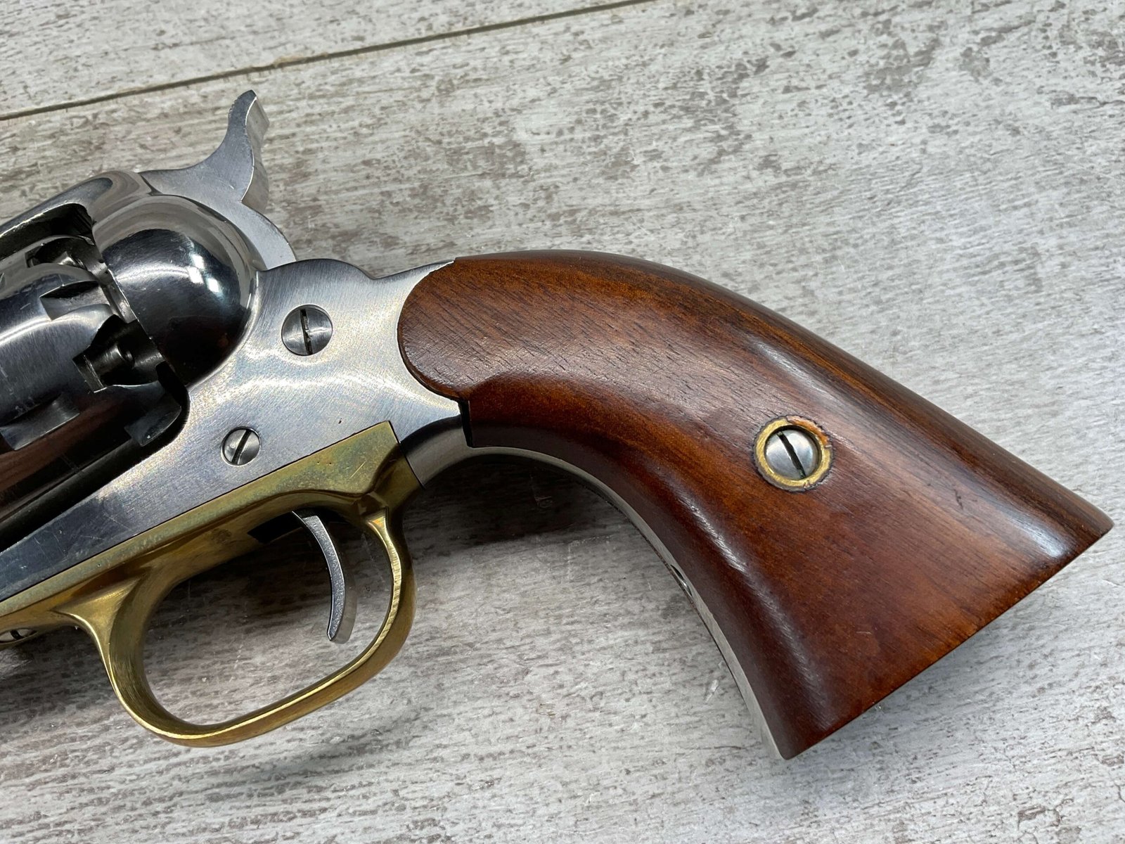 • Action: Cap-and-ball revolver that uses black powder or substitutes, requiring the user to load each chamber.