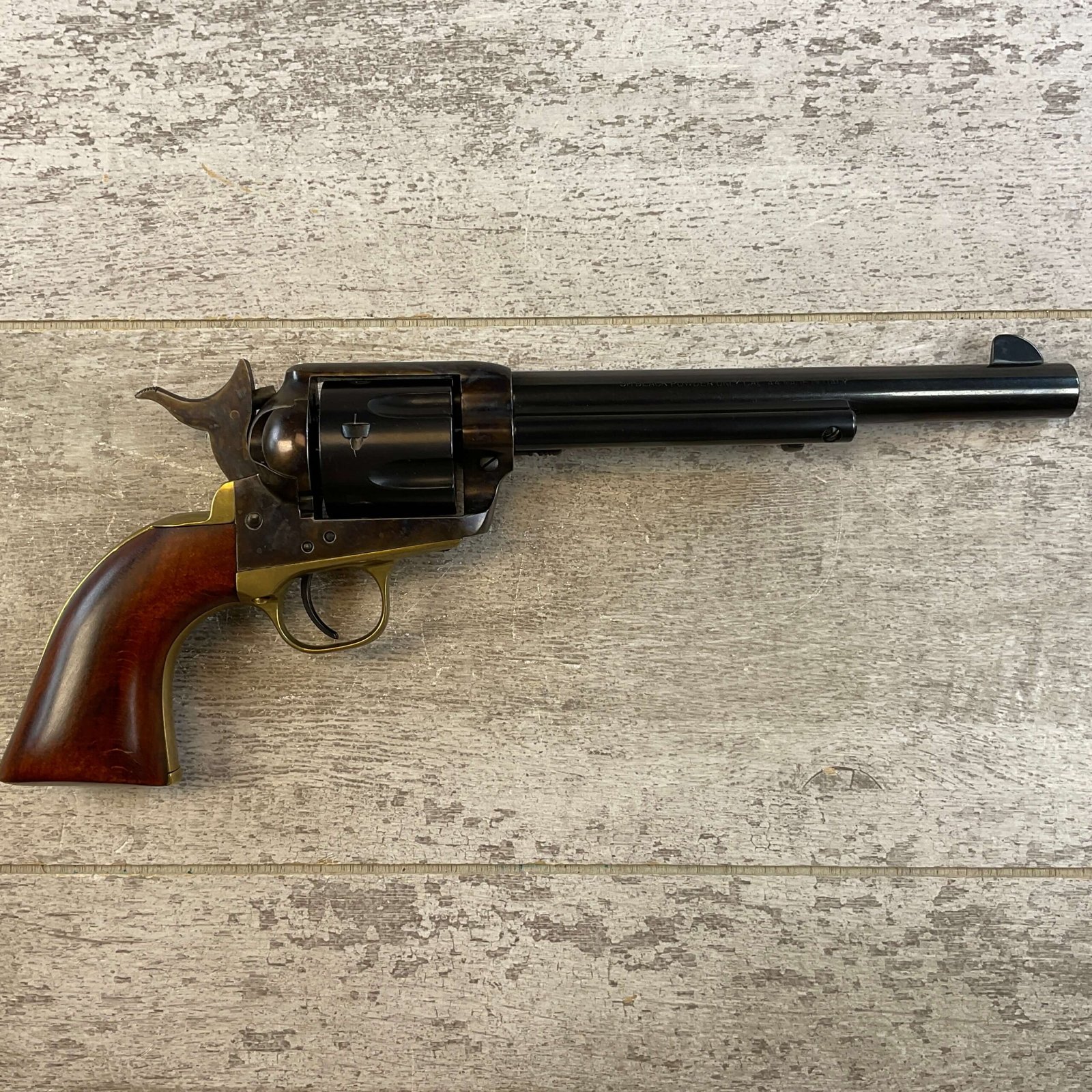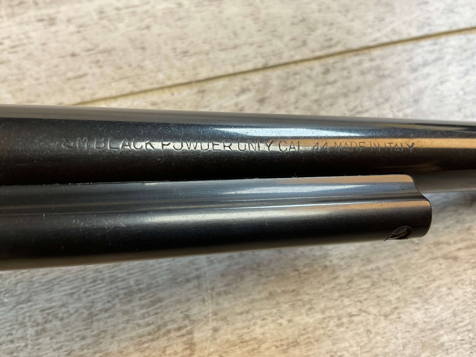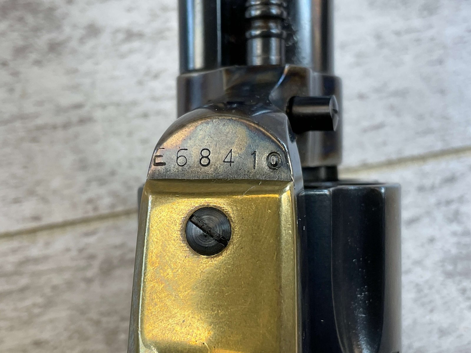 F. LLIPIETTA 1873 TYPE .44 CAL PERCUSSION REVOLVER #E68410, .44 CAL BP, ALL MATCHING, 7.5″ BLUED BARREL, 6 SHOT FLUTED CYLINDER, MIRROR BORE & RIFLING, CASE-HARDENED HAMMER & TRIGGER & FRAME, EXC SMOOTH WALNUT GRIPS, BRASS TRIGGER GUARD, BEAUTIFUL & APPEARS UNFIRED, CONDITION AS SHOWN IN PICTURES, FROM THE JAMES EARL JONES “FAVORITES” COLLECTION W/ CERTIFICATE OF AUTHENTICITY.