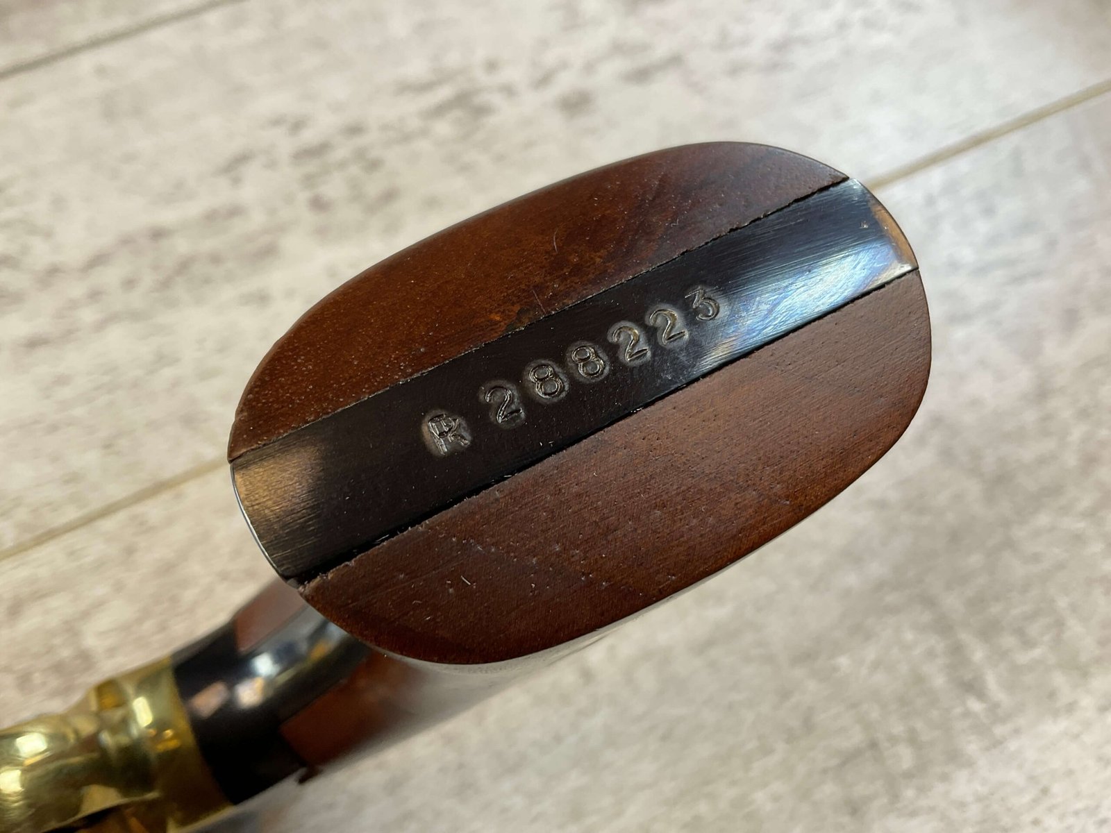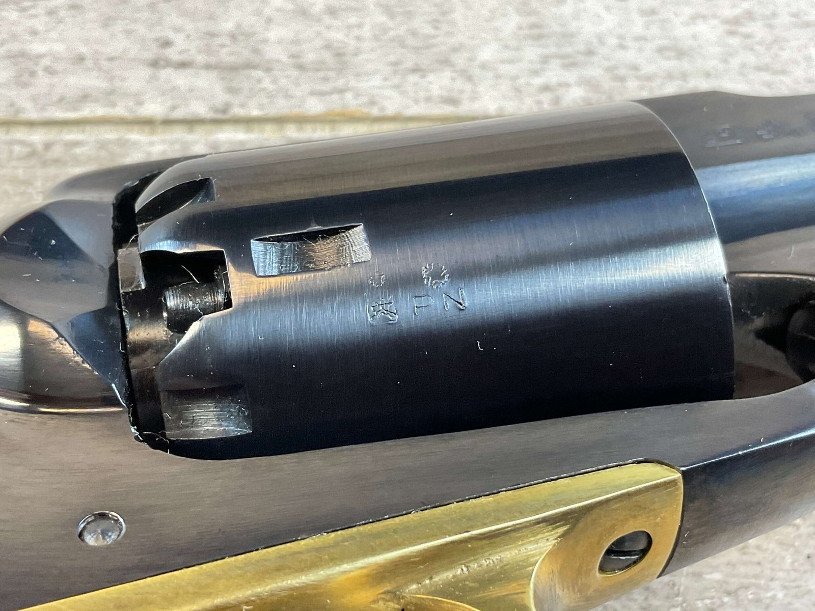F. LLIPIETTA REMINGTON 1858 BLUED .44 CAL PERCUSSION REVOLVER #R288223, .44 CAL BP, ALL MATCHING, 8″ BLUED BARREL, 6 SHOT SMOOTH CYLINDER, UNFIRED MIRROR BORE & RIFLING, COLOR CASE HARDENED HAMMER / TRIGGER, BRASS TRIGGER GUARD, EXC SMOOTH WALNUT GRIPS, BEAUTIFUL & UNFIRED, CONDITION AS SHOWN IN PICTURES, FROM THE JAMES EARL JONES “FAVORITES” COLLECTION W/ CERTIFICATE OF AUTHENTICITY.