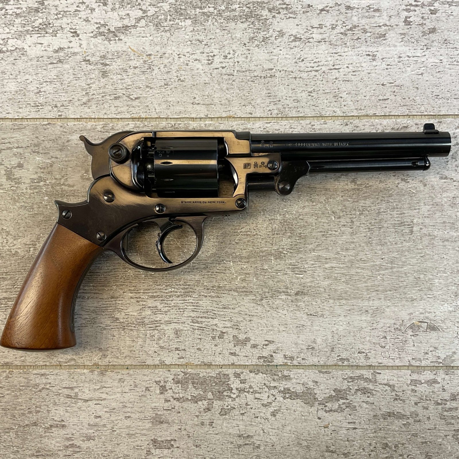 The Pietta Starr 1858 .44 caliber revolver is a faithful reproduction of one of the most distinctive handguns of the American Civil War. Based on the historic Starr Model 1858 Revolver, this revolver was originally produced by the Starr Arms Company and supplied in large numbers to Union forces.