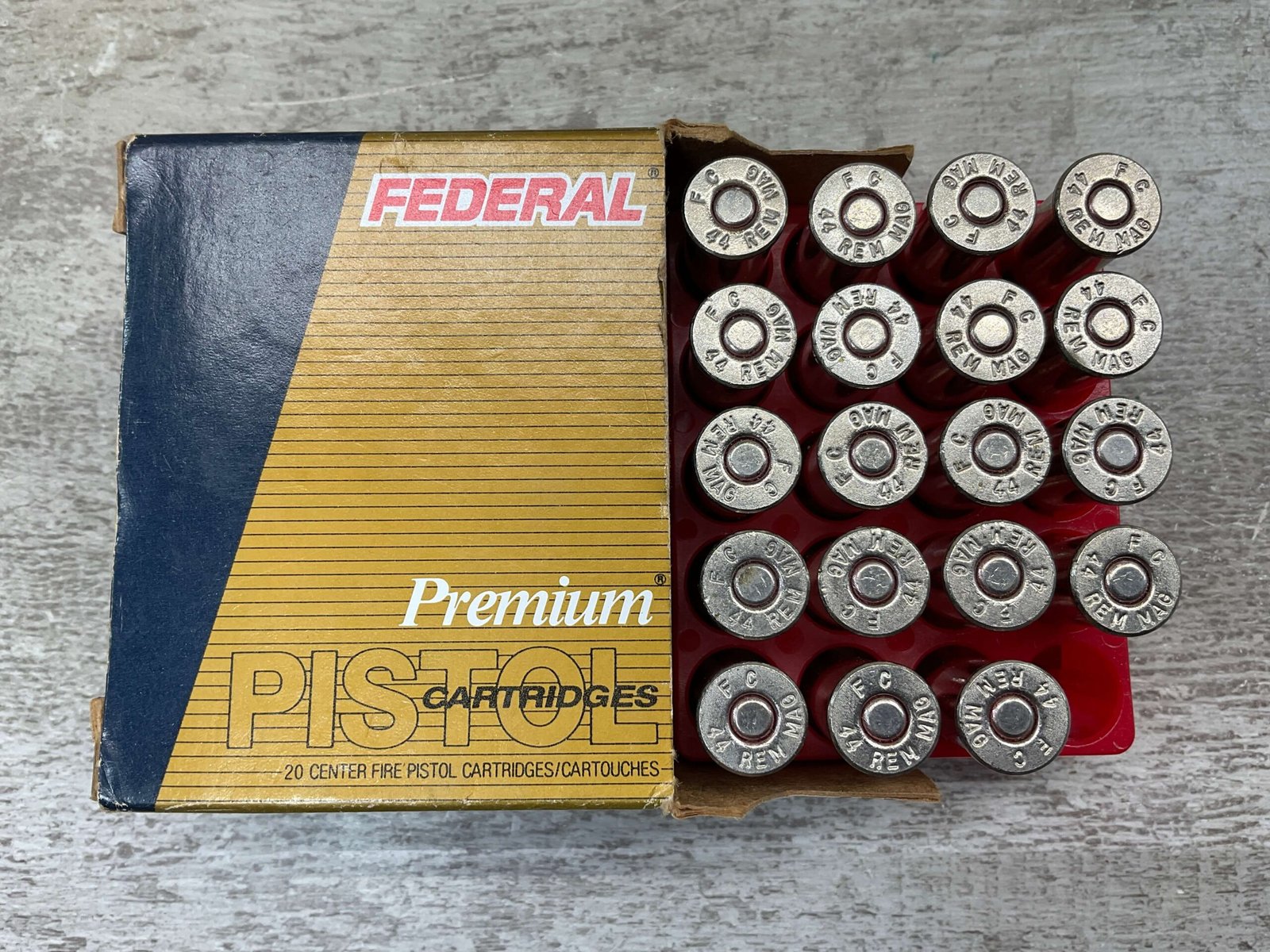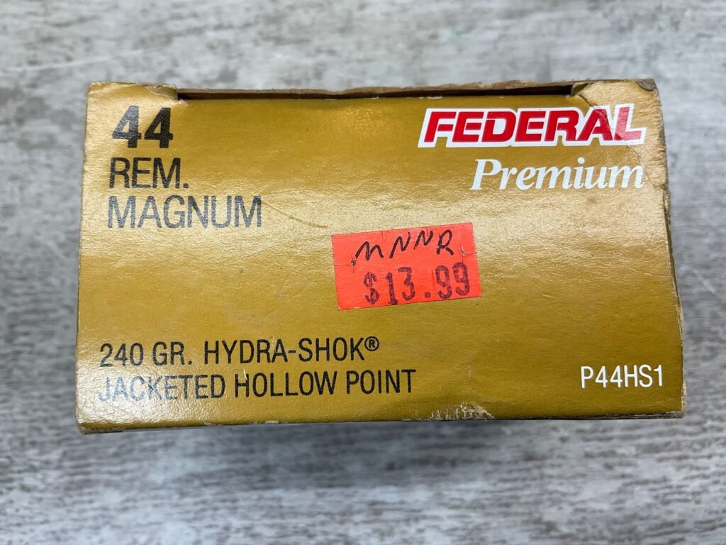 FEDERAL PREMIUM 44 REM. MAGNUM, 240 GR. HYDRA-SHOK J.H.P, VINTAGE, 19 ROUNDS IN BOX