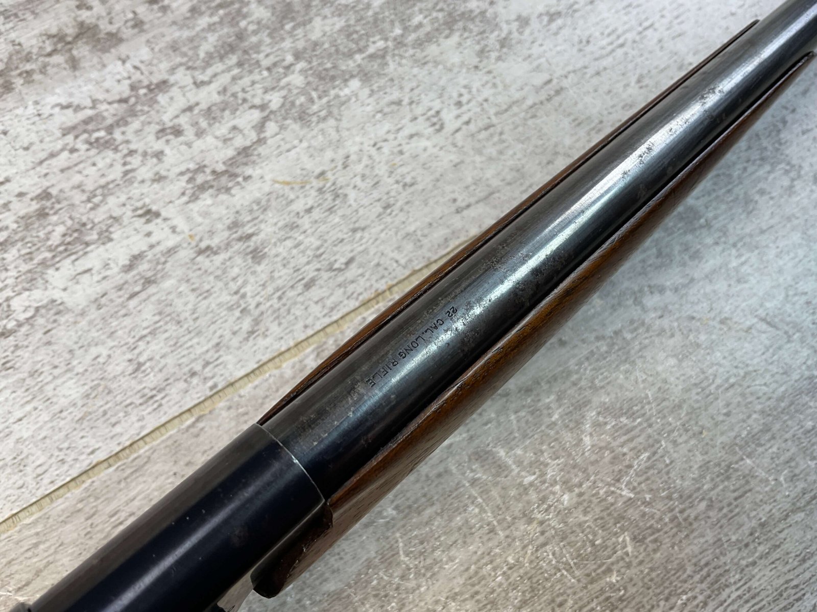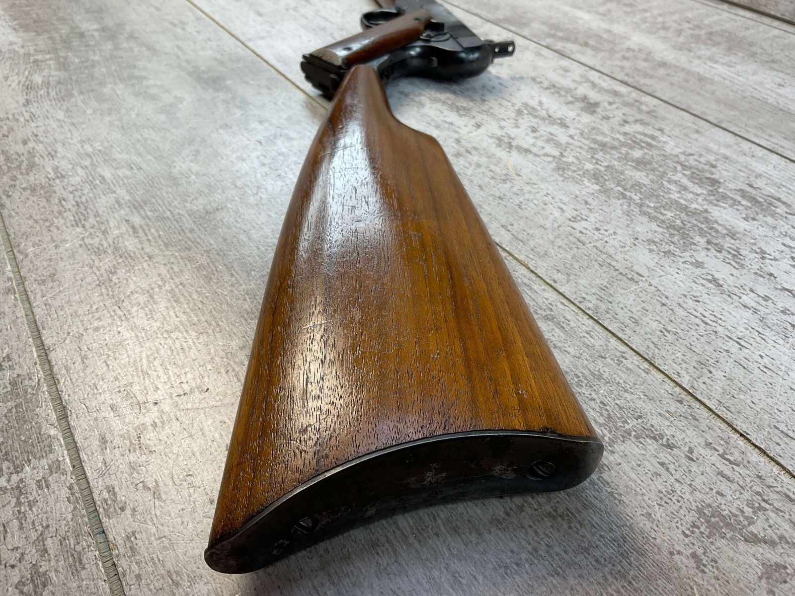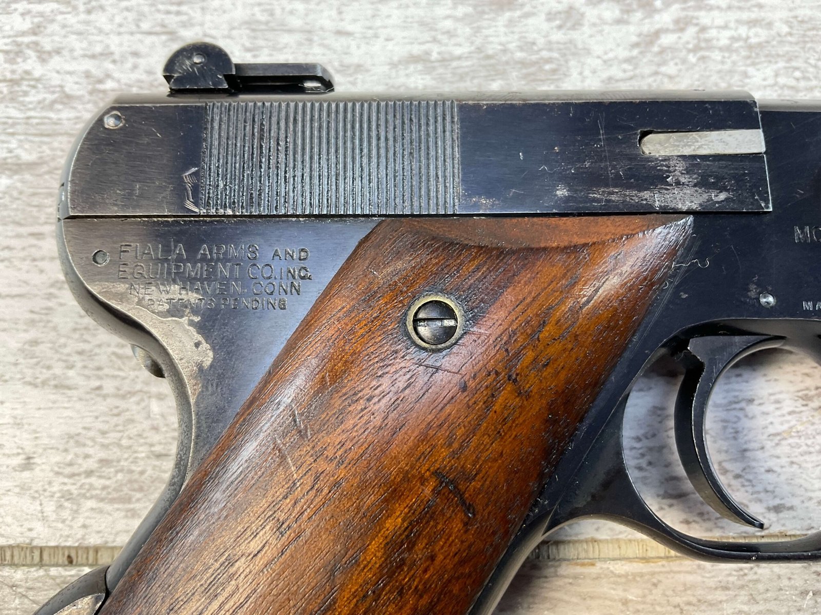 FIALA MODEL 1920 .22LR LONG BARREL”PISTOL” W/ WALNUT STOCK, JAMES EARL JONES “FAVORITES” COLLECTION #2896, 20″ BLUED TAPPERED BARREL W/ LIGHT FINISH LOSS, EXC BORE & RIFLING, FLIP UP REAR PEEP SIGHT, BLADE FRONT, VG-EXC SMOOTH WALNUT STOCK & FOREARM, BARREL HAS MATCHING #, STOCK IS NOT NUMBERED, SOME FINISH LOSS BEHIND GRIP & UNDERNEATH SLIDE, CONDITION AS SHOWN IN PICTURES, FROM THE JAMES EARL JONES “FAVORITES” COLLECTION W/ CERTIFICATE OF AUTHENTICITY.