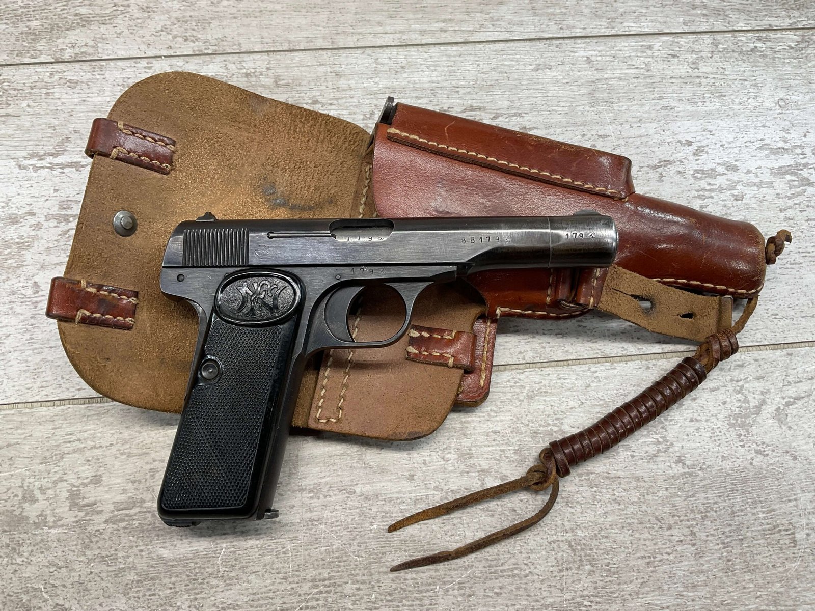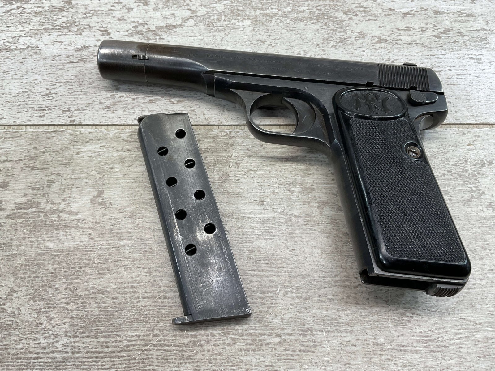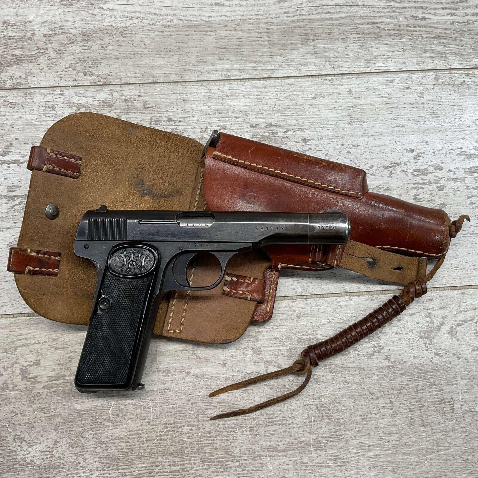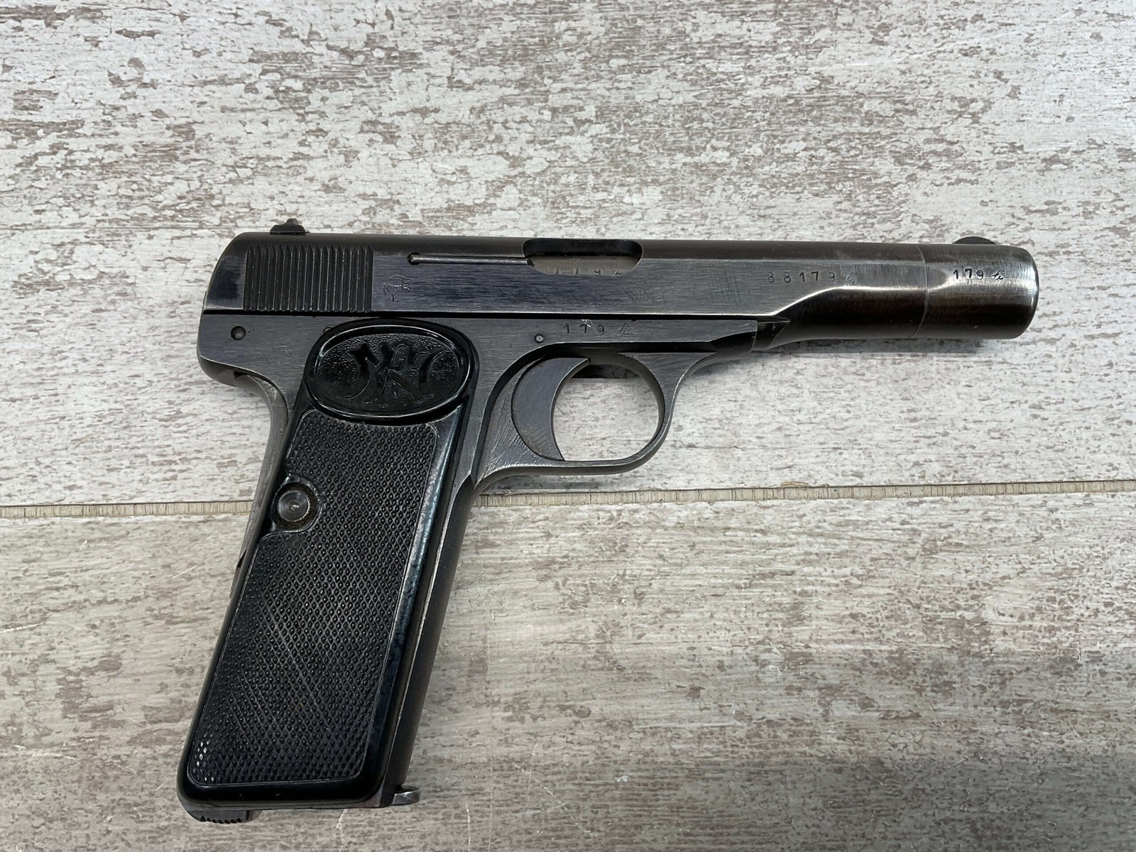 THESE PISTOLS WERE SOLD THROUGH AKAH AND ARE THOUGHT TO HAVE BEEN ISSUED TO SECURITY GUARDS AT FACTORIES. THIS IS CERTAINLY ONE OF THE RAREST AND MOST SOUGHT AFTER OF THE WARTIME FN MADE PISTOLS.