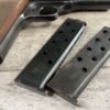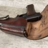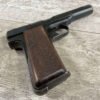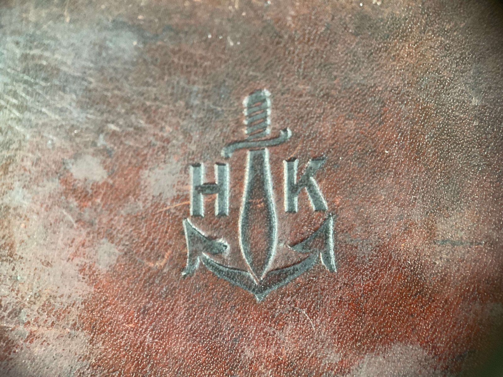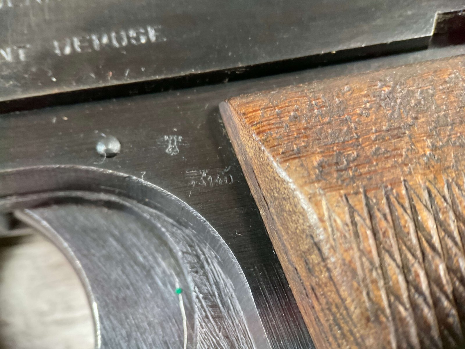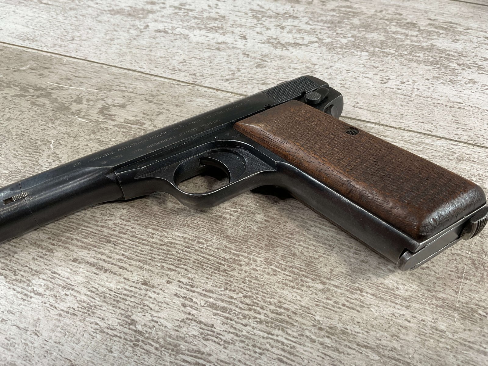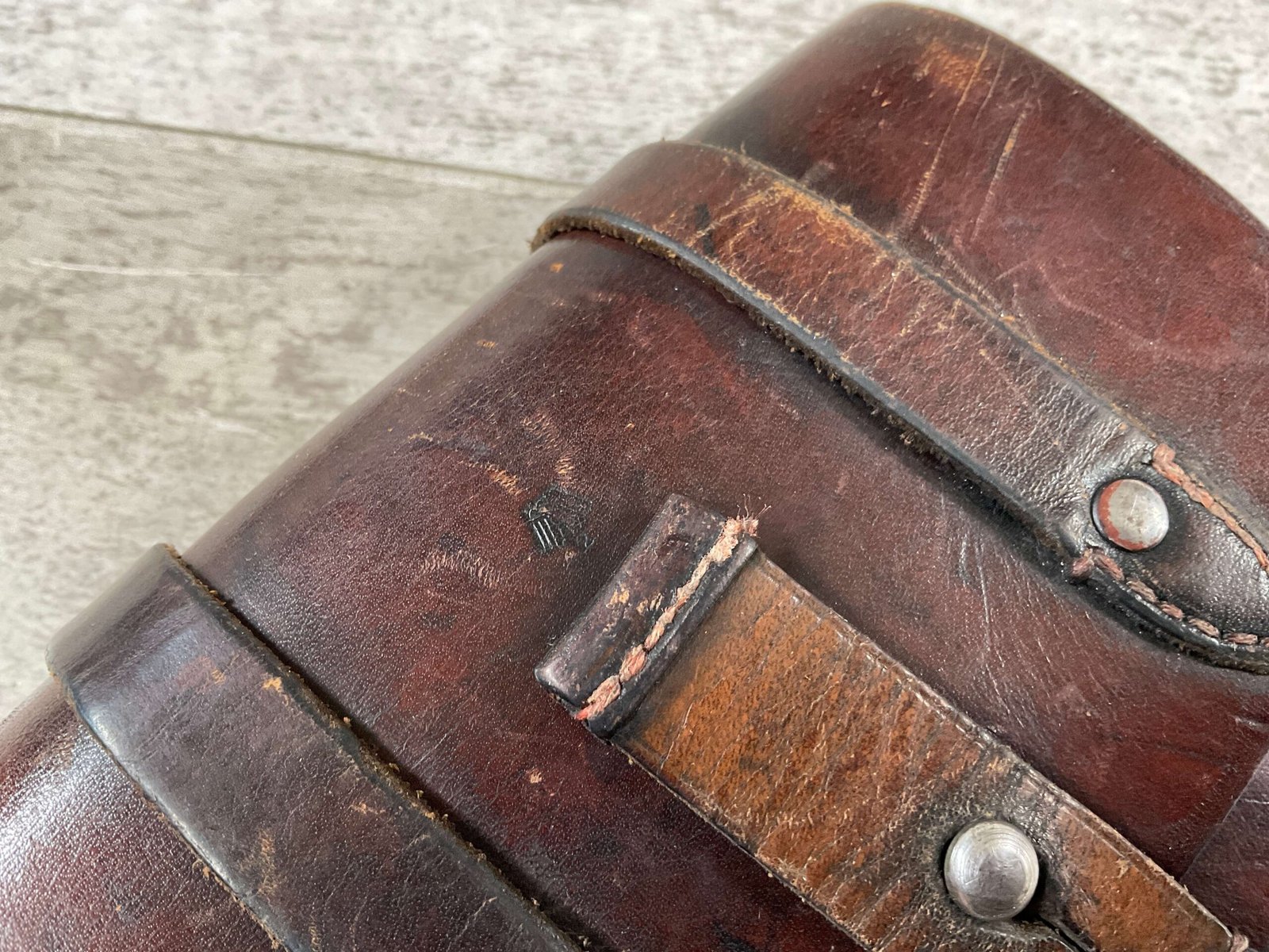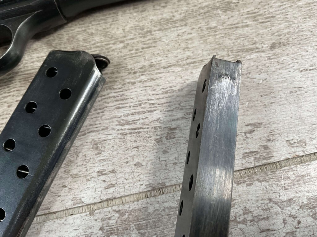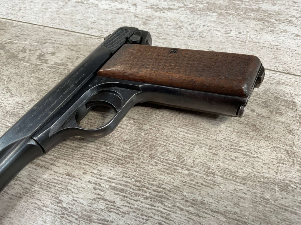 FN BROWNING MODEL 1922 NAZI MARKED .32ACP PISTOL RIG #7595a, 4.5″ BBL, EXC BORE & RIFFLING, GOOD GRIPS W/LIGHT WEAR & HANDLING MARKS, LEFT SIDE READS “FABRIQUE NATIONALE D’ARMES DE GUERRE HERSTAL BELGIQUE/BROWNING’S PATENT DEPOSE”, “MR” STAMPED ON THE TRIGGER, SOME LIGHT HIGH EDGE & HOLSTER WEAR, WaA140 MARKED SLIDE/FRAME/1 MAGAZINE, FN ORIGINAL MAGAZINE, ALL MATCHING, NO IMPORT MARKS, TWO MAGS/ONE WaA140 MARKED THE OTHER NO MARKINGS, BEAUTIFUL HEINRICH KRIEGHOFF DROP BROWN ALL LEATHER HOLSTER WITH EAGLE/2 PROF ON FRONT & “HK ANCHOR” LOGO ON THE BELT LOOP, “NUR FUR LANGE/BROWNING PISTOLE/KAL 7.65” STAMP ON INSIDE FLAP, “95+% OVERALL