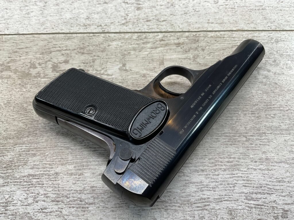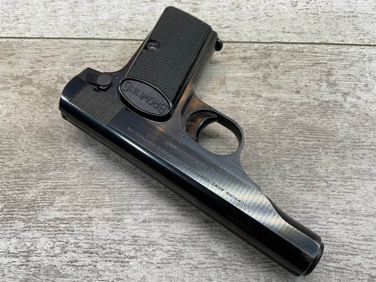 Constructed with meticulous attention to detail, the FN Browning Model 1955 features a sleek and compact design, making it both aesthetically pleasing and ergonomically sound. The pistol’s frame and slide exhibit a pristine finish, showcasing the original bluing or stainless steel in flawless condition, creating an air of sophistication that is sure to captivate enthusiasts.