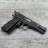 The pistol features a steel frame and slide construction, ensuring durability and longevity. Its ergonomic grip and intuitive controls make it comfortable to handle and easy to operate. The Hi-Power is equipped with fixed iron sights for accurate aiming and may feature a manual safety mechanism for added security.