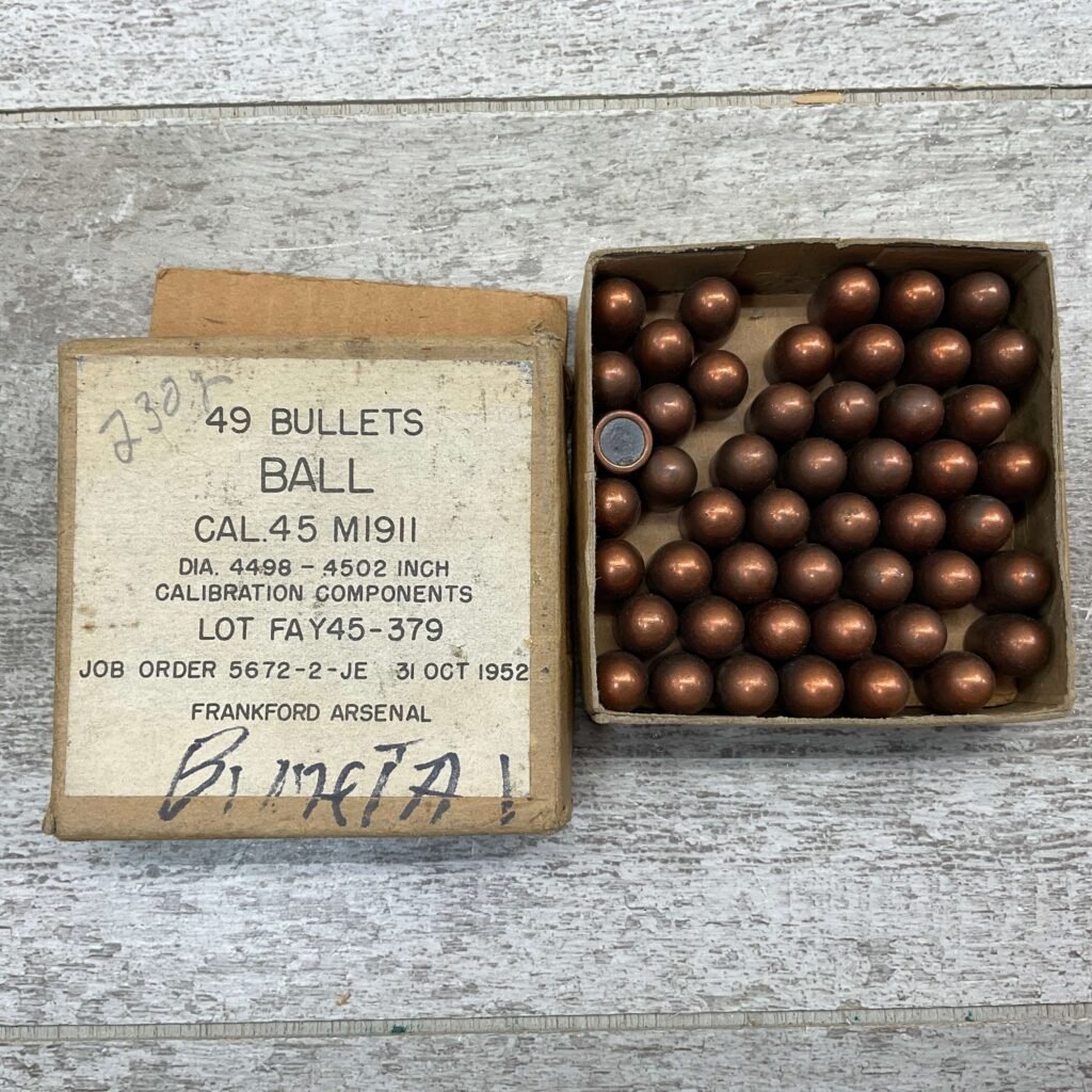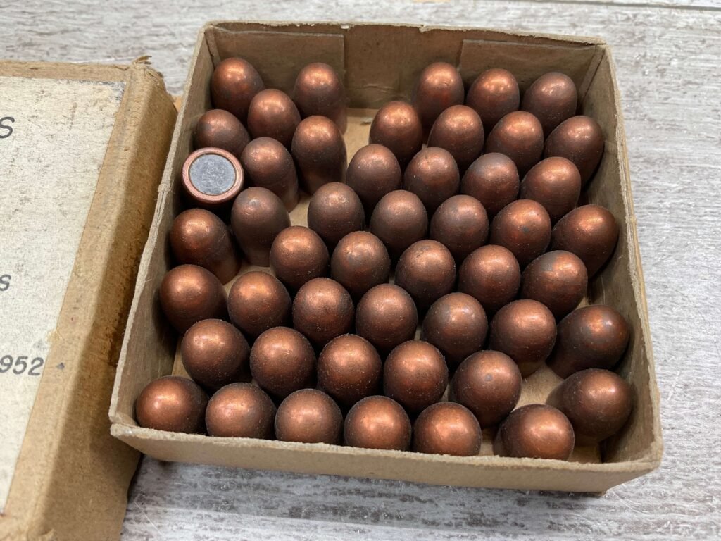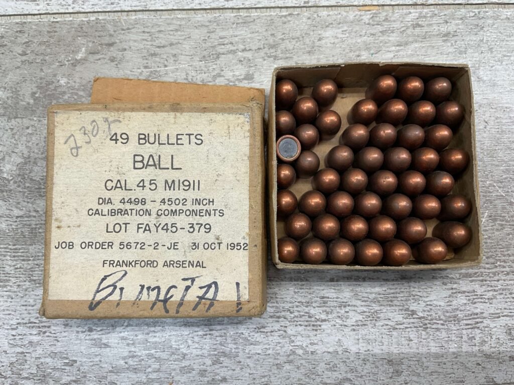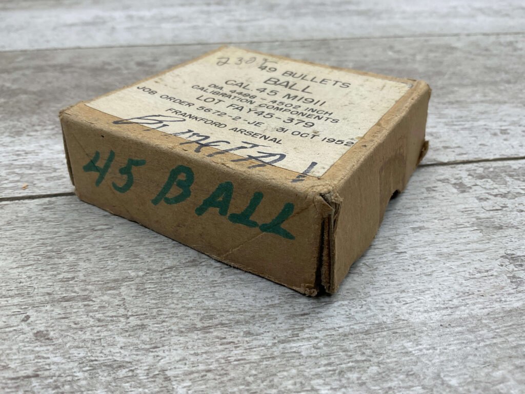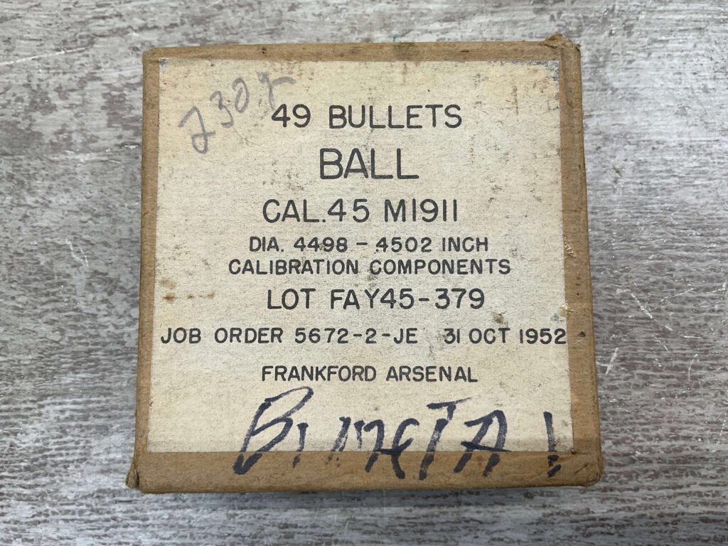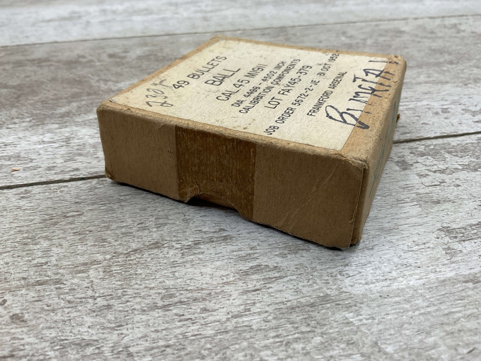FRANKFORD ARSENAL .45 CAL M1911 BALL AMMO, 49 BULLETS, VINTAGE, BOX IS IN GREAT CONDITION FOR AGE!