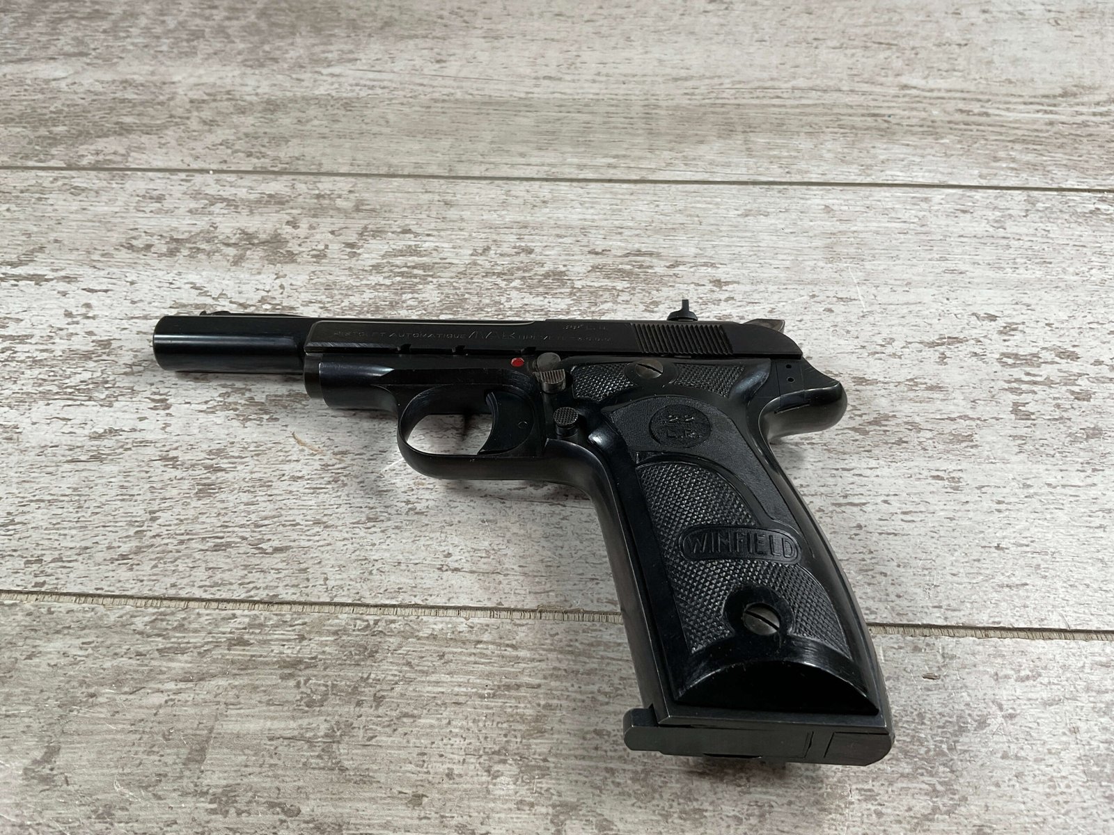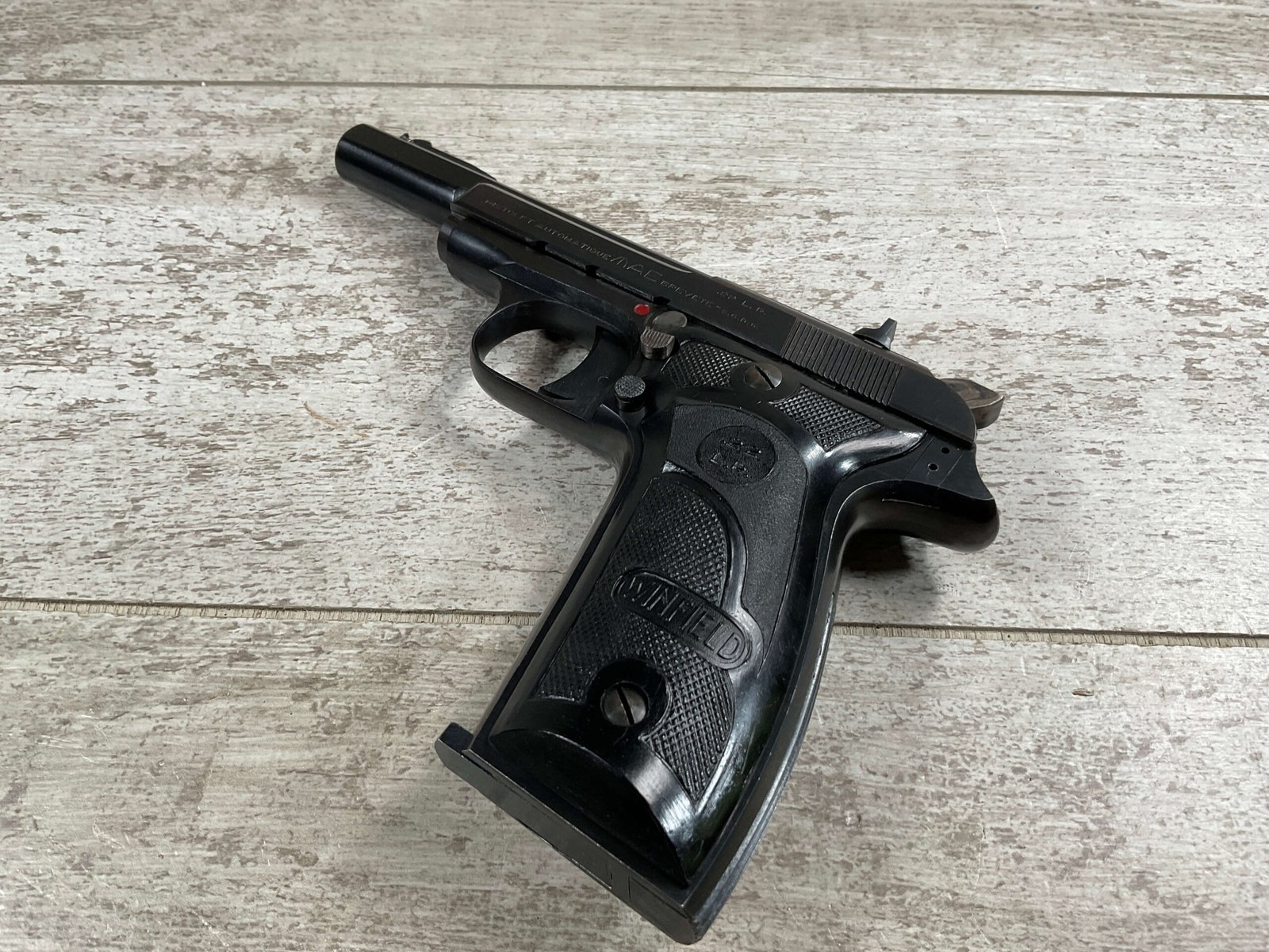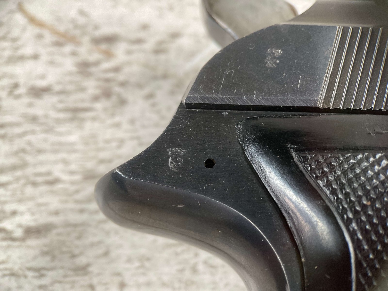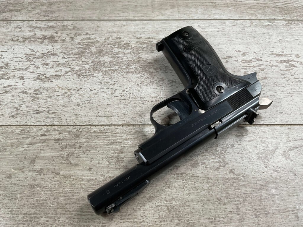 FRENCH MAB BREVETE .22LR SEMI AUTO PISTOL #31176, EXC MIRROR BORE & RIFLING, EXC BLACK CHECKERED GRIPS, EXC W/98+% BLUE, VERY LIGHT HANDLING MARKS, ONE ORIGIANL MAGAZINE, EXTERNAL HAMMER, INTERNAL STRIKER, NO IMPORT MARKS (IMPORTED TO THE US IN THE 50’S) 98+% OVERALL