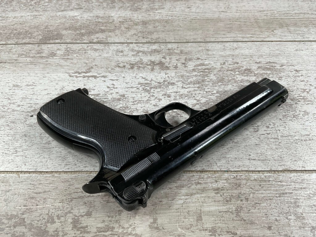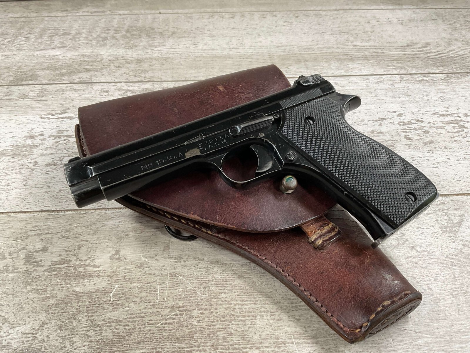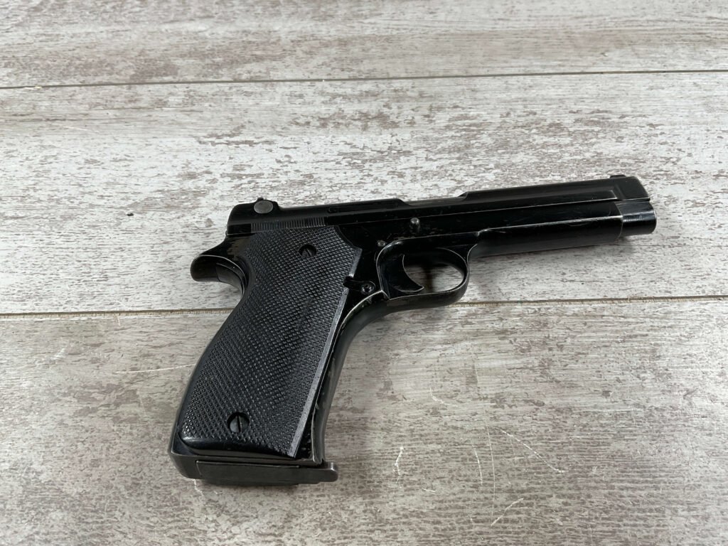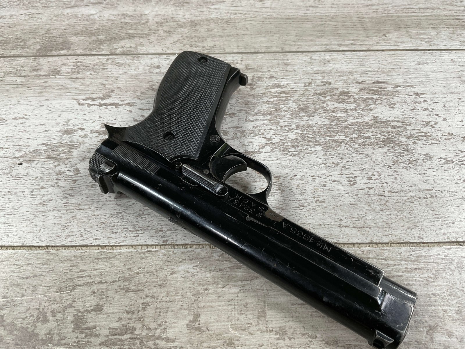 THE PISTOLET AUTOMATIQUE MODÈLE 1935A ALSO KNOWN AS THE FRENCH MODEL 1935A IS A SEMI-AUTOMATIC PISTOL DESIGNED BY CHARLES PETTER, CHAMBERED FOR THE 7.65MM LONGUE CARTRIDGE. IT WAS DEVELOPED TO COMPETE IN THE 1935–1937 FRENCH MILITARY TRIALS CONDUCTED BY THE COMMISSION D’EXPERIENCES TECHNIQUES DE VERSAILLES TO SELECT A NEW SIDEARM. THE PISTOL WON THE 1935–1937 COMPETITION TO PRODUCE THE NEW FRENCH MILITARY SIDEARM; A DIFFERENT PISTOL IN THE COMPETITION WAS THE SIMILARLY NAMED PISTOLET AUTOMATIQUE MODÈLE 1935S. INITIAL PRODUCTION OF THE 1935A BEGAN IN 1937, AND THE PISTOL BEGAN DELIVERY TO THE FRENCH ARMY IN LATE 1939, WITH A TOTAL OF ABOUT 10,700 PISTOLS BUILT BEFORE GERMAN FORCES OCCUPIED THE SACM FACTORY IN THE SUMMER OF 1940.