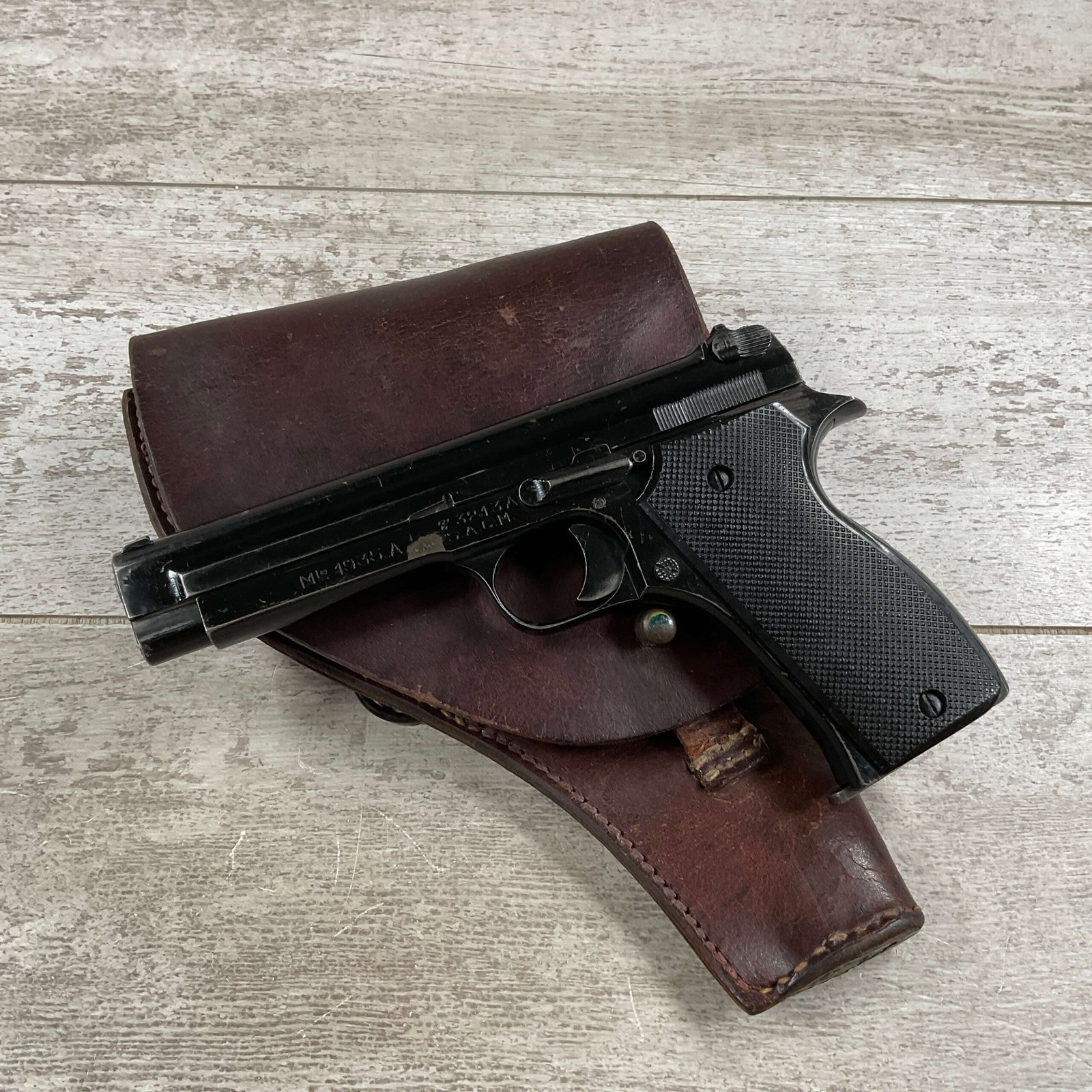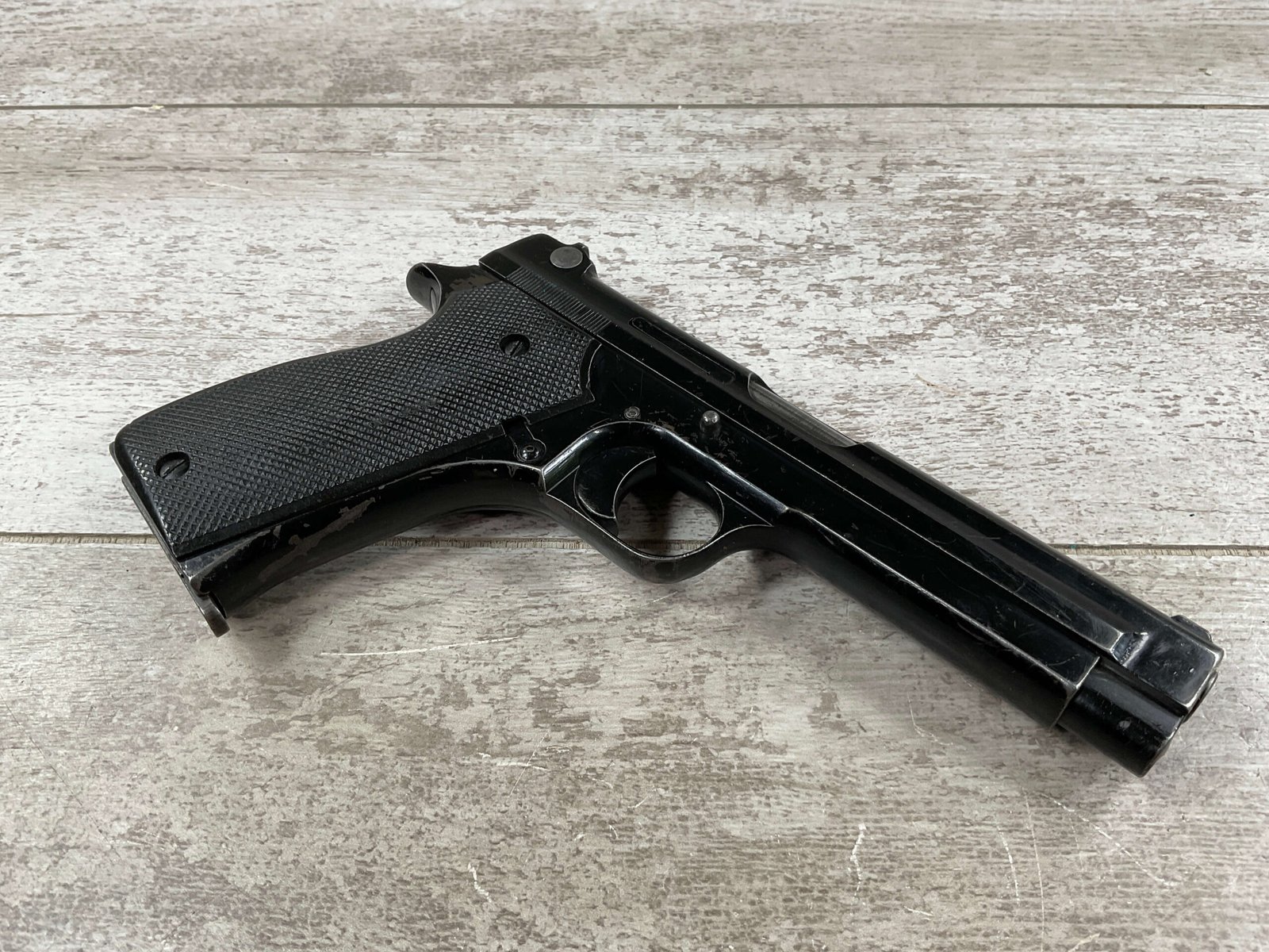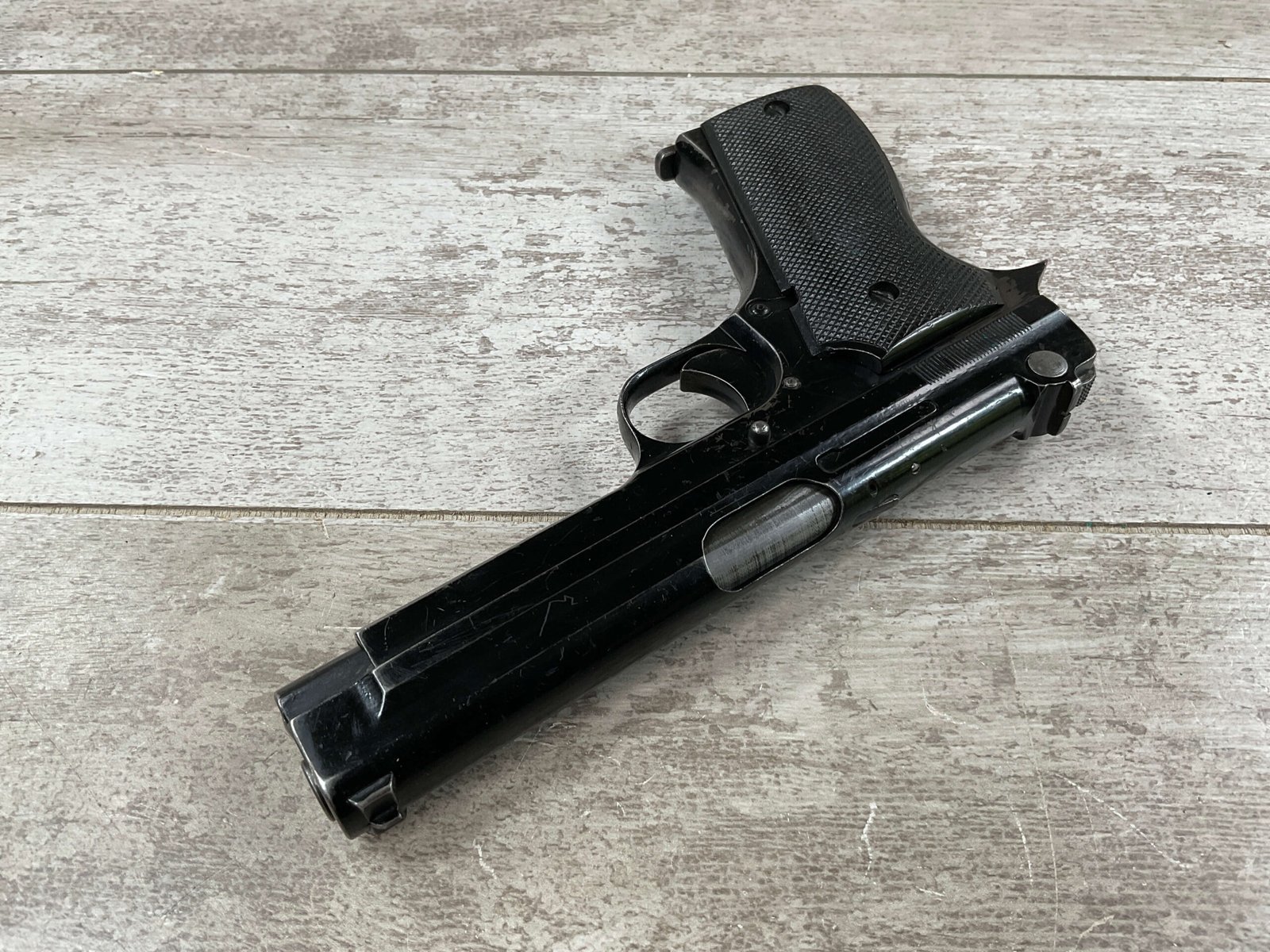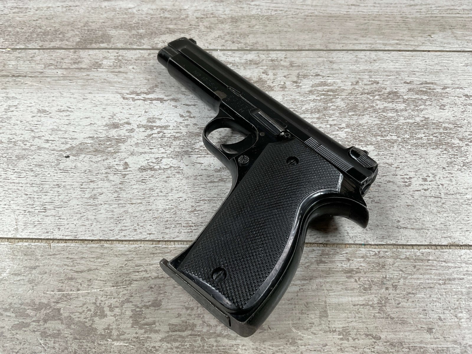 THE PISTOLET AUTOMATIQUE MODÈLE 1935A ALSO KNOWN AS THE FRENCH MODEL 1935A IS A SEMI-AUTOMATIC PISTOL DESIGNED BY CHARLES PETTER, CHAMBERED FOR THE 7.65MM LONGUE CARTRIDGE. IT WAS DEVELOPED TO COMPETE IN THE 1935–1937 FRENCH MILITARY TRIALS CONDUCTED BY THE COMMISSION D’EXPERIENCES TECHNIQUES DE VERSAILLES TO SELECT A NEW SIDEARM. THE PISTOL WON THE 1935–1937 COMPETITION TO PRODUCE THE NEW FRENCH MILITARY SIDEARM; A DIFFERENT PISTOL IN THE COMPETITION WAS THE SIMILARLY NAMED PISTOLET AUTOMATIQUE MODÈLE 1935S. INITIAL PRODUCTION OF THE 1935A BEGAN IN 1937, AND THE PISTOL BEGAN DELIVERY TO THE FRENCH ARMY IN LATE 1939, WITH A TOTAL OF ABOUT 10,700 PISTOLS BUILT BEFORE GERMAN FORCES OCCUPIED THE SACM FACTORY IN THE SUMMER OF 1940.