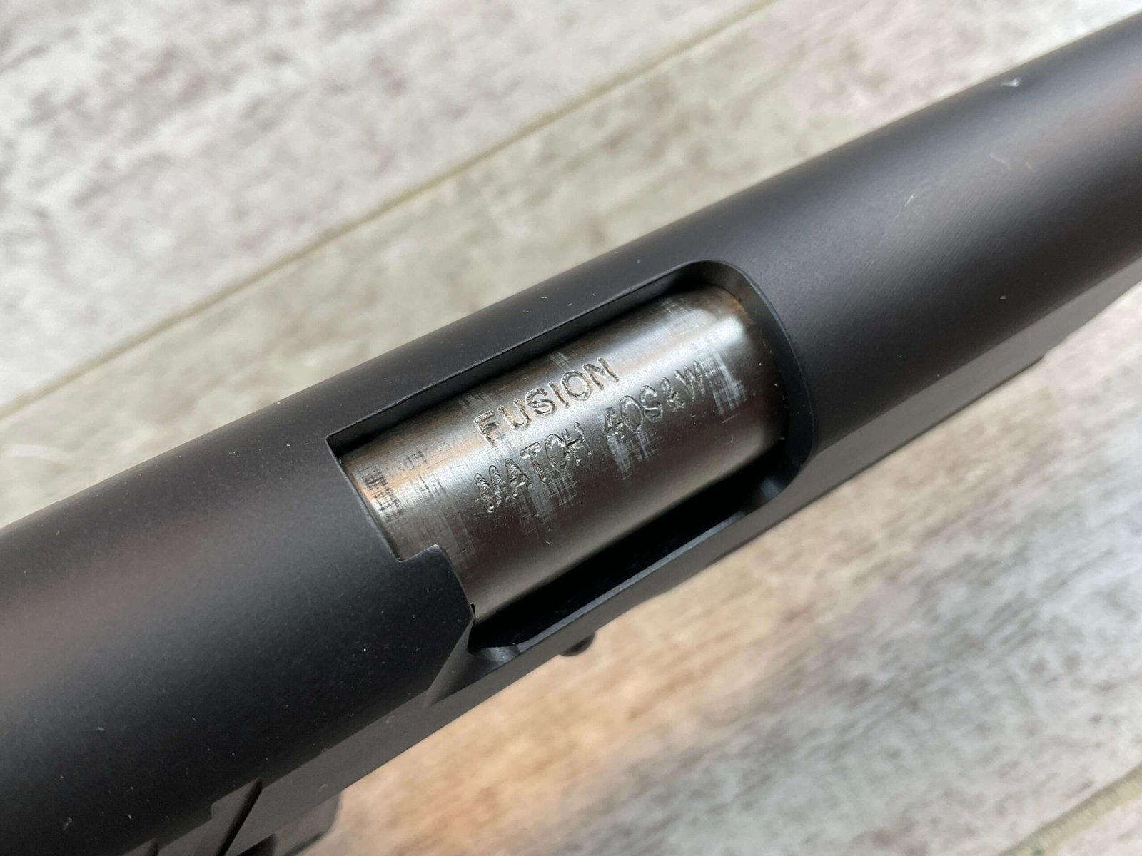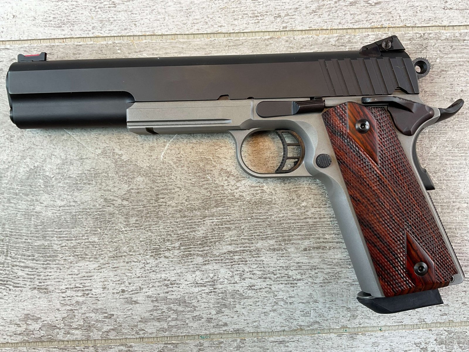 FUSION FIREARMS 1911 GOVT .40S&W SEMI AUTO PISTOL, JAMES EARL JONES COLLECTION #70071, 6″ MATCH BARREL, EXC MIRROR BORE & RIFLING, EXC LIKE NEW FINISH W/ VERY LITTLE SIGN OF USE, FIBER OPTIC FRON SIGHT, EXC CHECKERED GRIPS, FULL LENGTH GUIDE ROD, CUSTOM TRIGGER, HAND FIT BARREL & BUSHING, COMPETITION READY, BLANK SLIDE, CONDITION AS SHOWN IN PICTURES, FROM THE JAMES EARL JONES “FAVORITES” COLLECTION W/ CERTIFICATE OF AUTHENTICITY.