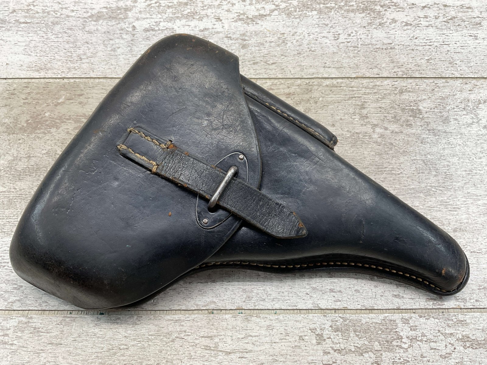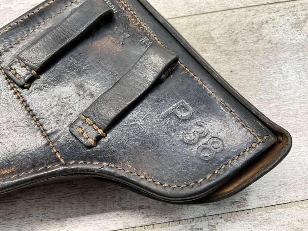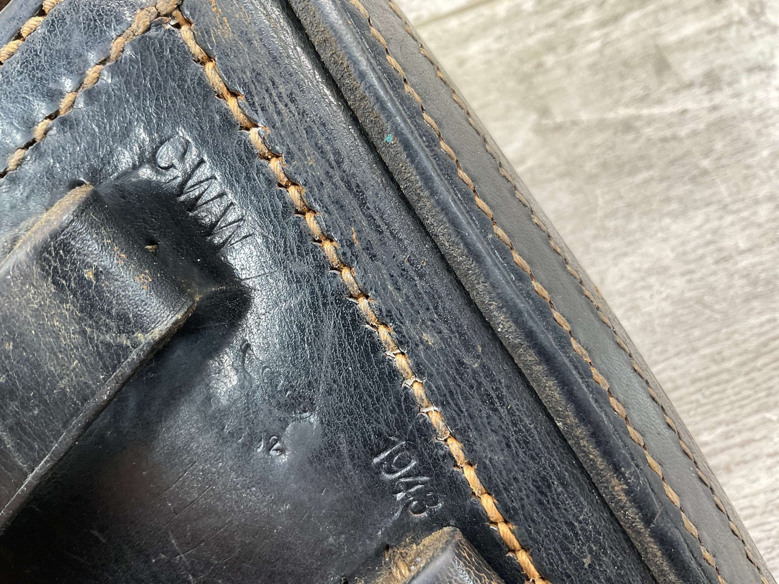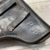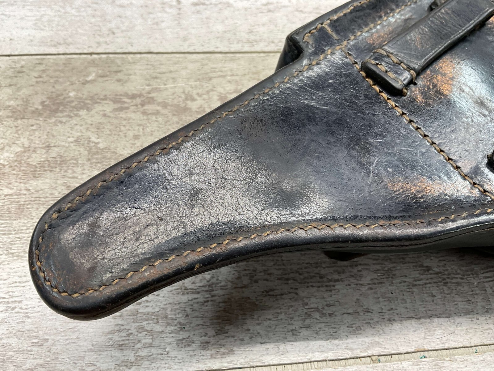 GERMAN P38 HARDSHELL “CWW 1943” MARKED BLACK LEATHER HOLSTER, LIFTING STRAP, EXC OVERALL