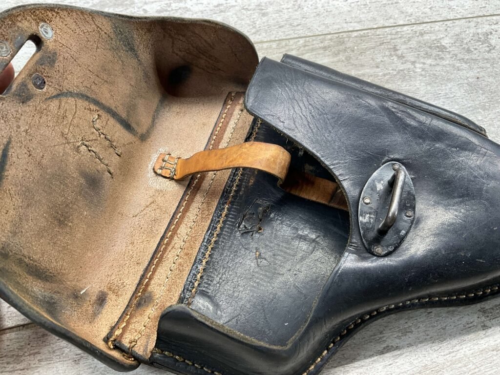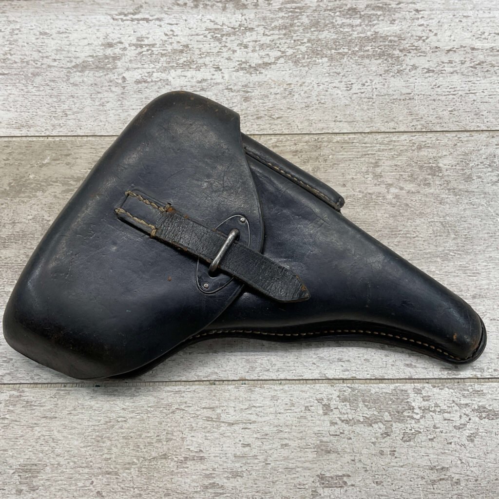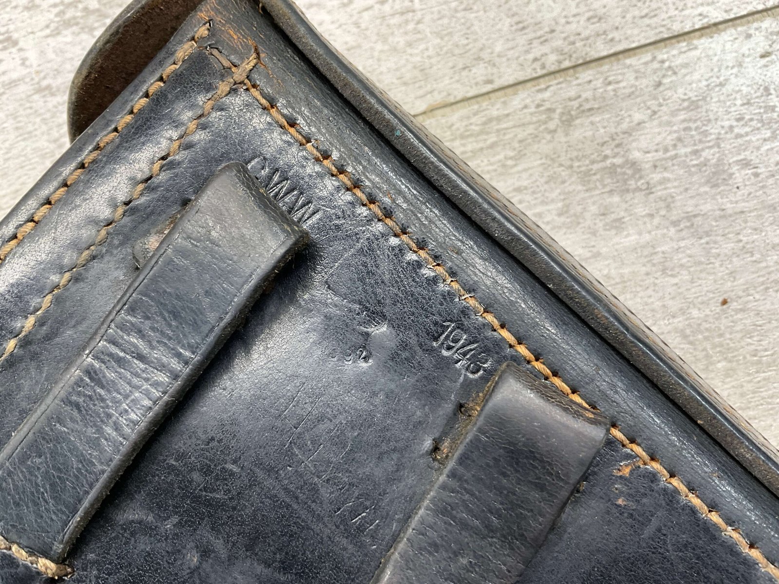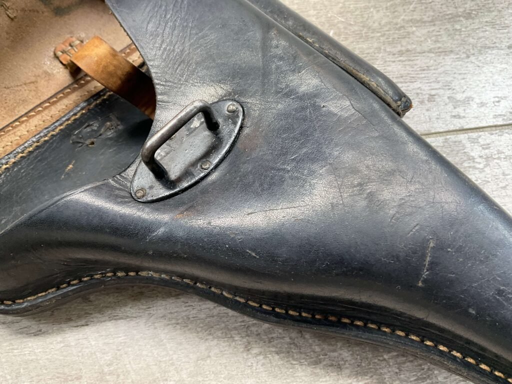 GERMAN P38 HARDSHELL “CWW 1943” MARKED BLACK LEATHER HOLSTER, LIFTING STRAP, EXC OVERALL