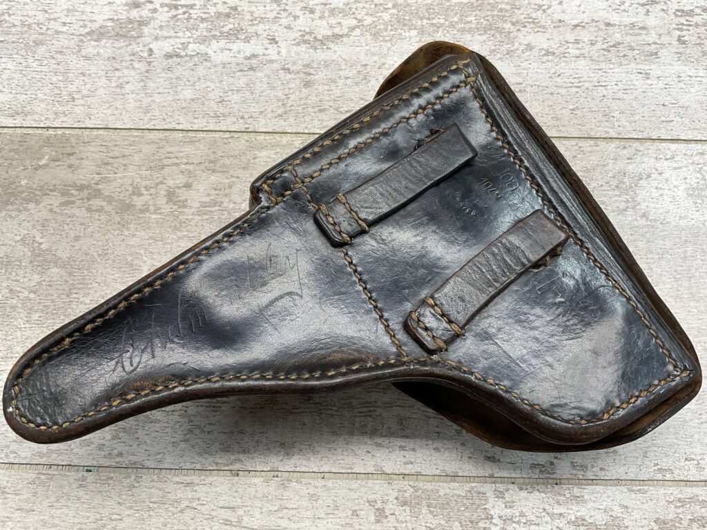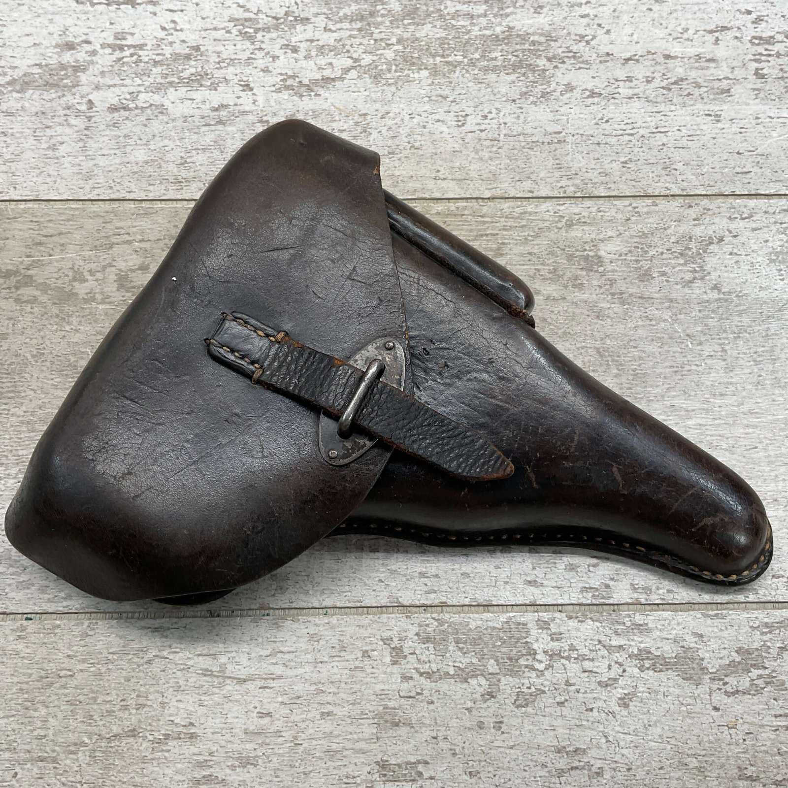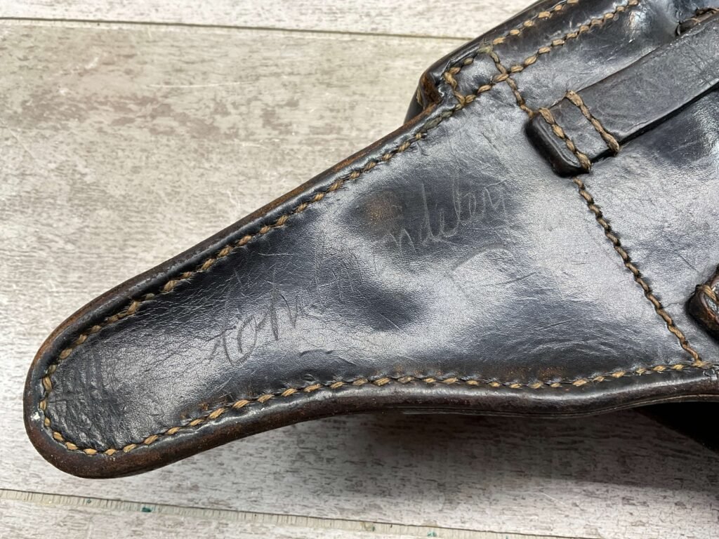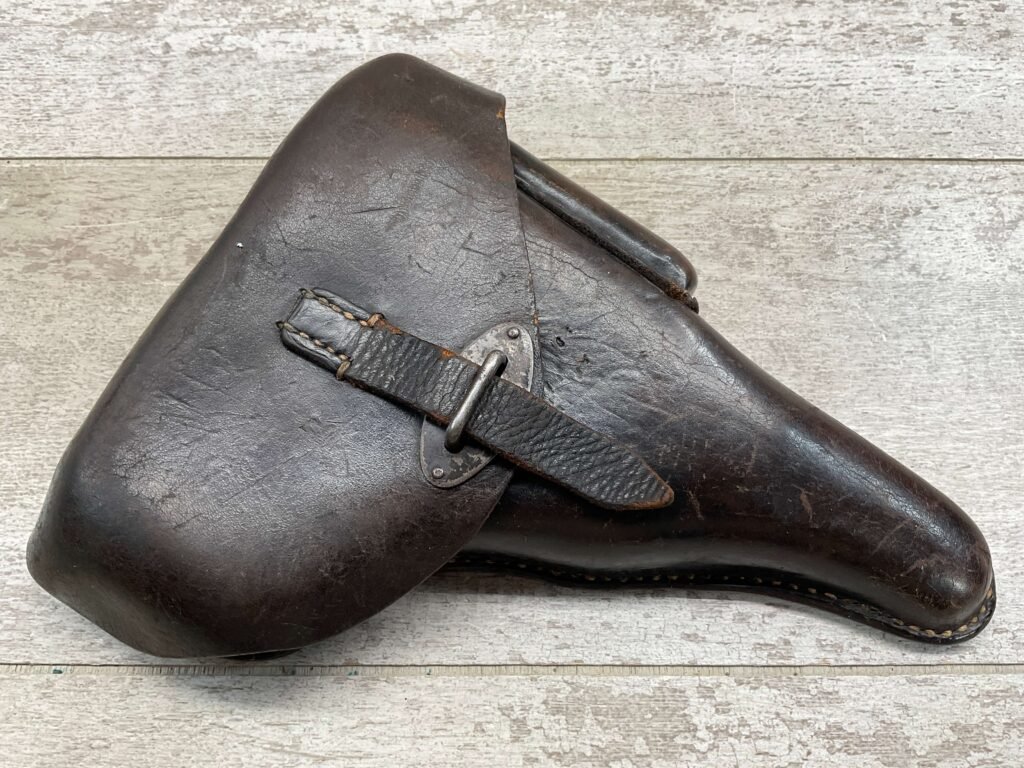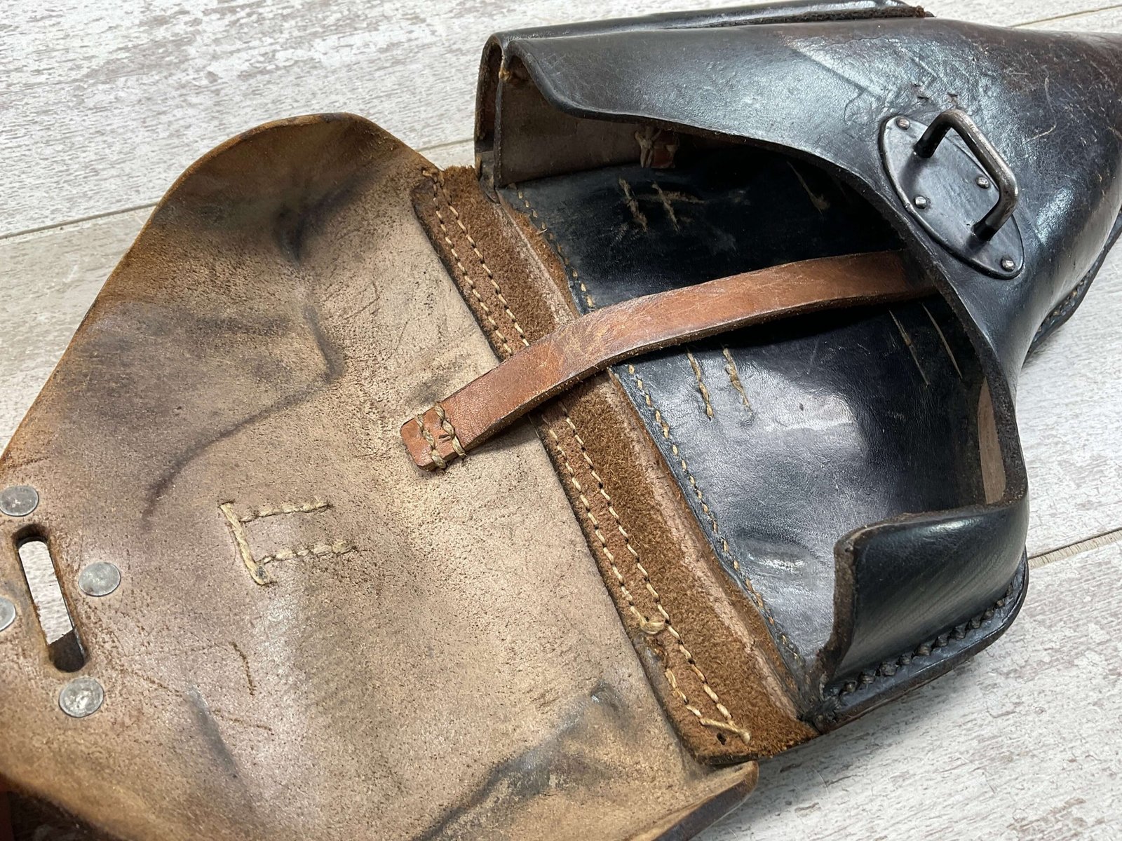 GERMAN P38 HARDSHELL “JOA 1943 / WaA706” MARKED BROWN LEATHER HOLSTER, LIFTING STRAP, EXC OVERALL