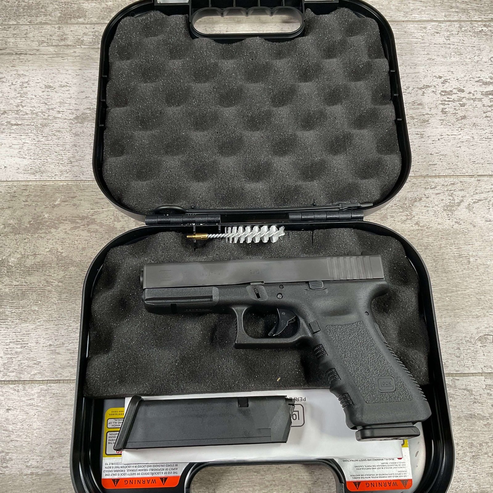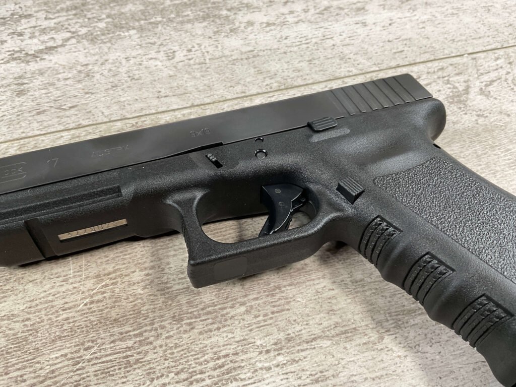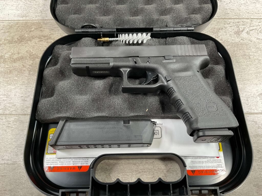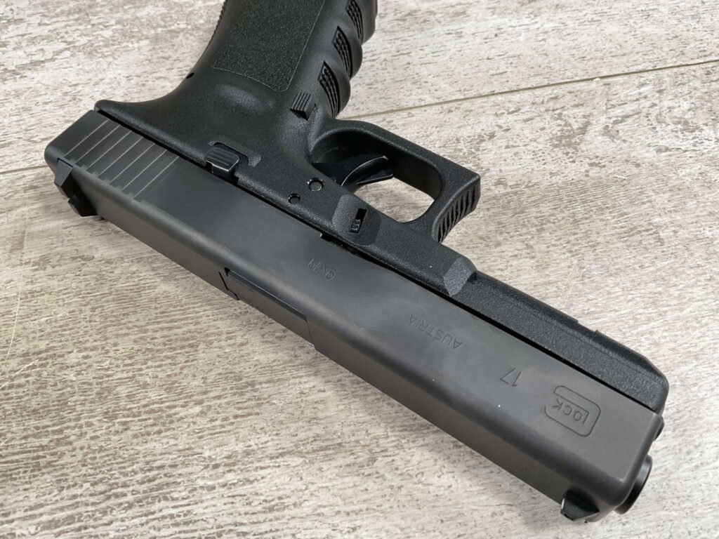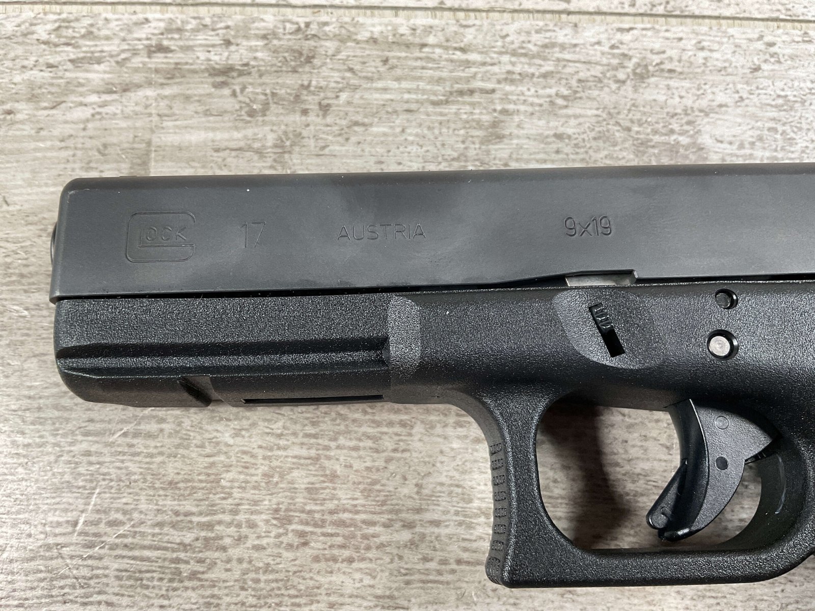 GLOCK 17 GEN 3 9MM SEMI-AUTO PISTOL #BXNR775, BLACK POLYMER GRIP/FRAME, FULL SIZE, 4.5″ BARREL, 17+1 SHOT, FIXED SIGHTS, 2 MAGAZINES INCLUDED, PARKERIZED FINISH, USED “LIGHTLY” FIRED, IN BOX WITH MANUALS
