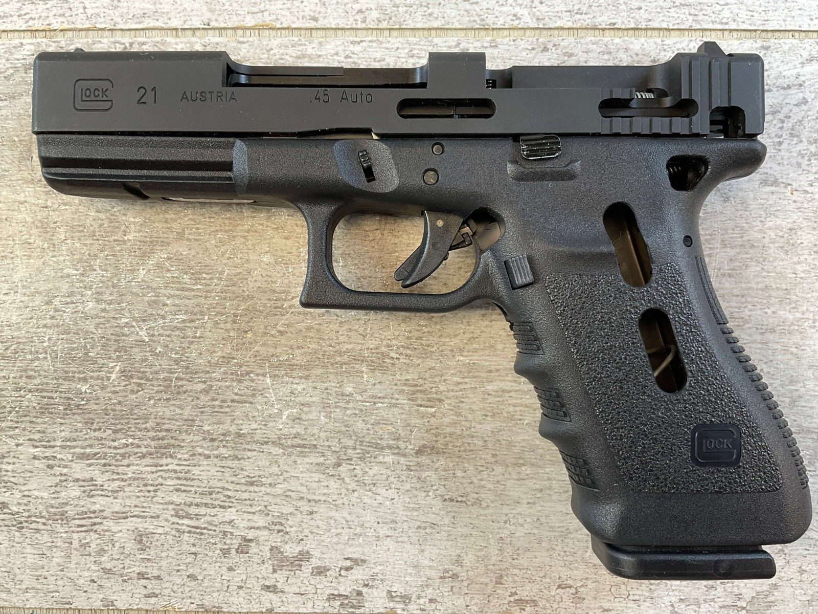 GLOCK MODEL 21 GEN2 .45 ACP FACTORY CUTAWAY SEMI AUTO PISTOL #JQ512US, .45 ACP, UNFIRED CONDITION, MAGAZINE IS CUT AS WELL, THESE WERE DEALER AND AMORER SAMPLES, THIS IS STILL CONSIDERED A FIREARM DUE TO ABILITY TO MAKE THIS OPERATIONAL, THIS CANNOT BE FIRED!! CONDITION AS SHOWN IN PICTURES, FROM THE JAMES EARL JONES “FAVORITES” COLLECTION W/ CERTIFICATE OF AUTHENTICITY.