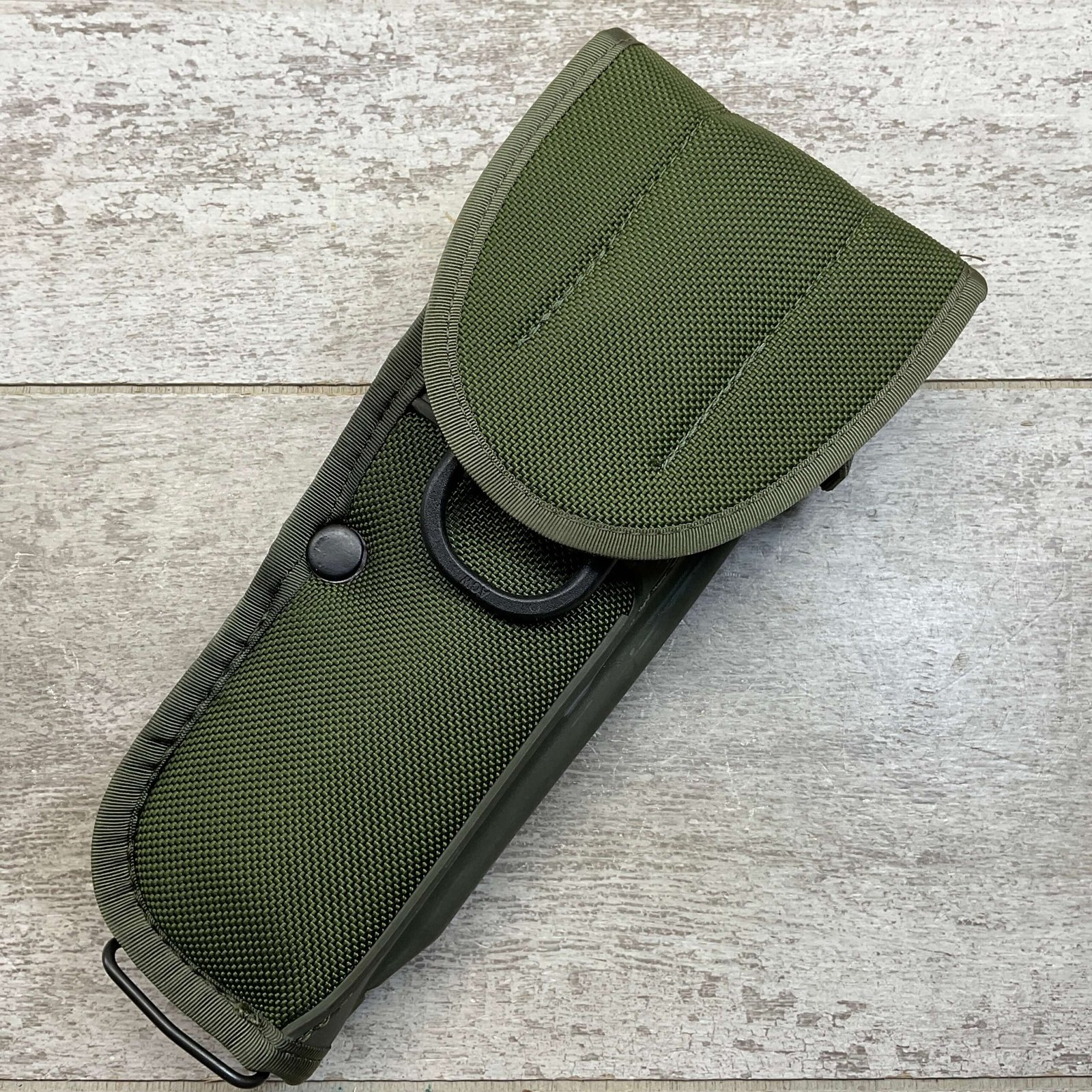 M12 GREEN NYLON HOLSTER FOR M9 9MM HANDGUN (SCOTT MEADOWS COLLECTION), NEVER USED, MADE BY HILL COUNTRY LEATHER, BELT/OWB, AMBIDEXTROUS, W/CLEANING ROD, NEW.
