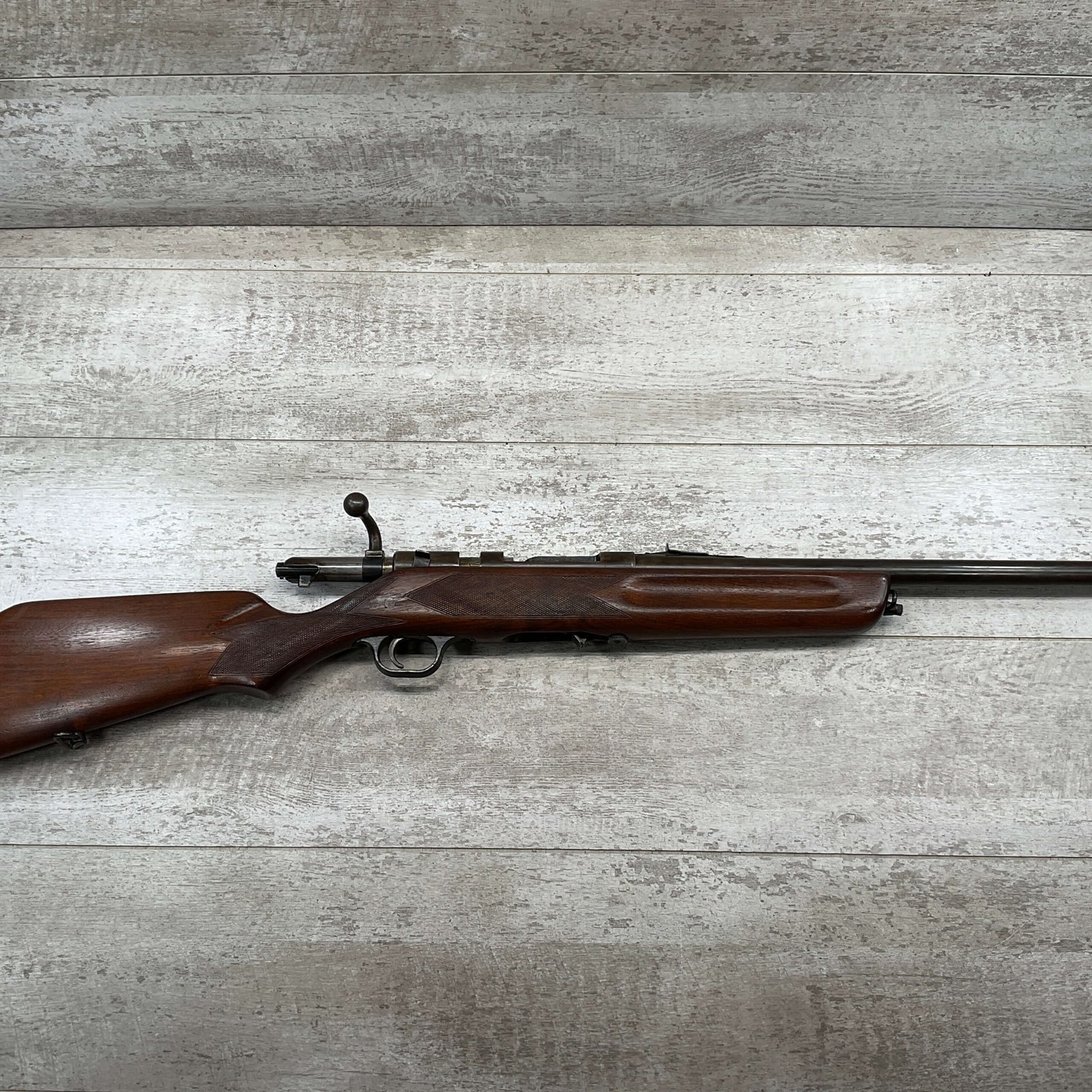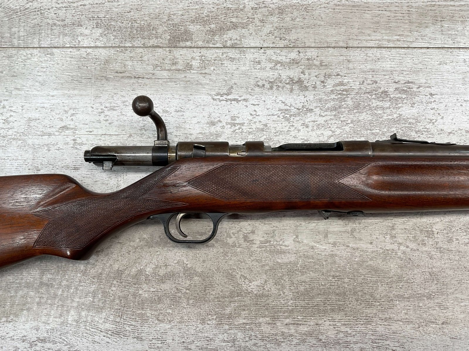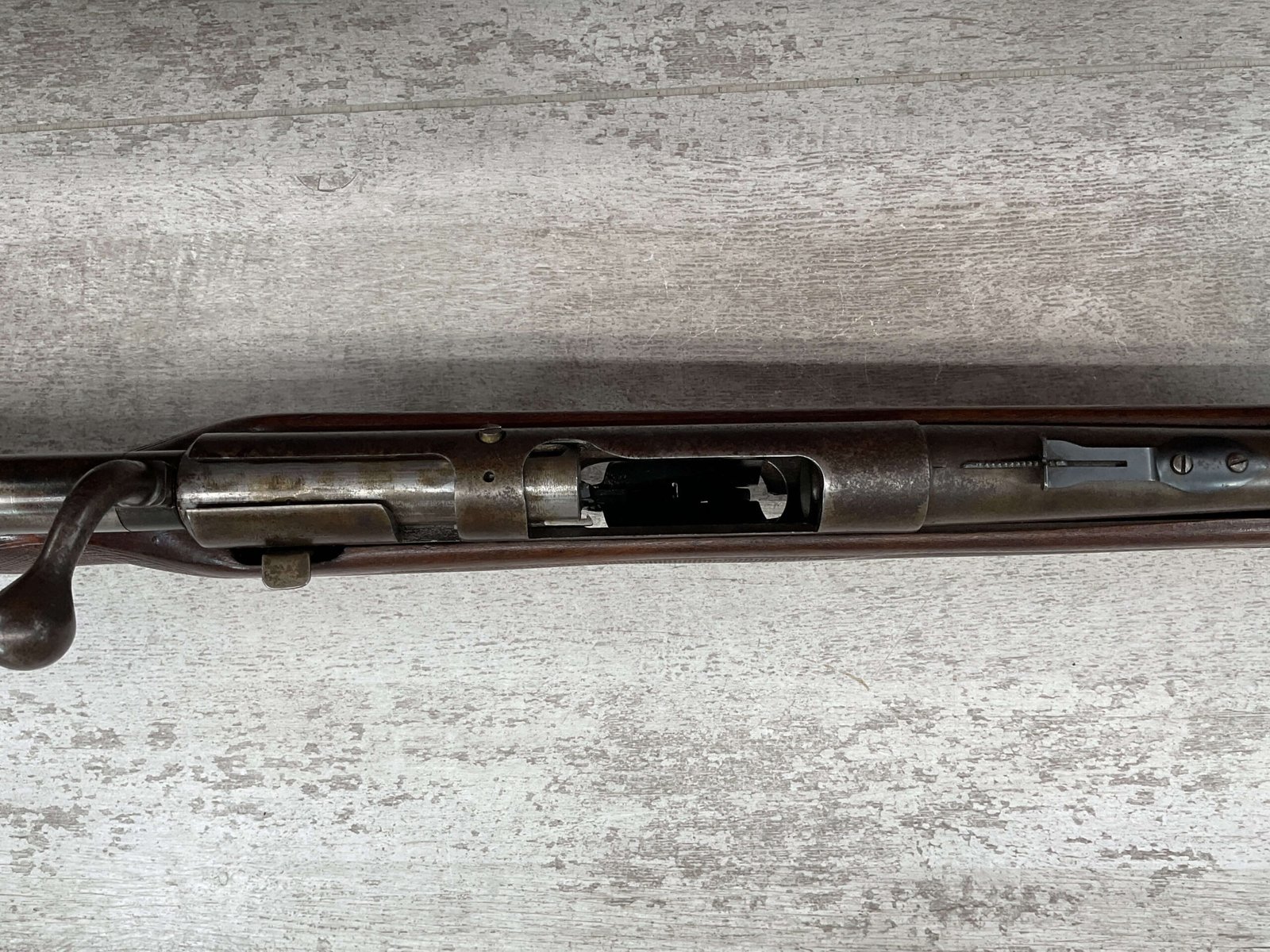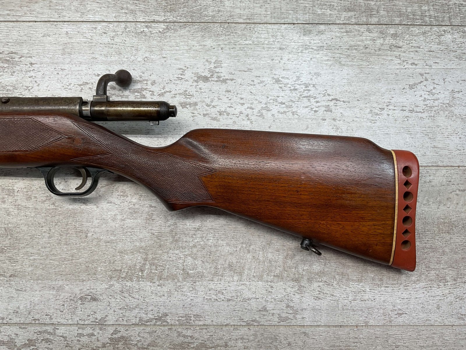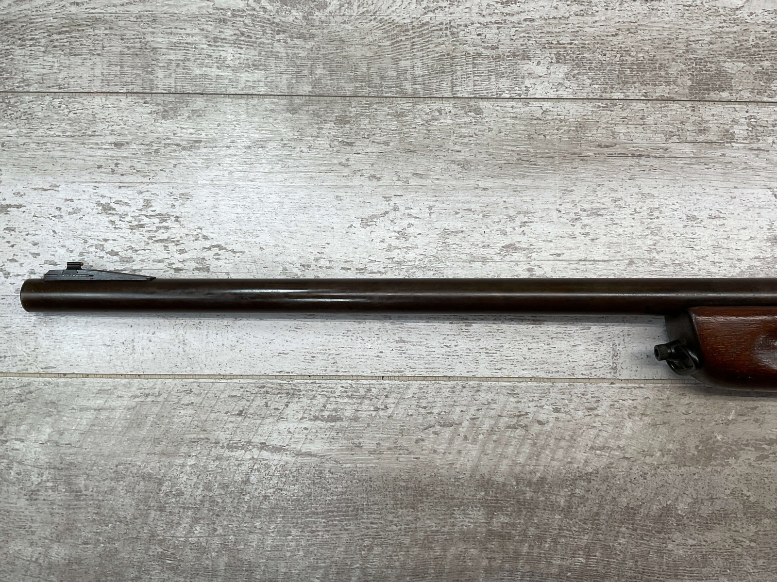 HARRINGTON & RICHARDSON MODEL 349 GAMESTER 16GA BOLT ACTION SHOTGUN #NSN, 23 1/2″ BBL, 3 ROUND MAG, EXC BRIGHT BORE, EXC AMERICAN WALNUT STOCK, BLUE HAS FRECKLING & TURNED BROWN/GREY PATINA, 16GA MODIFIED CHOKE, SMOOTH ACTION, RIFLE TYPE SIGHTS ADDED, FRONT & REAR SLING SWIVELS, TAKEDOWN, 75% OVERALL