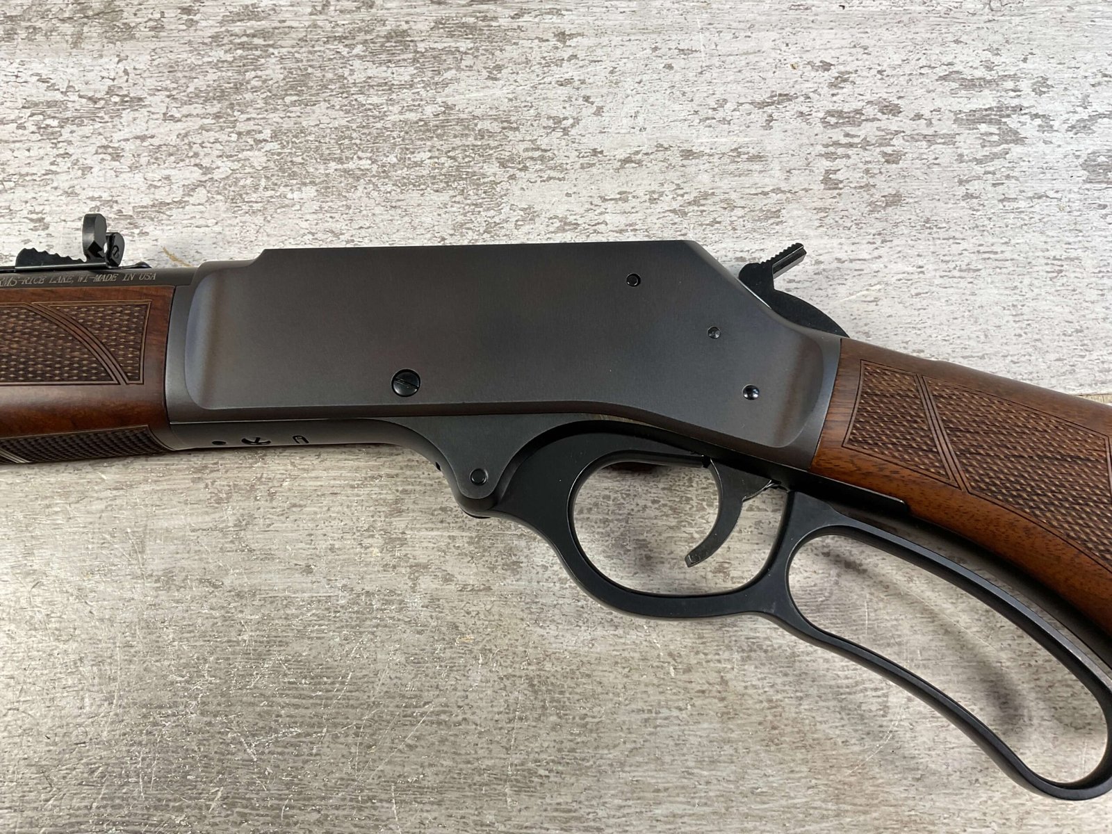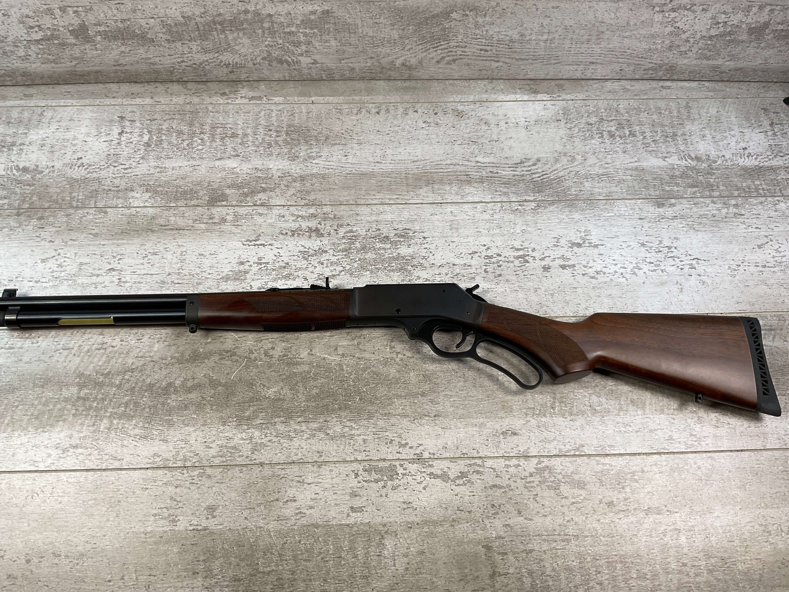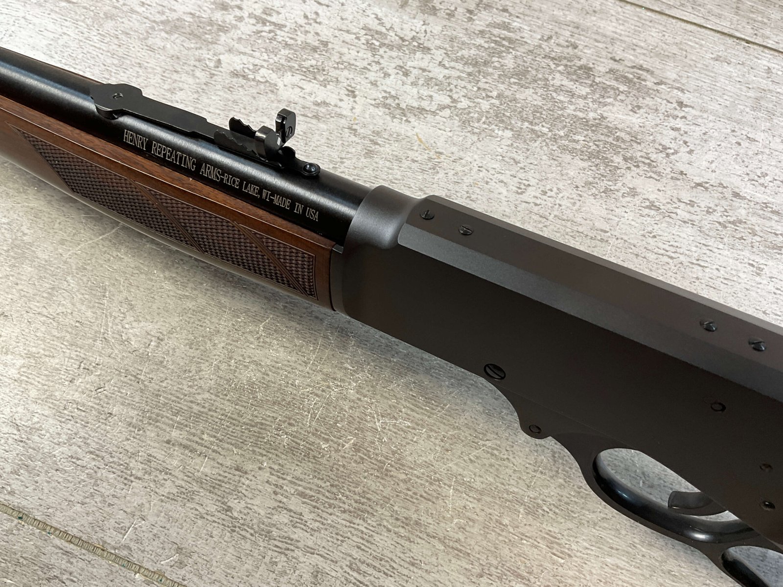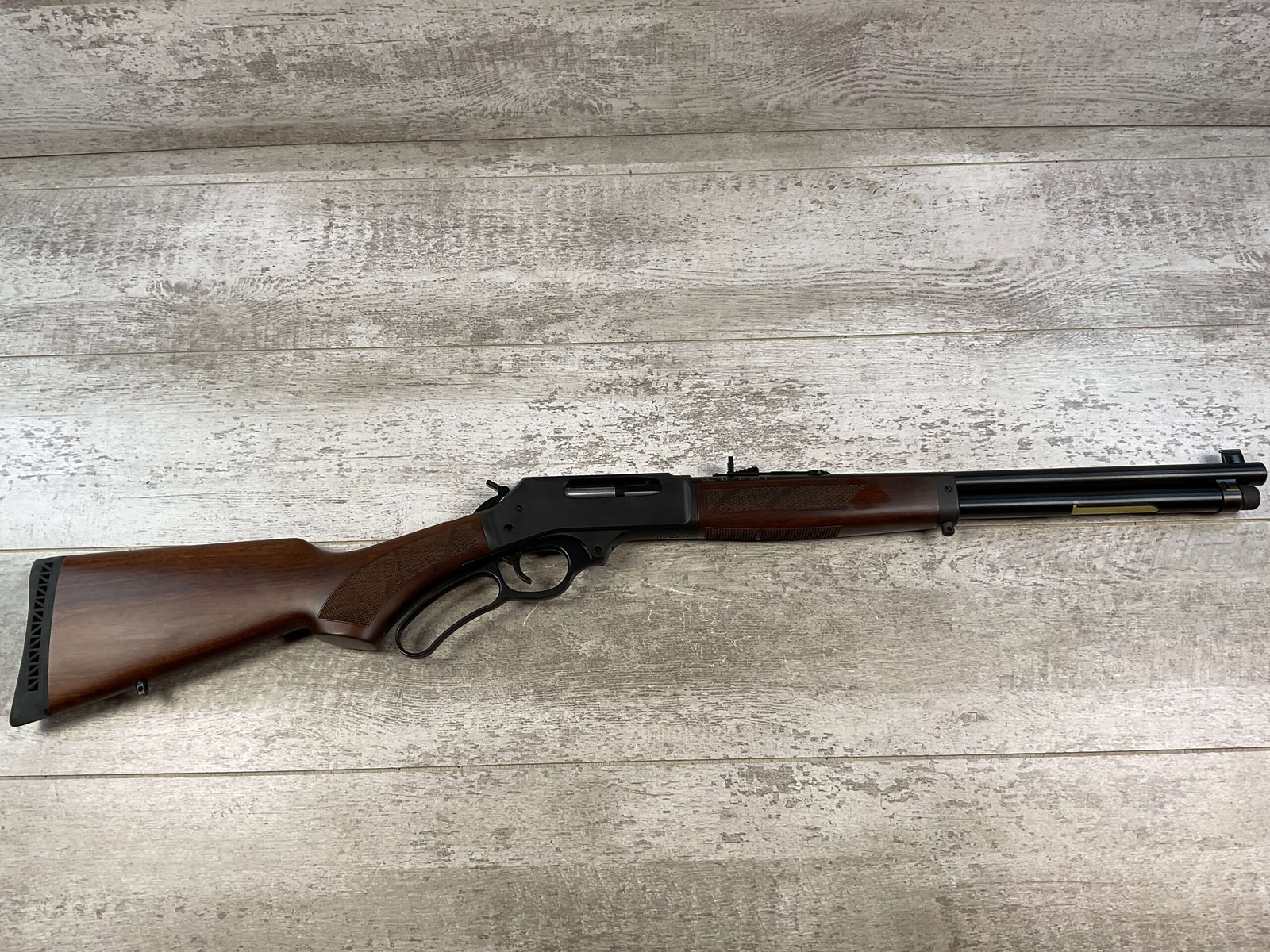 HENRY REPEATING ARMS H010 45-70 GOV’T LEVER ACTION RIFLE, FFL #WFFS020854, 18.5″ BARREL, 4 ROUND TUBE MAG, LEVER ACTION, RUBBER BUTT PAD, BEAUTIFUL WALNUT CHECKERED STOCK W/NO DINGS OR NICKS FROM USE, 99%+ OVERALL, NOT SURE THIS ONE WAS EVER EVEN FIRED!!, SEE PICTURES FOR OVERALL CONDITION & WEAR.