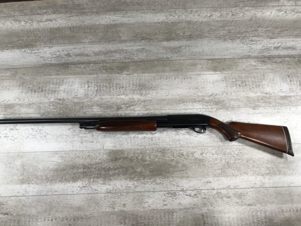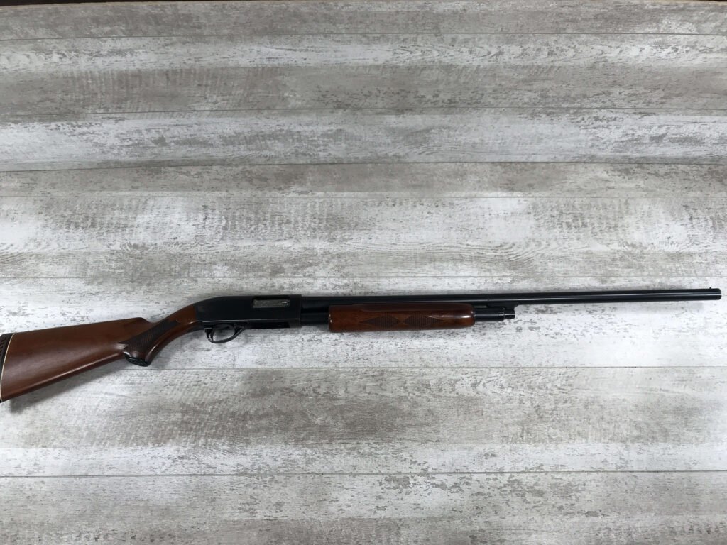 SKU#476 HIGH STANDARD FLITE-KING DELUXE MODEL K-121 12GA PUMP SHOTGUN #3107046, 2 3/4″ CHAMBER, 30″ FULL CHOKE BBL, EXC BLUE, EXC CHECKERED WOOD STOCK W/RUBBER RECOIL PAD, TIGHT ACTION, 1966-1972 MFR, 95% OVERALL