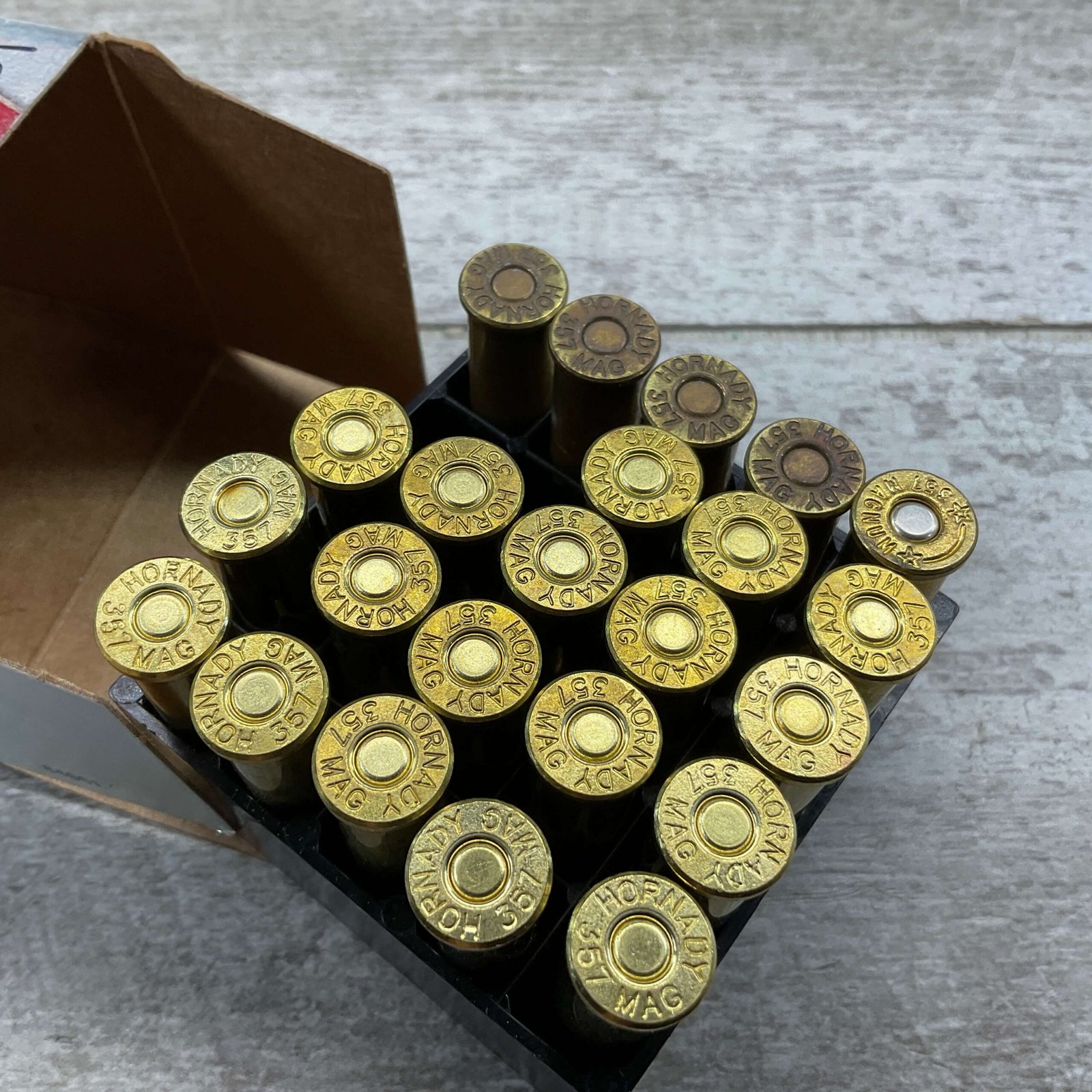 HORNADY 357 MAGNUM MULTIPLE CARTRIDGE TYPE, LEVEREVOLUTION 140GR FXT QTY 18, HORNADY 357 MAGNUM QTY 5, PARTIAL BOX QTY 23