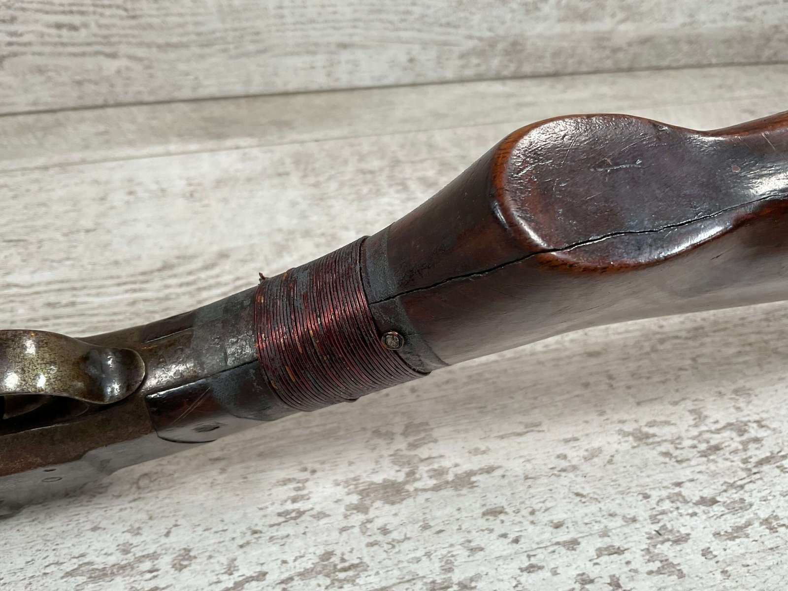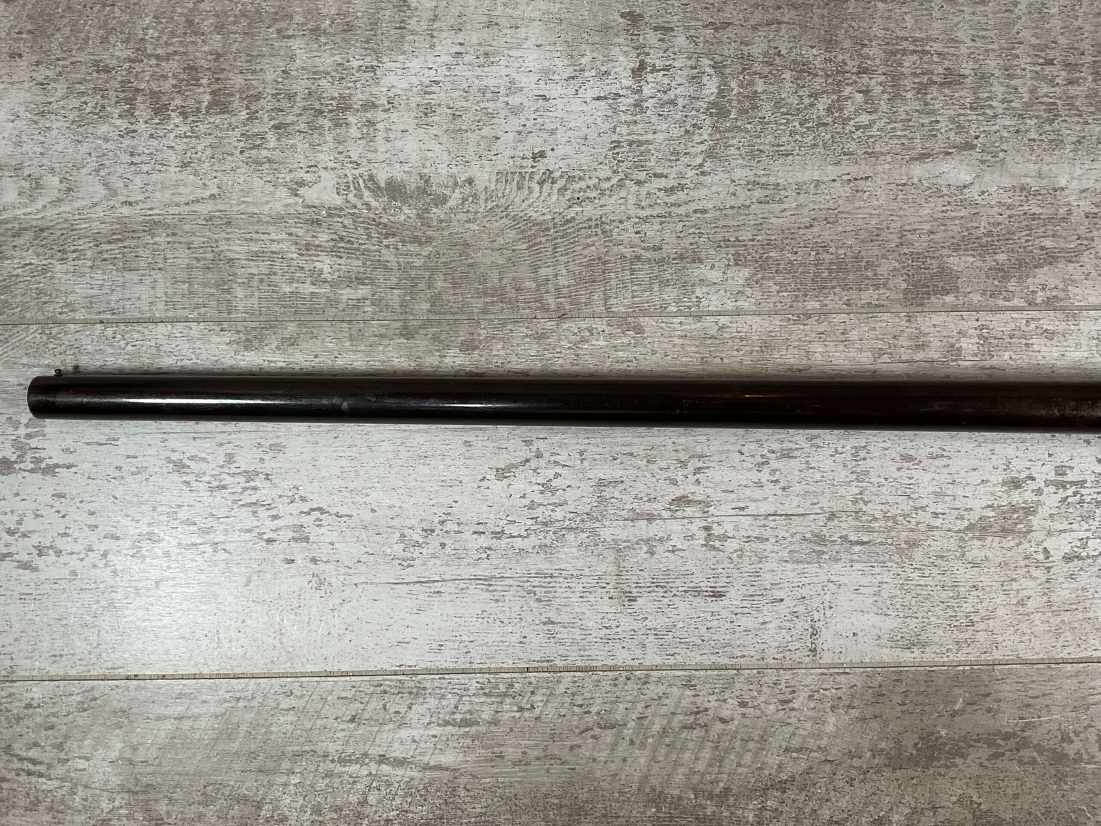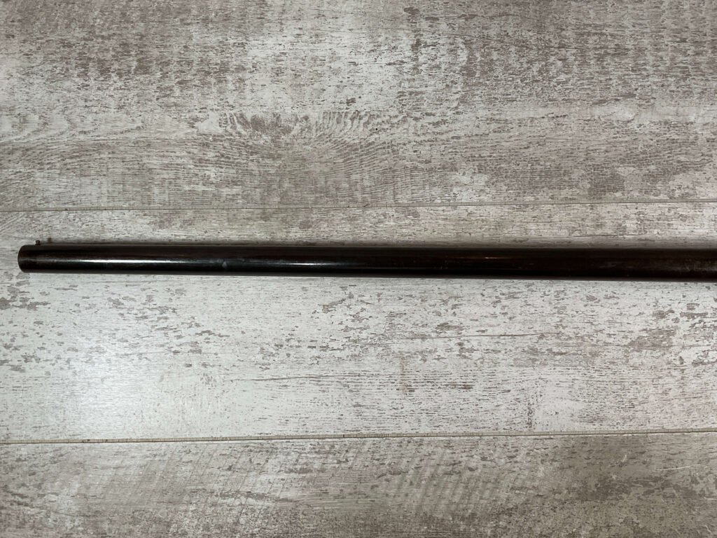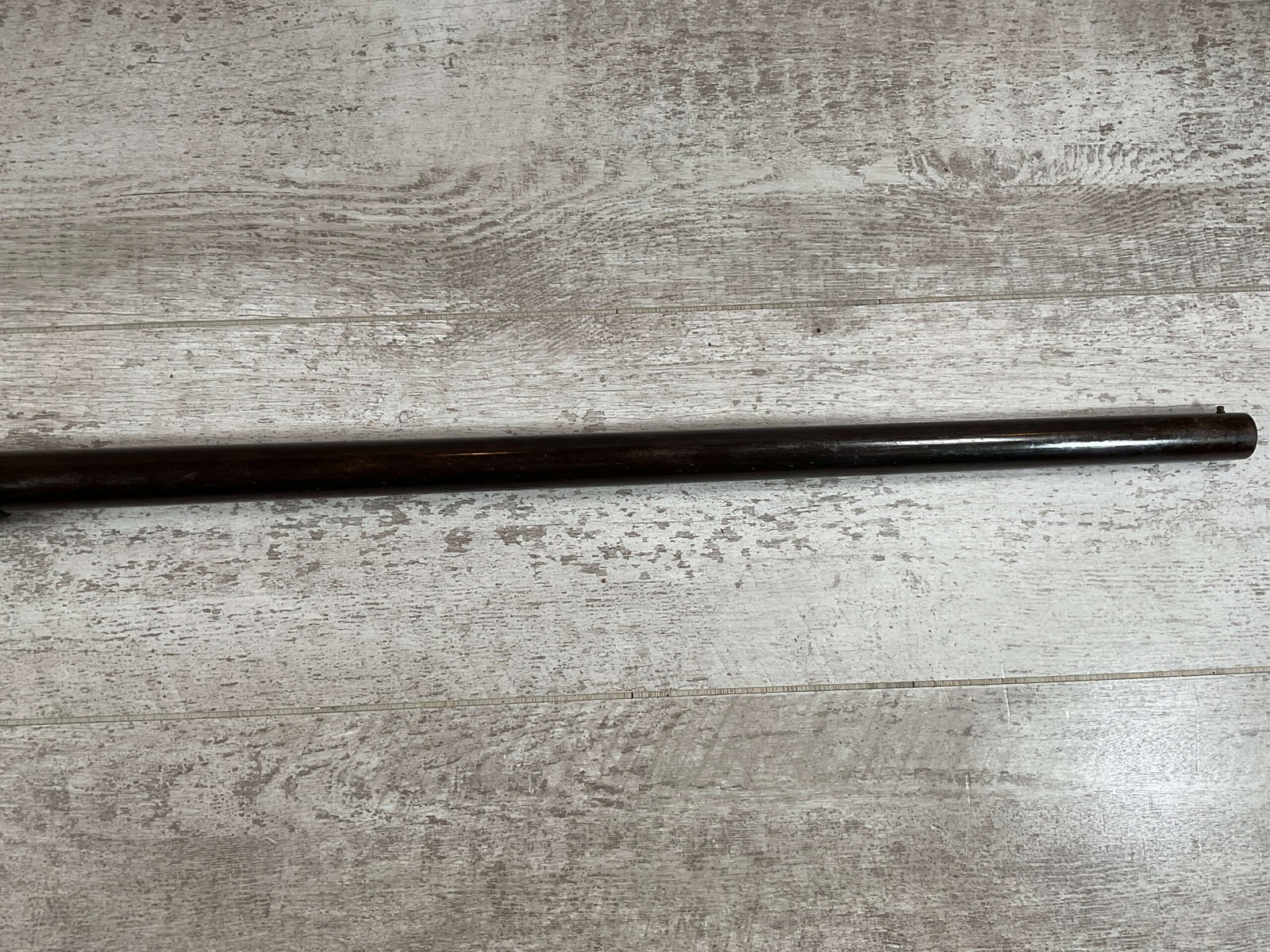 H&R HARRINGTON & RICHARDSON MODEL 1908 12GA SINGLE BARREL SHOTGUN #A 29338, 32″ BBL, OXIDIZED BORE, METAL SURFACES ARE BROWN PATINA, WOOD HAS HEAVY HANDLING MARKS/DENTS/NICKS, ORIGINAL PLASTIC H&R LOGO BUTTPLATE, CRACK ON THE BUTT STOCK NEAR THE PISTOL GRIP (CRUDELY REPAIRED), HAMMER AND ACTION FUNCTIONS, C&R FFL OK