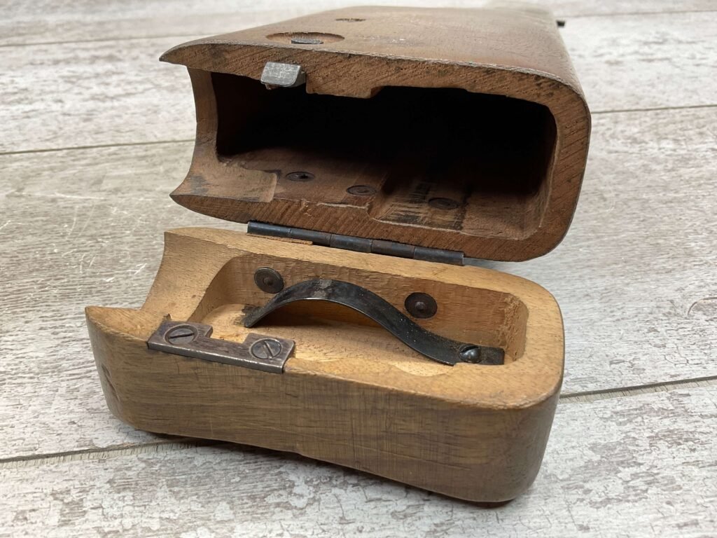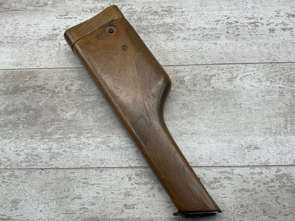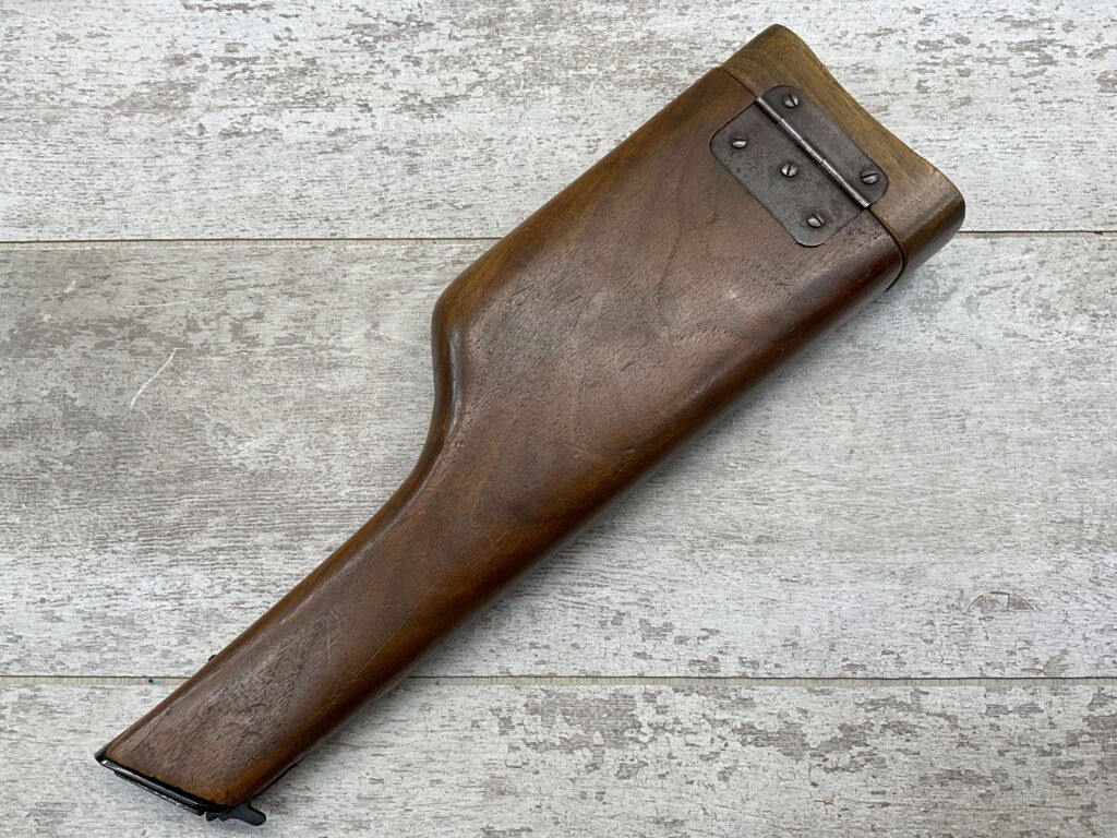 IMPERIAL PROOFED MAUSER C96 BROOMHANDLE HOLSTER / STOCK, LUG IS NOT NUMBERED, EXC HINGE W/ NO ISSUES CLOSING, LIGHT SCRATCHES & DENTS FROM USE, LUG IS NOT FITTED PERFECTLY, EXC OVERALL