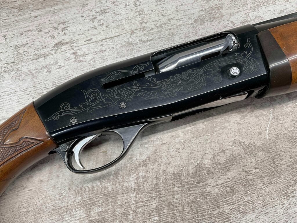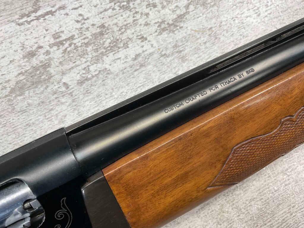 ITHACA / SKB XL300 12GA SEMI AUTO SHOTGUN #S1309367, 28″ VR BBL, MOD, 2 3/4″ CHAMBER, EXC CHECKERED WOOD STOCK, EXC BLUE W/SCROLL WORK, 13 7/8″ LOP, MOD FIXED CHOKE, EXC BRIGHT BORE, BLACK PLASTIC BUTT PAD, HI-VIZ FRONT SIGHT, VERY NICE!!