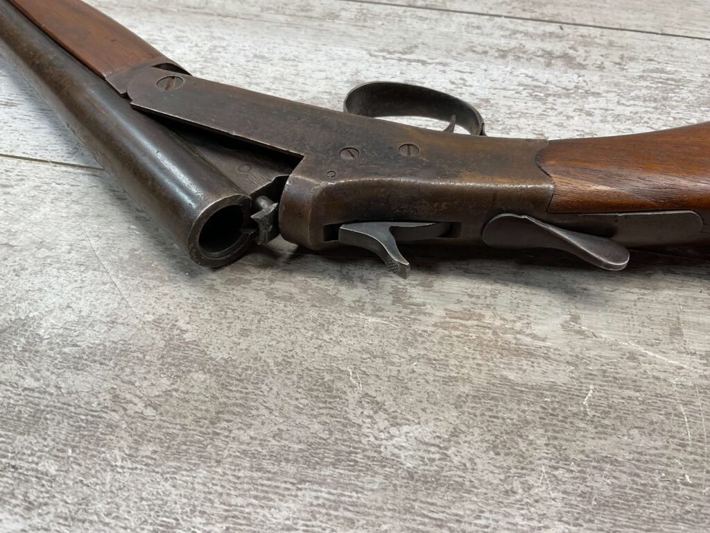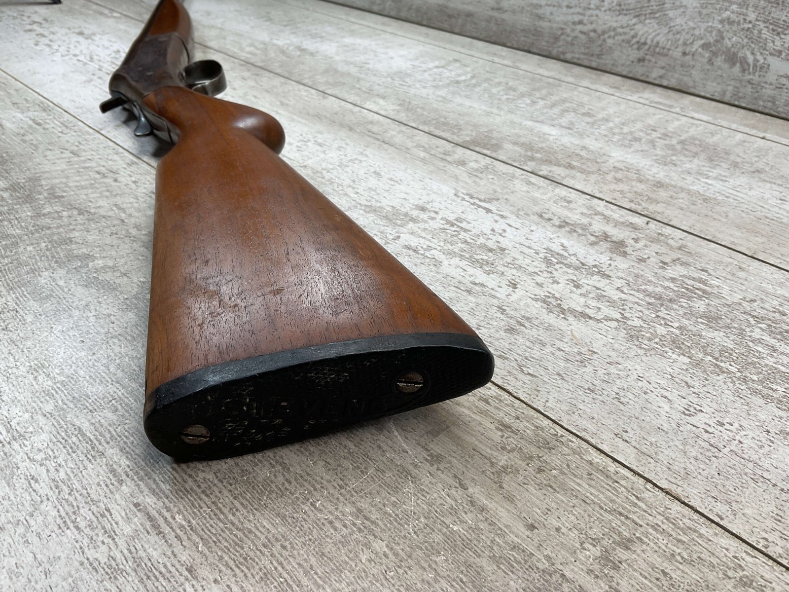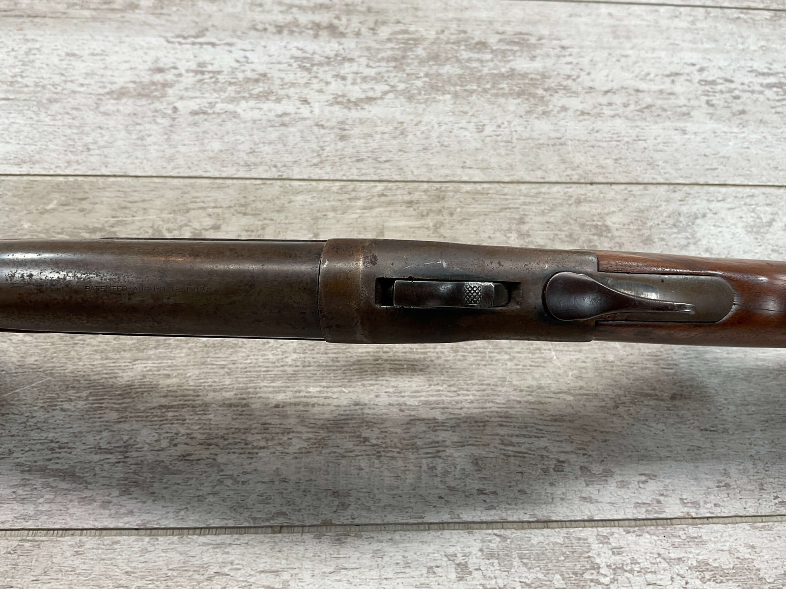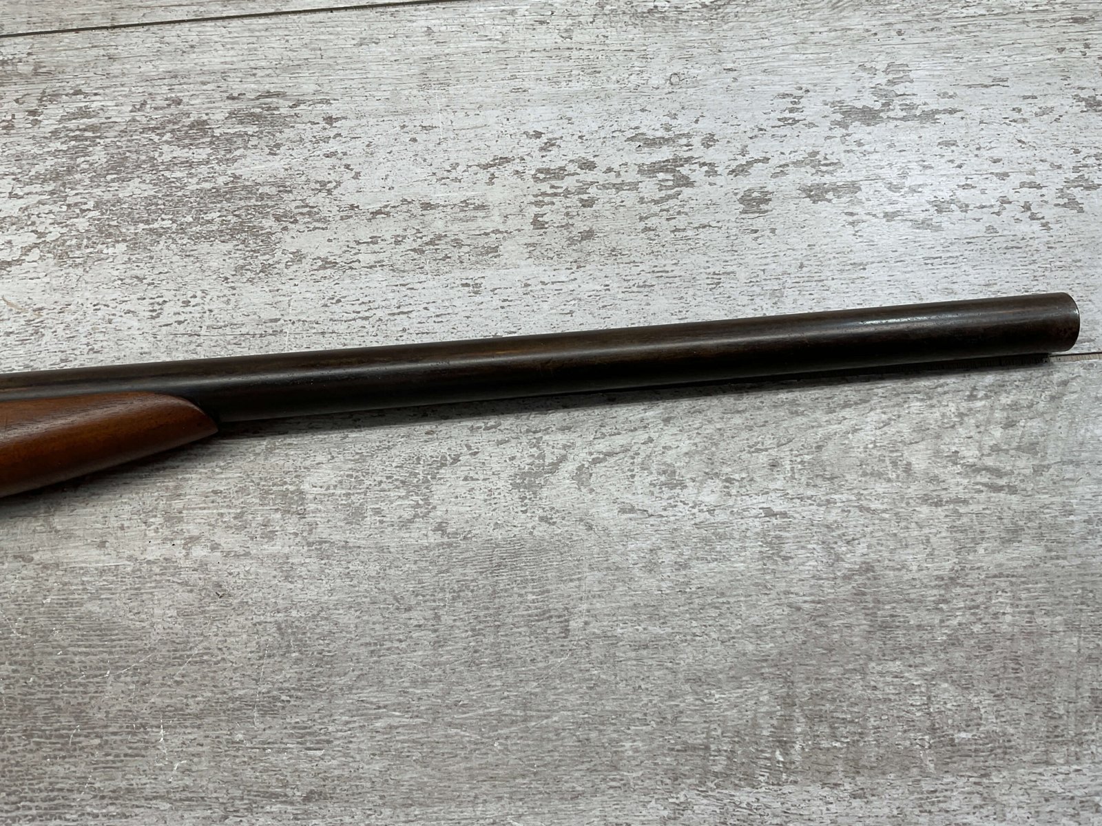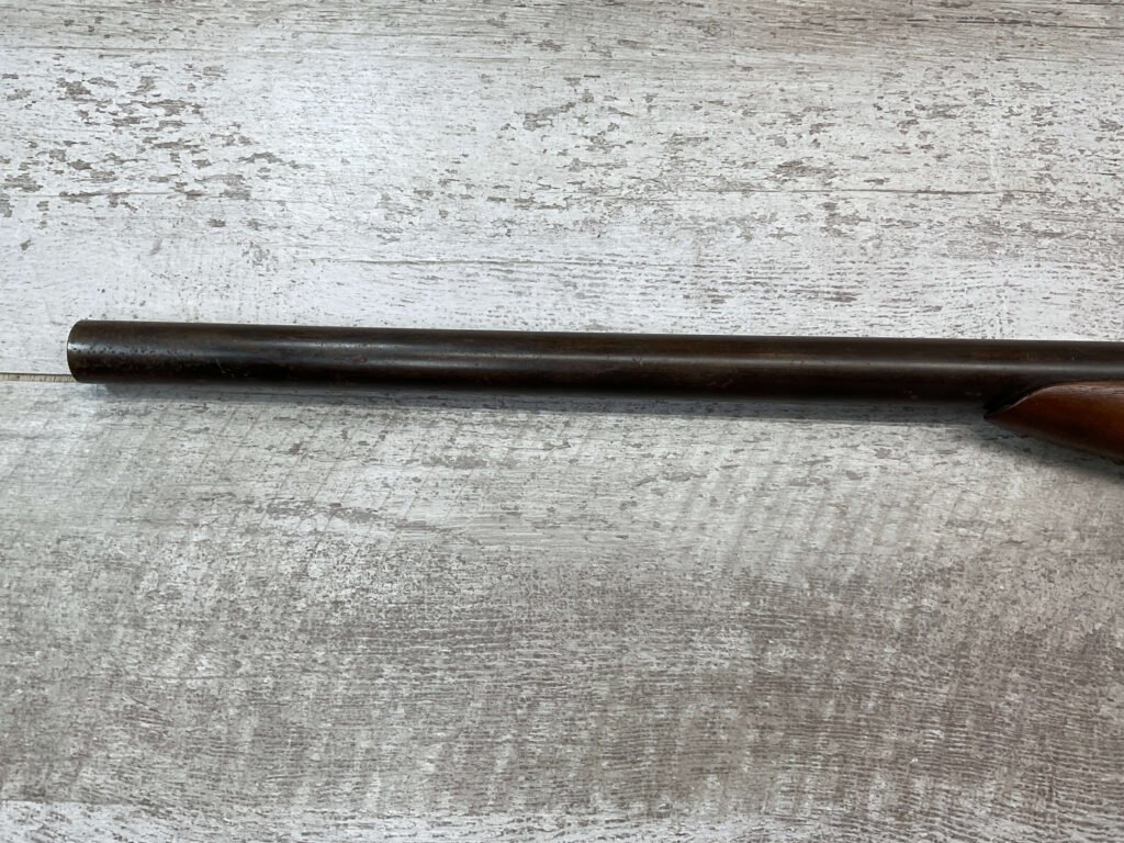 J. STEVENS SINGLE-SHOT 12 GA BREAK ACTION SHOTGUN, NSN, 22″ BBL, BRIGHT BORE WITH LIGHT PITTING THROUGHOUT, LIGHT RUST AND PITTING THROUGHOUT THE EXTERIOR METAL, TOP OF THE BBL IS STAMPED WITH “PATENTED AUGUST 12 1913”, LEFT SIDE OF THE RECIEVER IS STAMPED “J. STEVENS ARMS COMPANY” OVER “CHICOPEE FALLS, MASS, USA” PLASTIC BUTTPLATE WITH “STEVENS” STAMP. FAIR-GOOD CONDITION.
