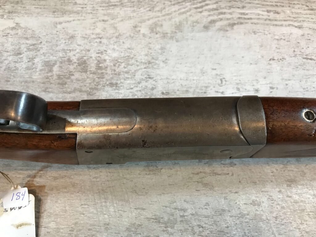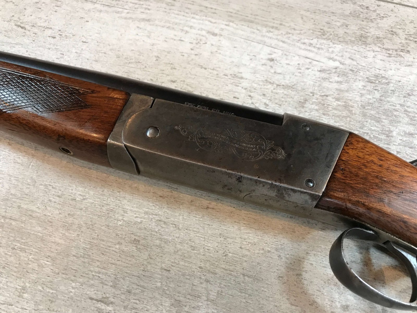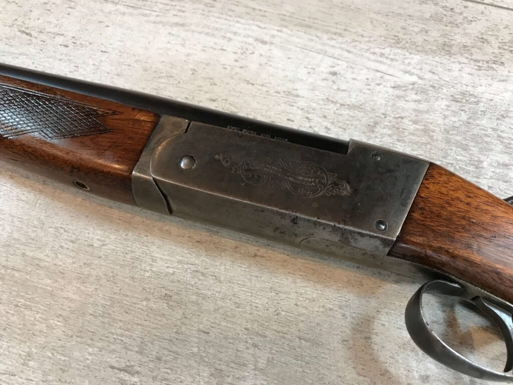 J.STEVENS MODEL 1914 12GA. LARGE FRAME HAMMERLESS SINGLE SHOT 30″ EXTRA-FULL SHOTGUN, (PRE-MODEL 220), EXC. CHECKERED WALNUT STOCK, EXC. BORE, 80% ORIGINAL COLOR-CASE RECEIVER, VERY NICE, 90-95% BLUE