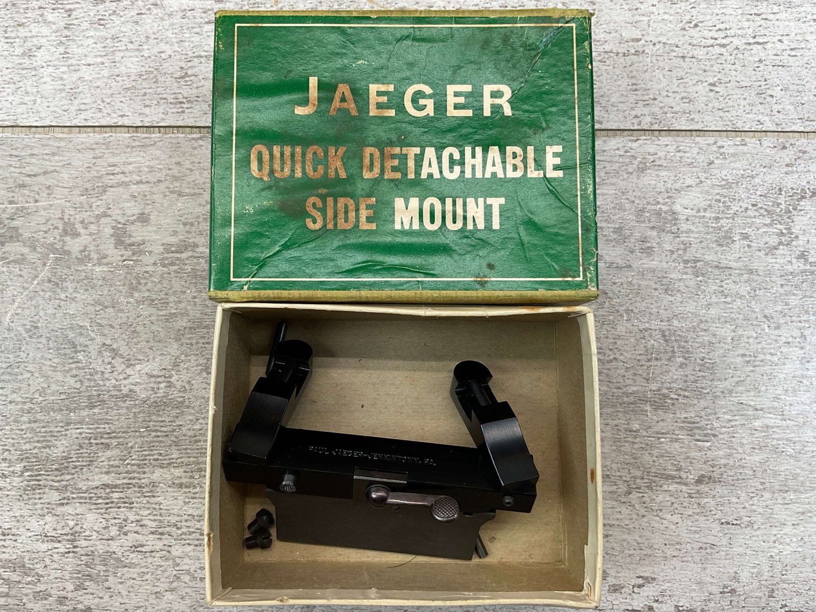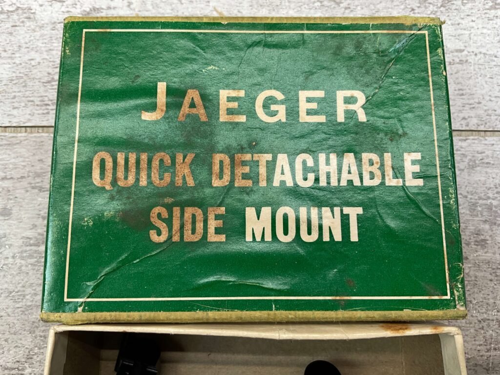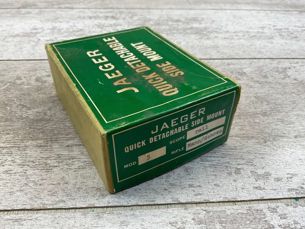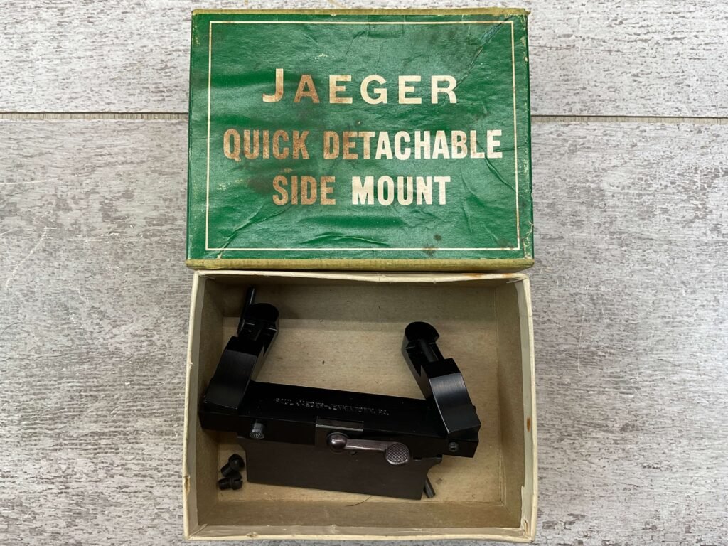 JAEGER QUICK DETACHABLE SIDE MOUNT, MOD. 5, FOR MANN/SCHOEN RIFLES, VINTAGE, RARE, RAIL SCOPE, DOES NOT INCLUDE RINGS, FOR MANN/SCHOEN RIFLES, IN ORIGINAL BOX