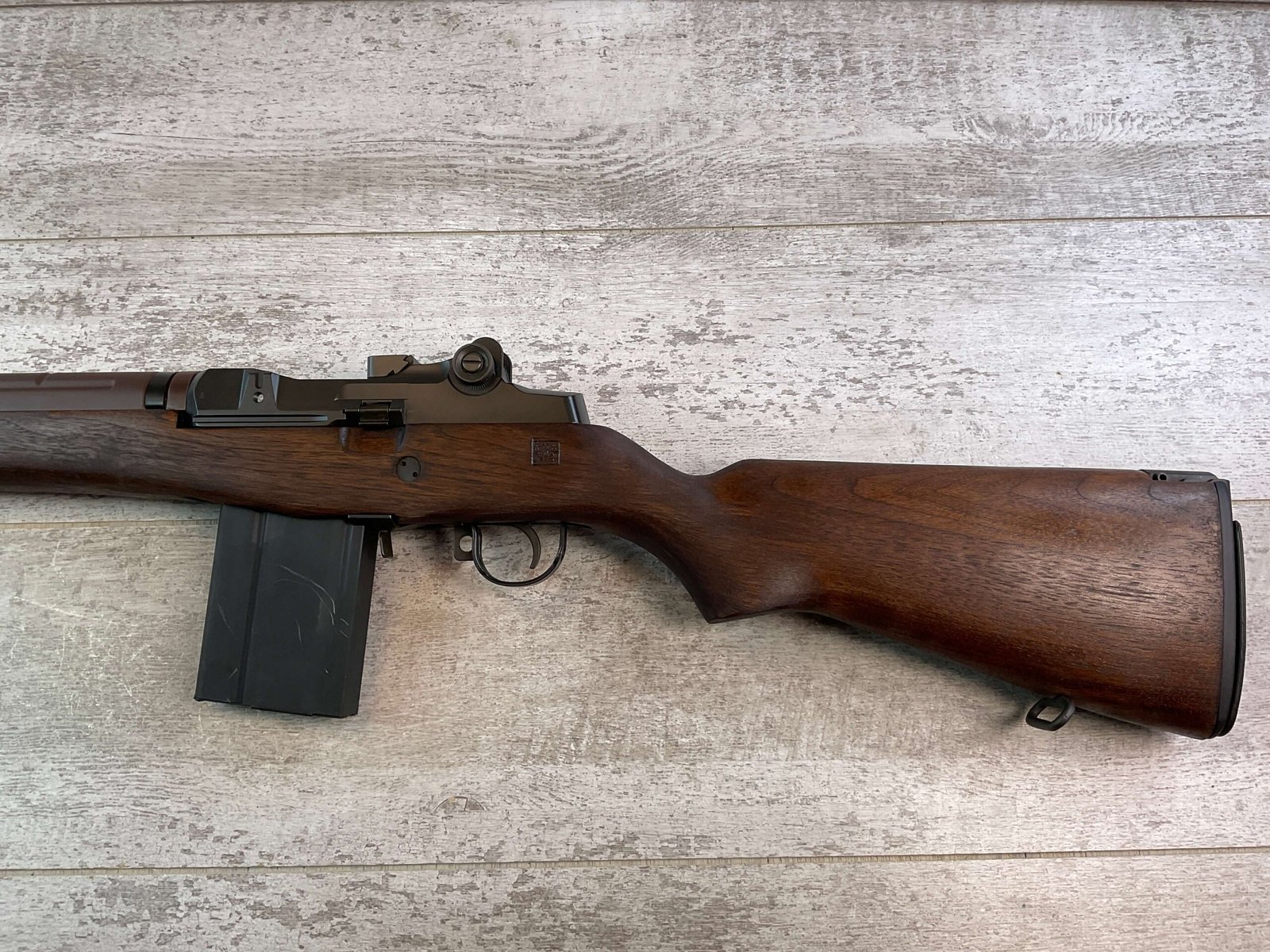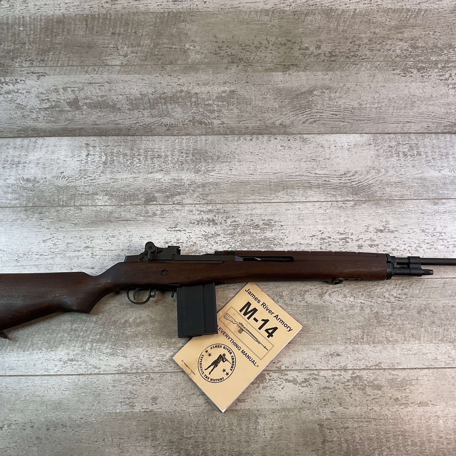 JAMES RIVER ARMORY M14 7.62X51/.308 WIN. SEMI AUTO RIFLE #595160, 22″ CHROME LINED BBL, SHORT STROKE GAS PISTON SYSTEM, WALNUT STOCK, FLASH HIDER, BAYONET LUG, HIGH-QUALITY MODERN CIVILIAN CLONE TO USGI M14