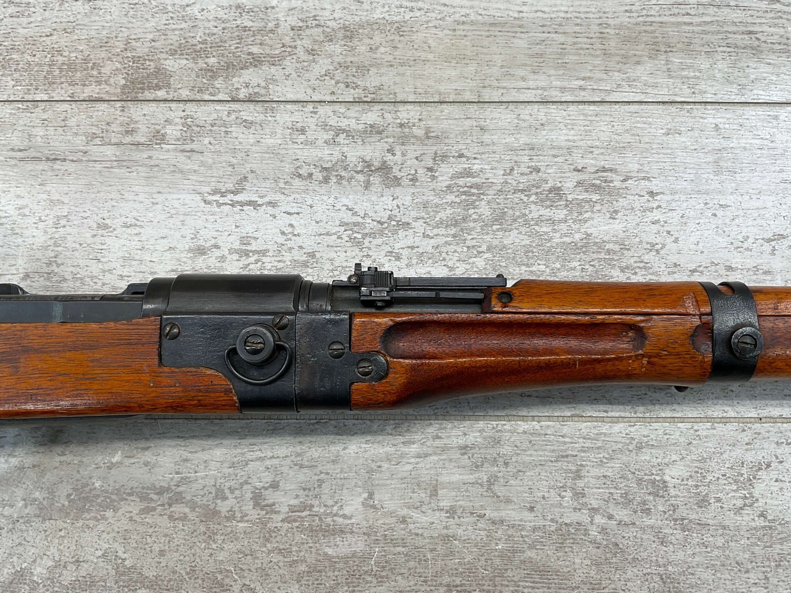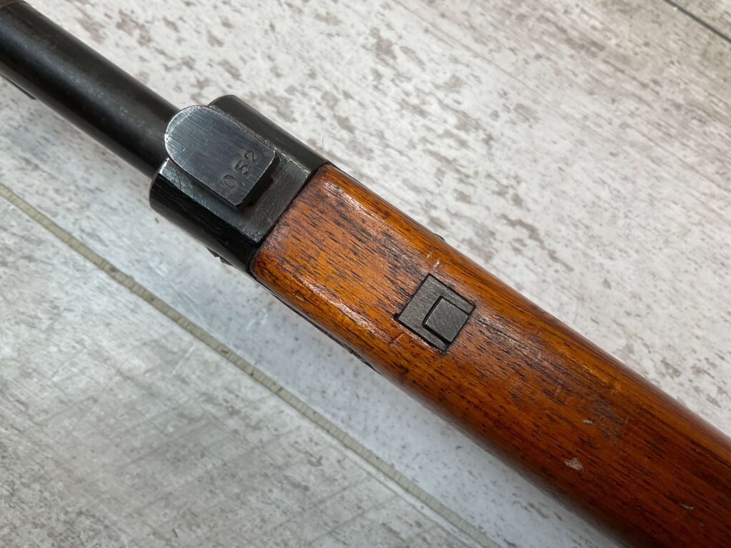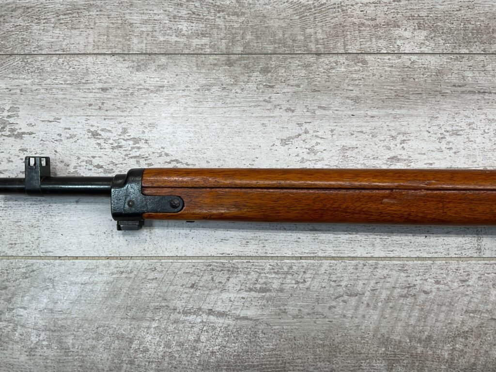 The rifle’s folding stock further enhances its paratrooper-friendly design, reducing its overall length for easier handling during airborne operations. The wooden stock and handguard exhibit the classic craftsmanship of Japanese military rifles, featuring a practical and utilitarian aesthetic.