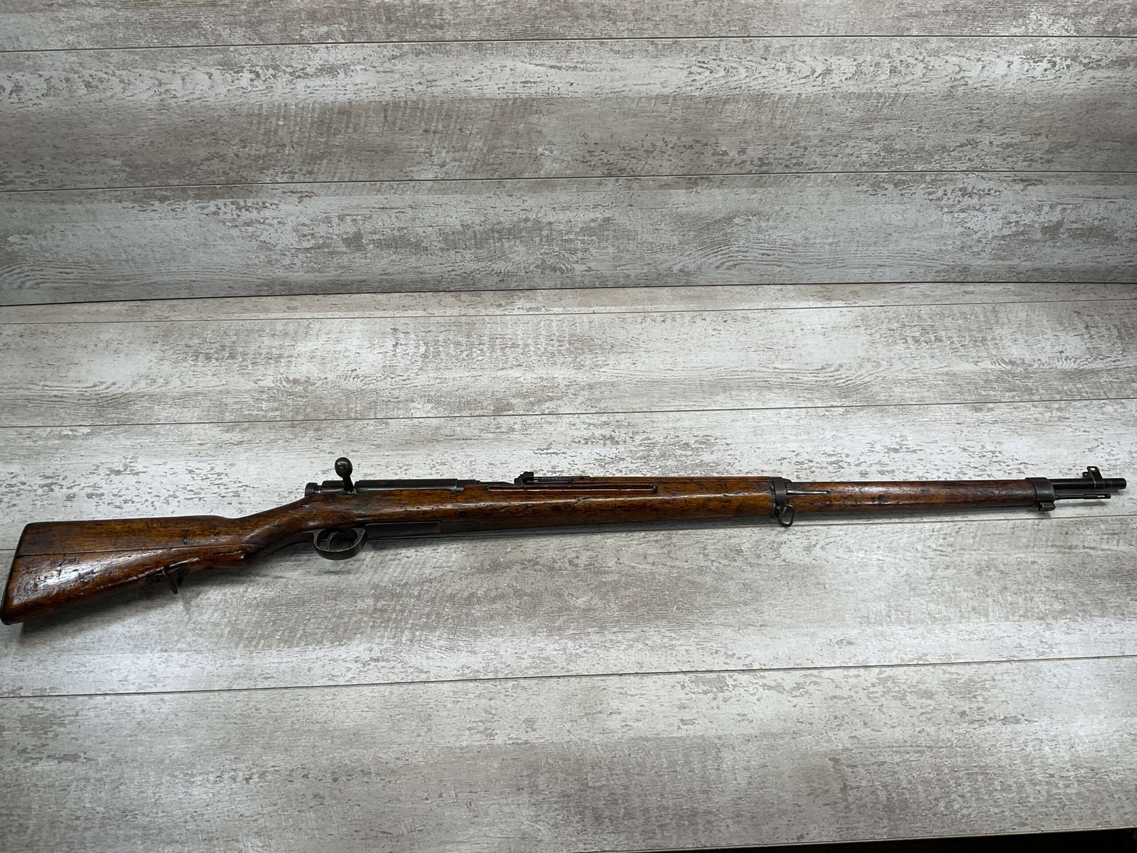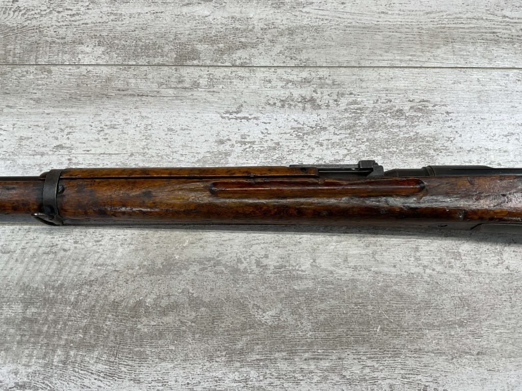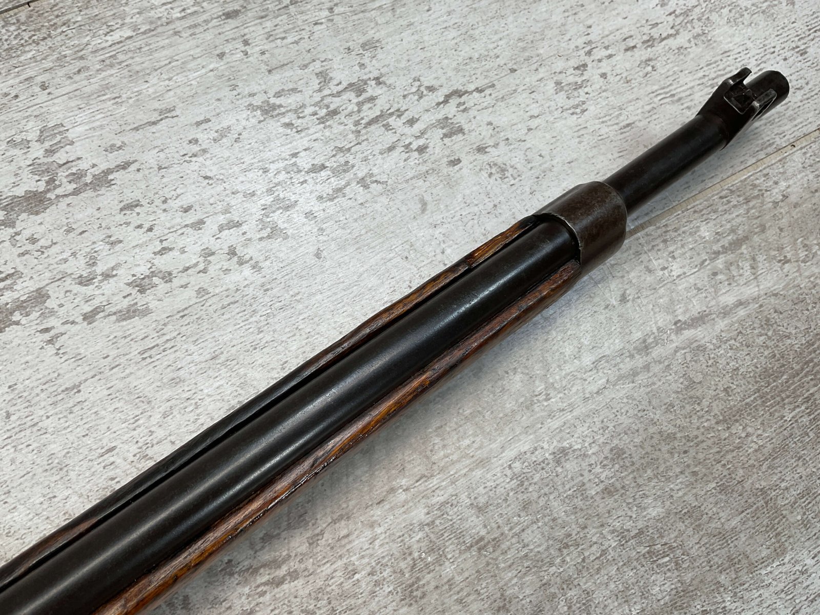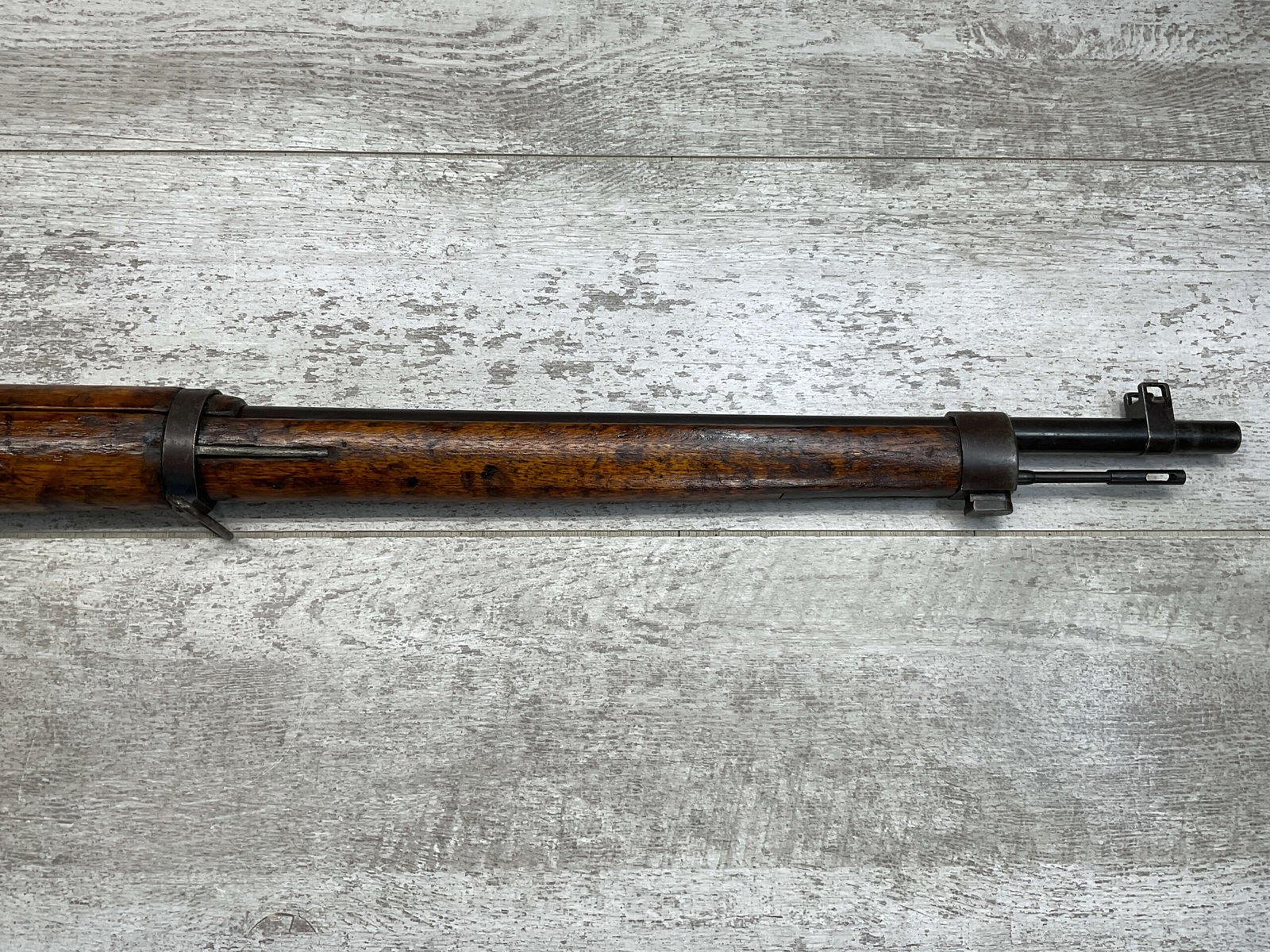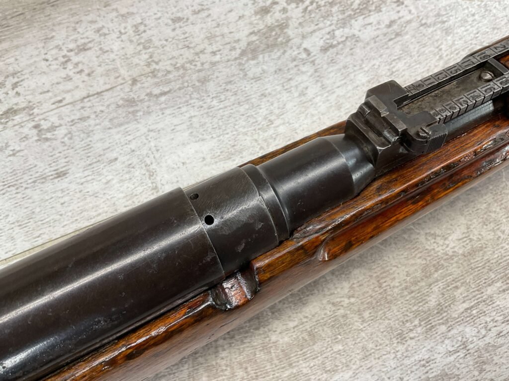 JAPANESE NAGOYA TYPE 38 ARISAKA 6.5X50 BOLT ACTION RIFLE, GROUND MUM #60696, NAGOYA ARSENAL, LIGHT IMPORT UNDERSIDE OF BBL, GOOD WOOD W/TYPICAL NICKS & DINGS, NON MATCHING, DUST COVER, CLEANING ROD, GOOD ORIGIANL BLUE TURNING BROWN PATINA IN AREAS, DARK BORE W/FROSTING THROUGHOUT,