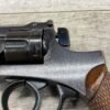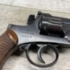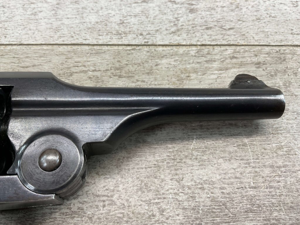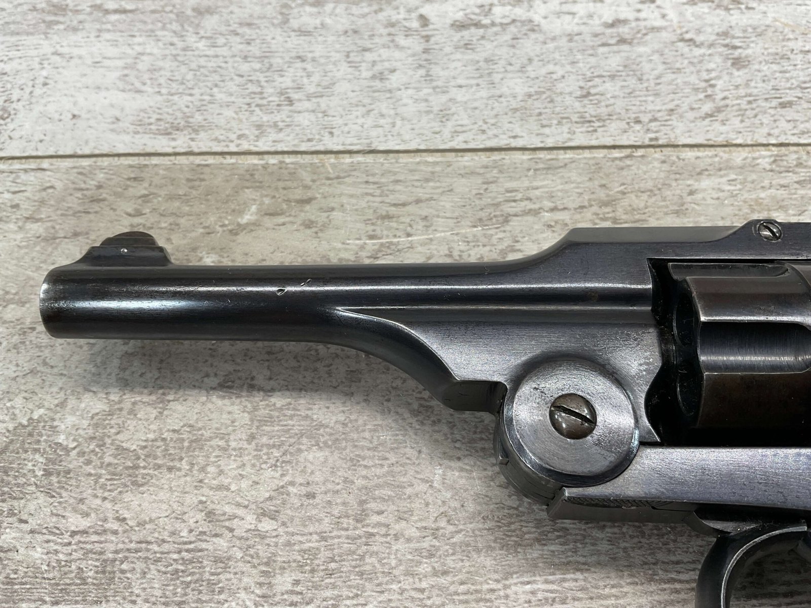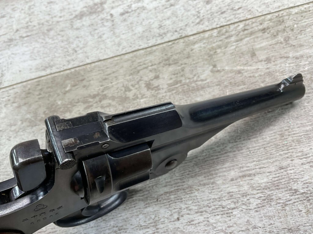 JAPANESE TYPE 26 9X22mmR REVOLVER #56265, 4 3/4″ BBL, EXC BRIGHT BORE & RIFLING, 9X22mmR, TOKYO ARTILLERY ARSENAL, PRE 1935, HAMMERLESS DESIGN, ORIGINAL BLUE FINISH W/SOME FINISH LOSS ON CYLINDER, EXC CHECKERED WOOD GRIPS, CYLINDER DOES NOT MATCH, DA DOUBLE ACTION ONLY TOP BREAK DESIGN, LANYARD LOOP, EXC OVERALL CONDITION