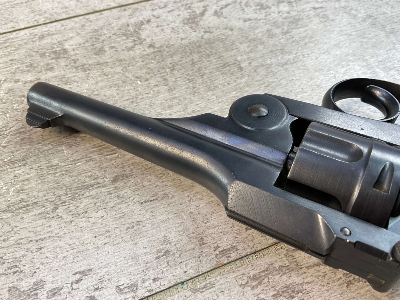 JAPANESE TYPE 26 9X22mmR REVOLVER, JAMES EARL JONES “FAVORITES” COLLECTION, MINTY #35012, 4.75″ BARREL, EXC BORE & RIFLING, EXC CHECKERED WALNUT GRIPS, 98%+ ORIGINAL FINISH W/ HIGH EDGE WEAR, CYLINDER DOES NOT MATCH, TOP BREAK DESIGN IN DOUBLE ACTION, LANYARD RING, CONDITION AS SHOWN IN PICTURES, FROM THE JAMES EARL JONES “FAVORITES” COLLECTION W/ CERTIFICATE OF AUTHENTICITY.