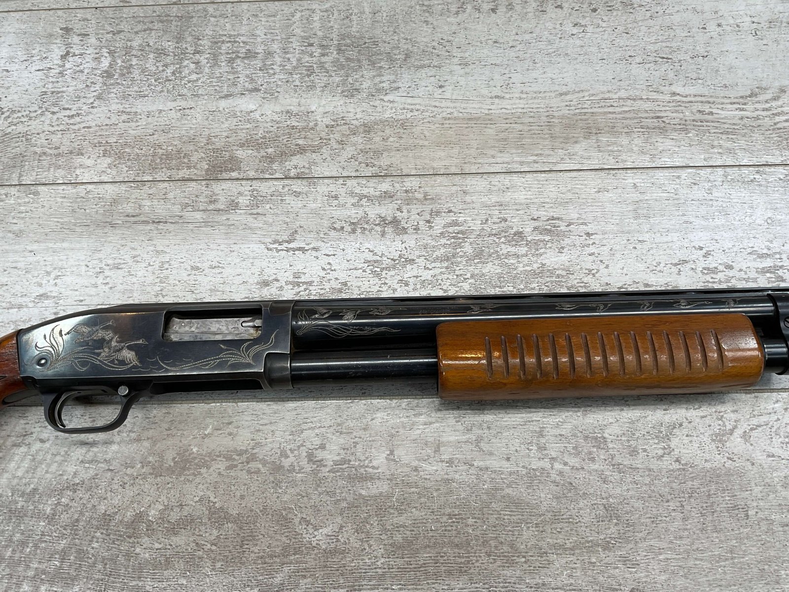 - Blue Finish: The blue finish adds a touch of elegance to this shotgun, enhancing its aesthetic appeal while providing corrosion resistance and durability.