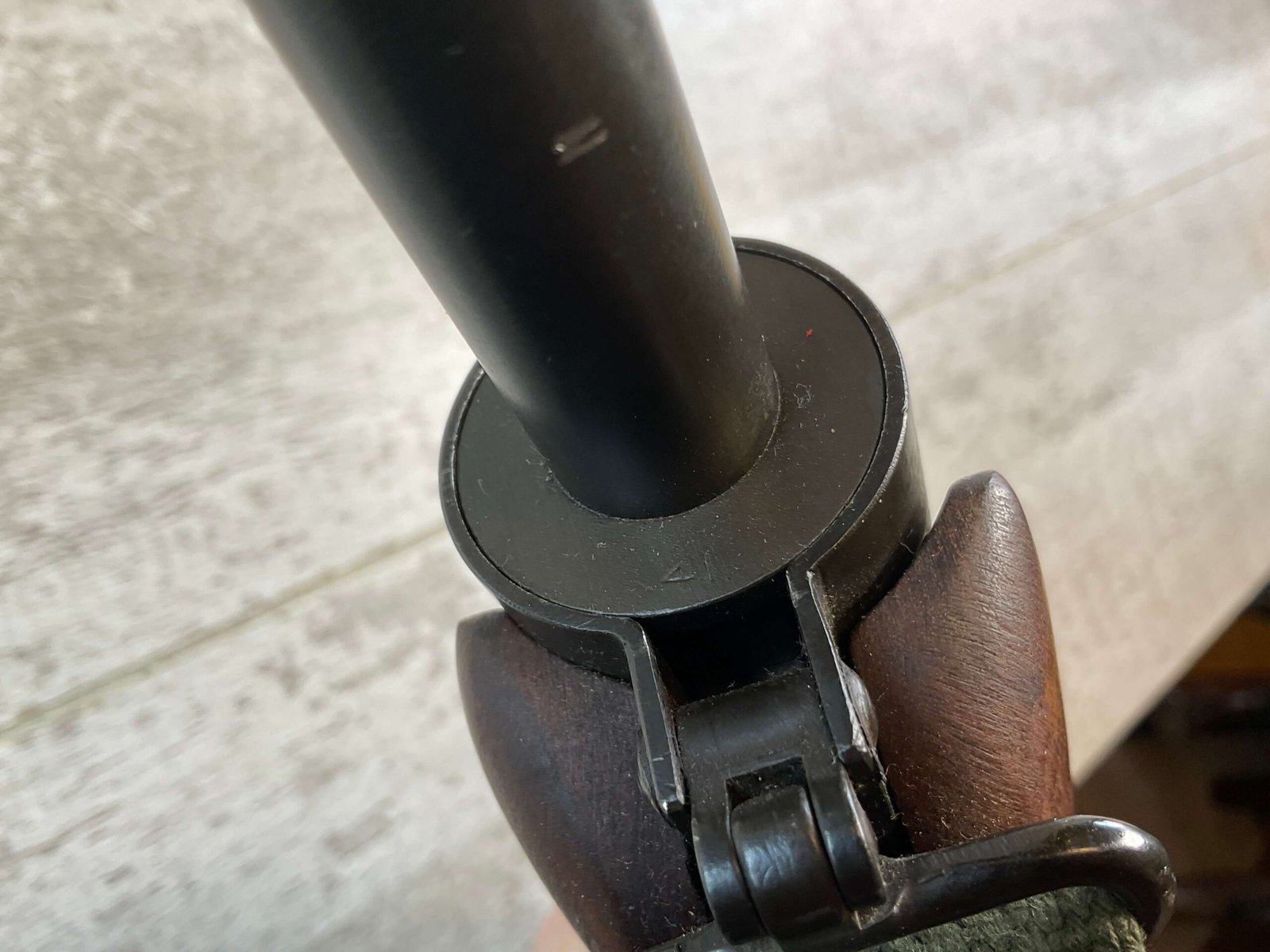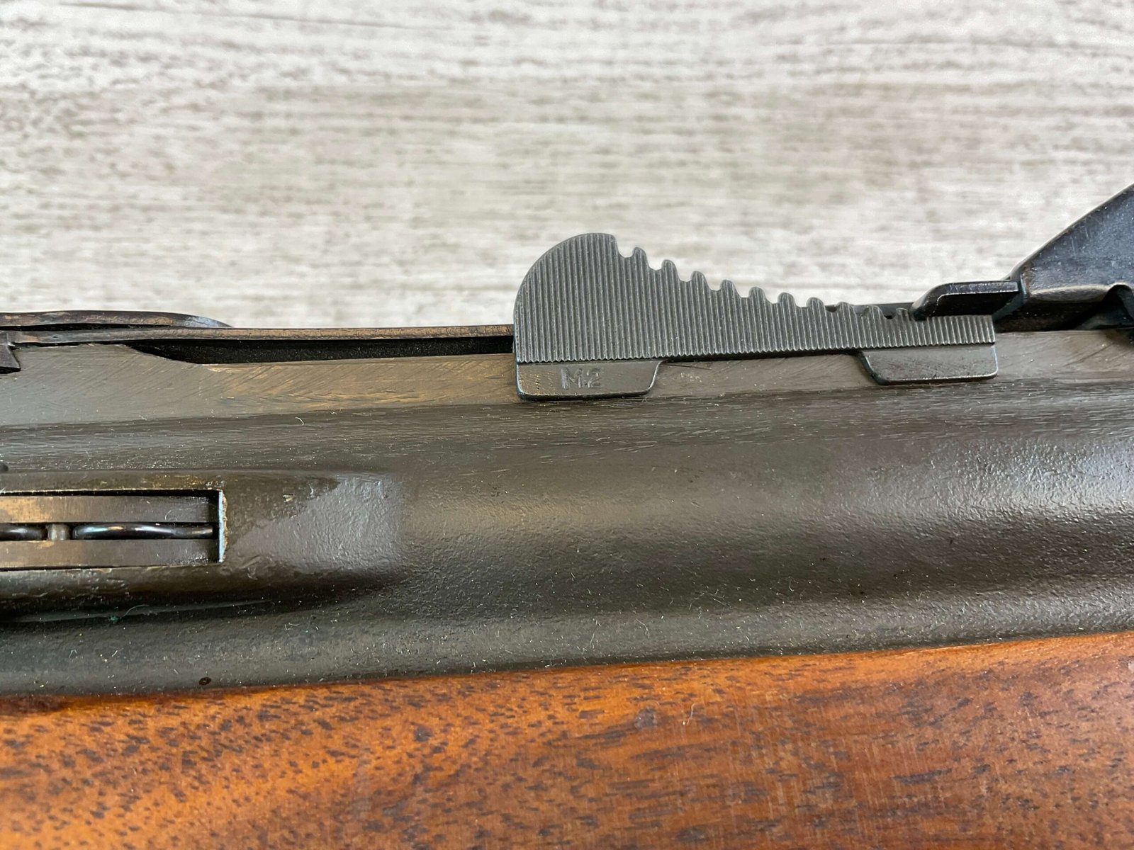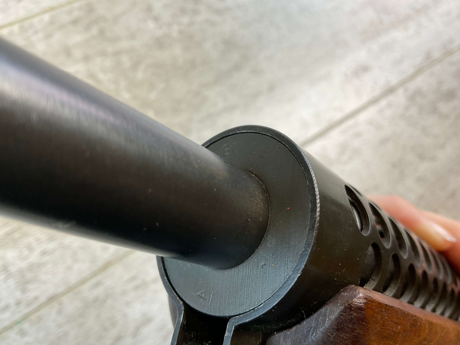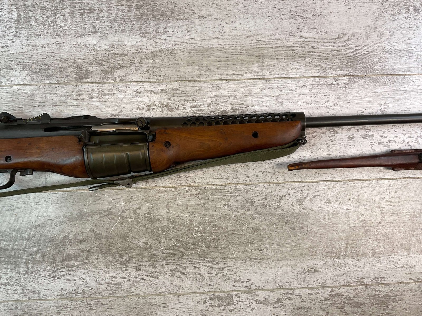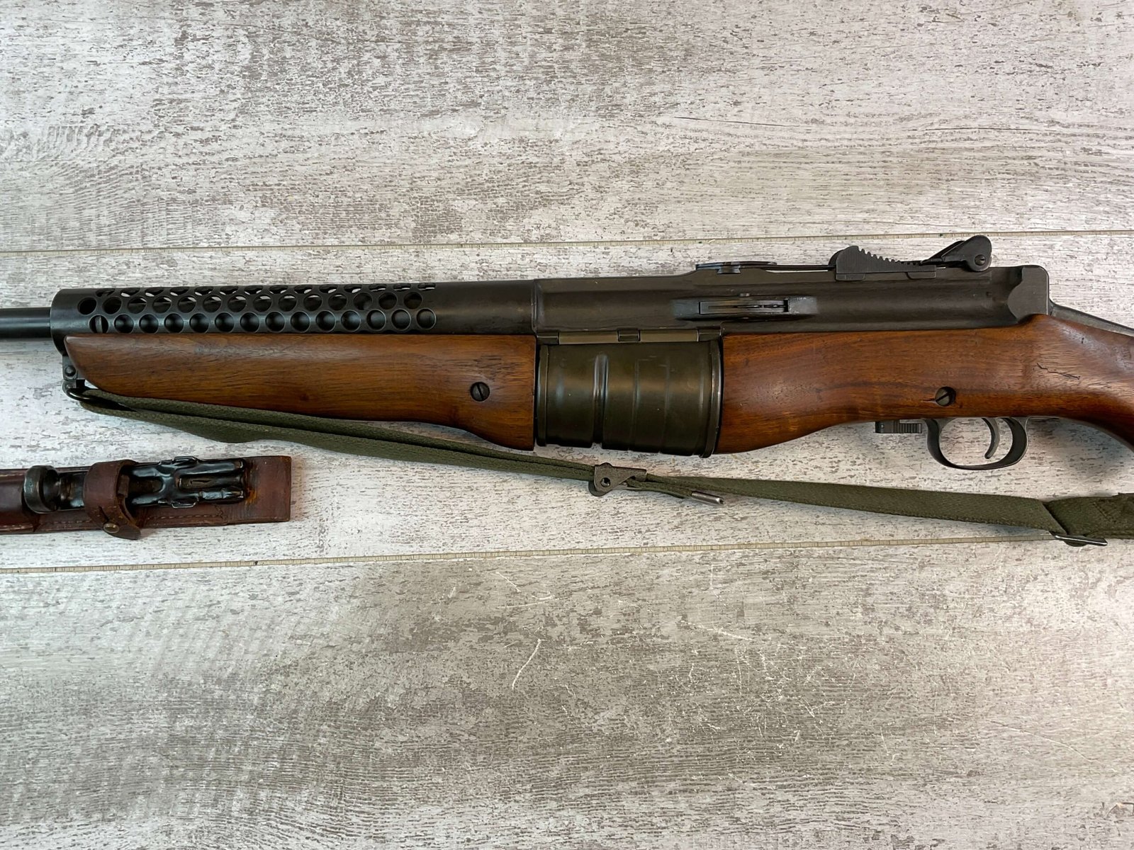 JOHNSON AUTOMATICS MODEL 1941 .30-06 CAL MILITARY RIFLE, JAMES EARL JONES COLLECTION, NEAR NEW W/ BAYONET #A3905, 22″ ORIGINAL BARREL, EXC PARKERIZED METAL FINISH, EXC WALNUT PISTOL GRIP STOCK, SHORT RECOIL OPERATED ROTATING BOLT FED BY INTERNAL 10 SHOT ROTARY MAGAZINE, ADJ TANGENT REAR SIGHT & BLADE FRONT SIGHT, TOP OF RECEIVER SHOWS CORRECT MARKING OF “U.S. PATENT NOS./2,094,156-2,146,749/2,181,131-2,215,470/AND OTHER U.S. AND FOREIGN/PATS. AND PATS. PENDING. MODEL MARKING READS CAL. 30-’06 SEMI-AUTO/”JOHNSON AUTOMATICS”/MODEL OF 1941/MADE IN PROVIDENCE, R.I., U.S.A.”, RIGHT RECEIVER SHOW “CRANSTON/ARMS/CO” IN TRIANGLE, OIL FINISH, GREEN CANVAS SLING, ORIGINAL UNISSUED BAYONET (STILL HAS PLASTIC DIP ON “HANDLE” AREA) VG-EXC LEATHER HOLSTER FOR BAYONET, NOT SURE YOU WILL FIND ANOTHER BAYO OR GUN IN THIS REMARKABLE VERY RARE CONDITION, CONDITION AS SHOWN IN PICTURES, FROM THE JAMES EARL JONES “FAVORITES” COLLECTION W/ CERTIFICATE OF AUTHENTICITY.