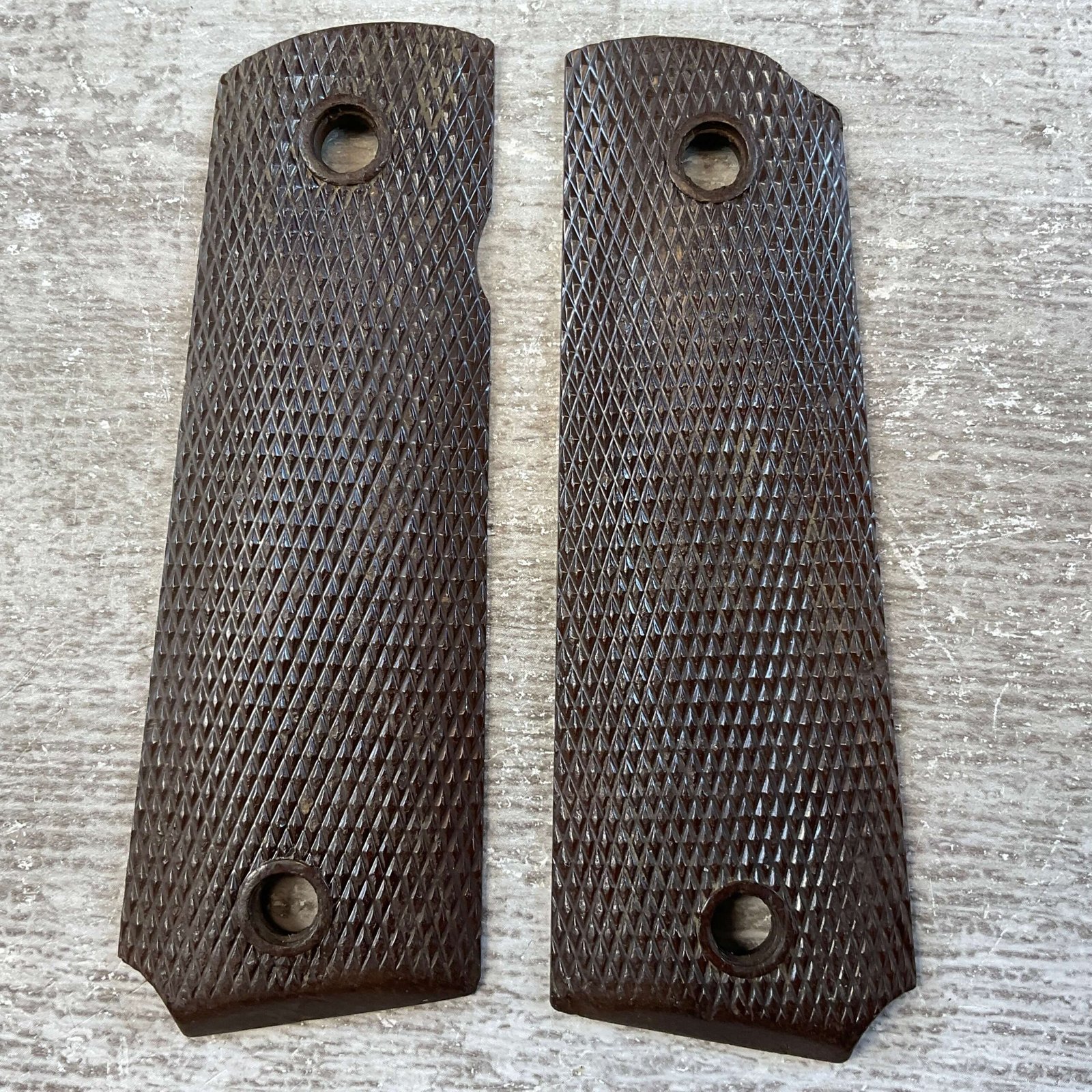 KEYES FIBRE WWII BROWN BAKELITE 1911 GRIPS, JAMES EARL JONES COLLECTION