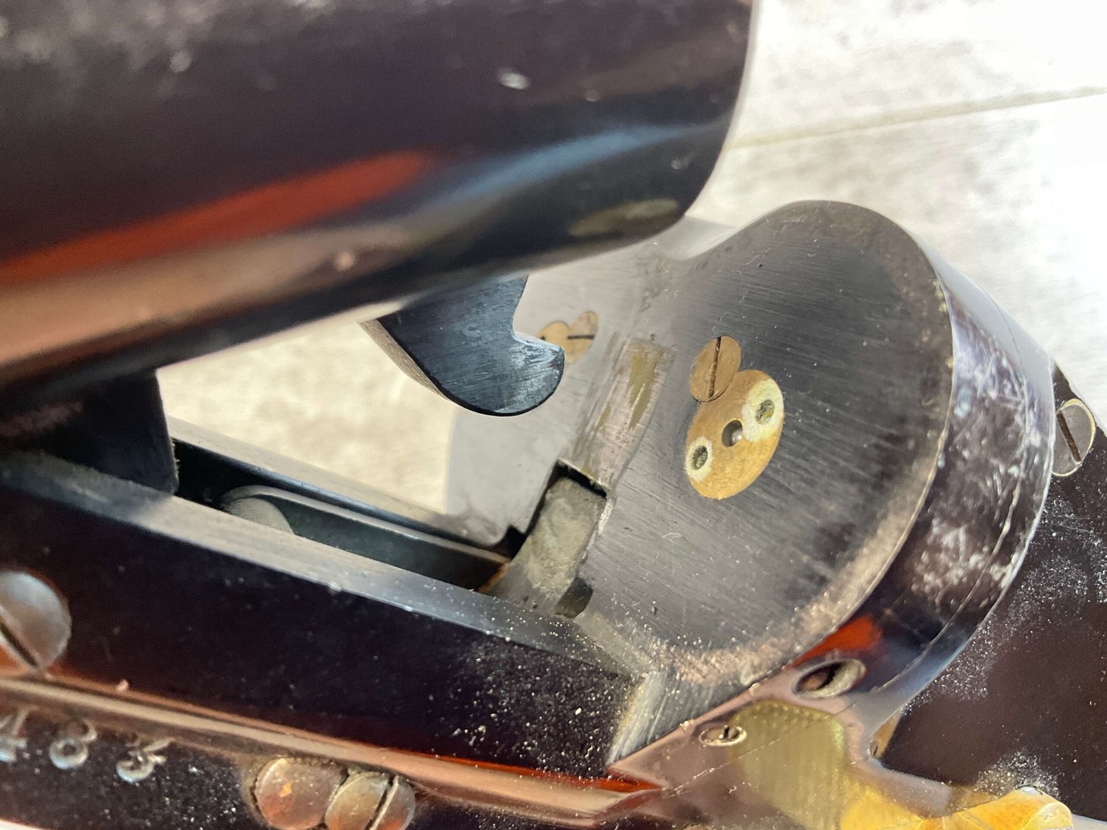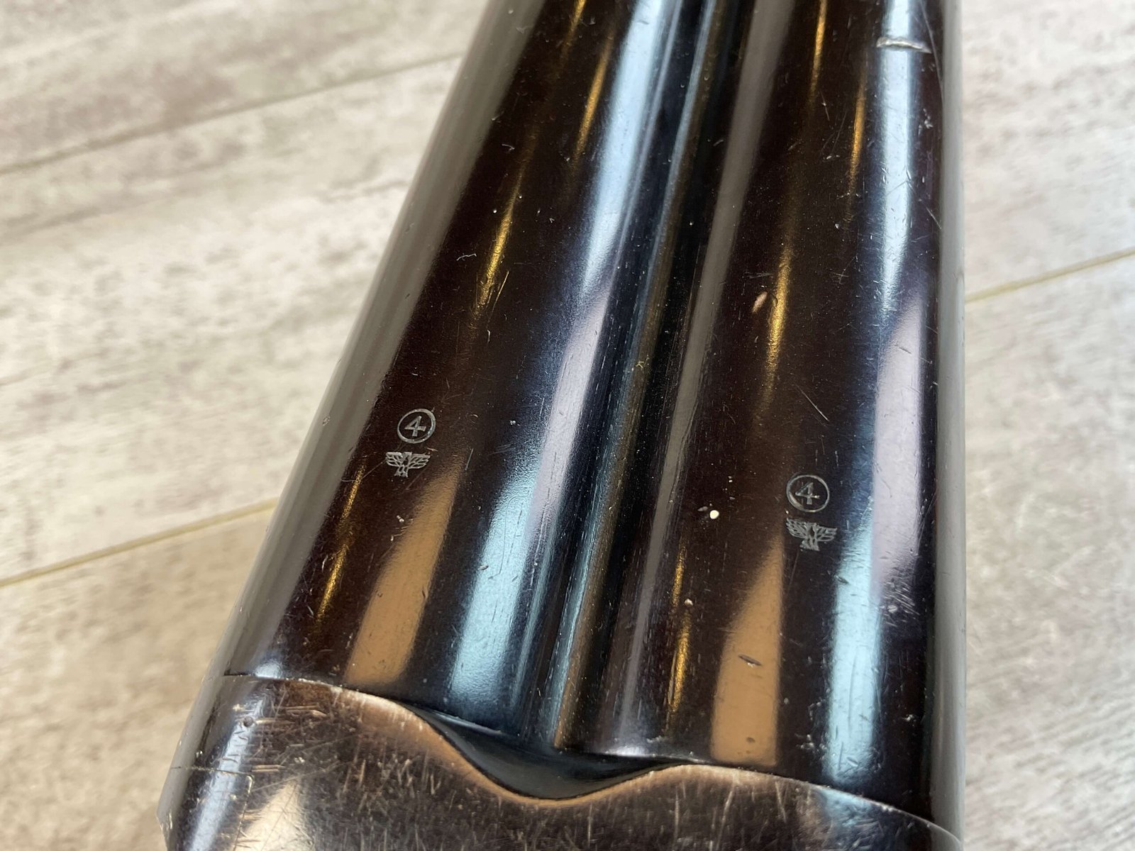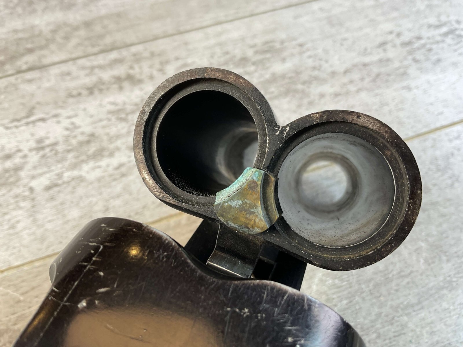 KRIEGHOFF LUFTWAFFE DOUBLE BARREL FLIEGER LEUCHTPISTOLE L. FLARE PISTOL #19142, 26.5MM, MARKED “FL. 24483” ON LEFT SIDE OF FRAME, EXC CHECKERED MOLTED REDDISH-BROWN BAKELITE GRIPS, MARKED “FZS 1942”, SELECTOR SWITCH CAN FIRE 2 FLARES, THE LEFT, THE RIGHT OR BOTH AT THE SAME TIME, BRASS SAFETY ON LEFT SIDE, FULLY FUNCTIONING BREAK OPEN BARREL W/LEVER UNDER THE TRIGGER GUARD, ORIGINAL WAR FINISH W/MINOR WEAR & FINISH LOSS, CONDITION AS SHOWN IN PICTURES, FROM THE JAMES EARL JONES “FAVORITES” COLLECTION W/ CERTIFICATE OF AUTHENTICITY.