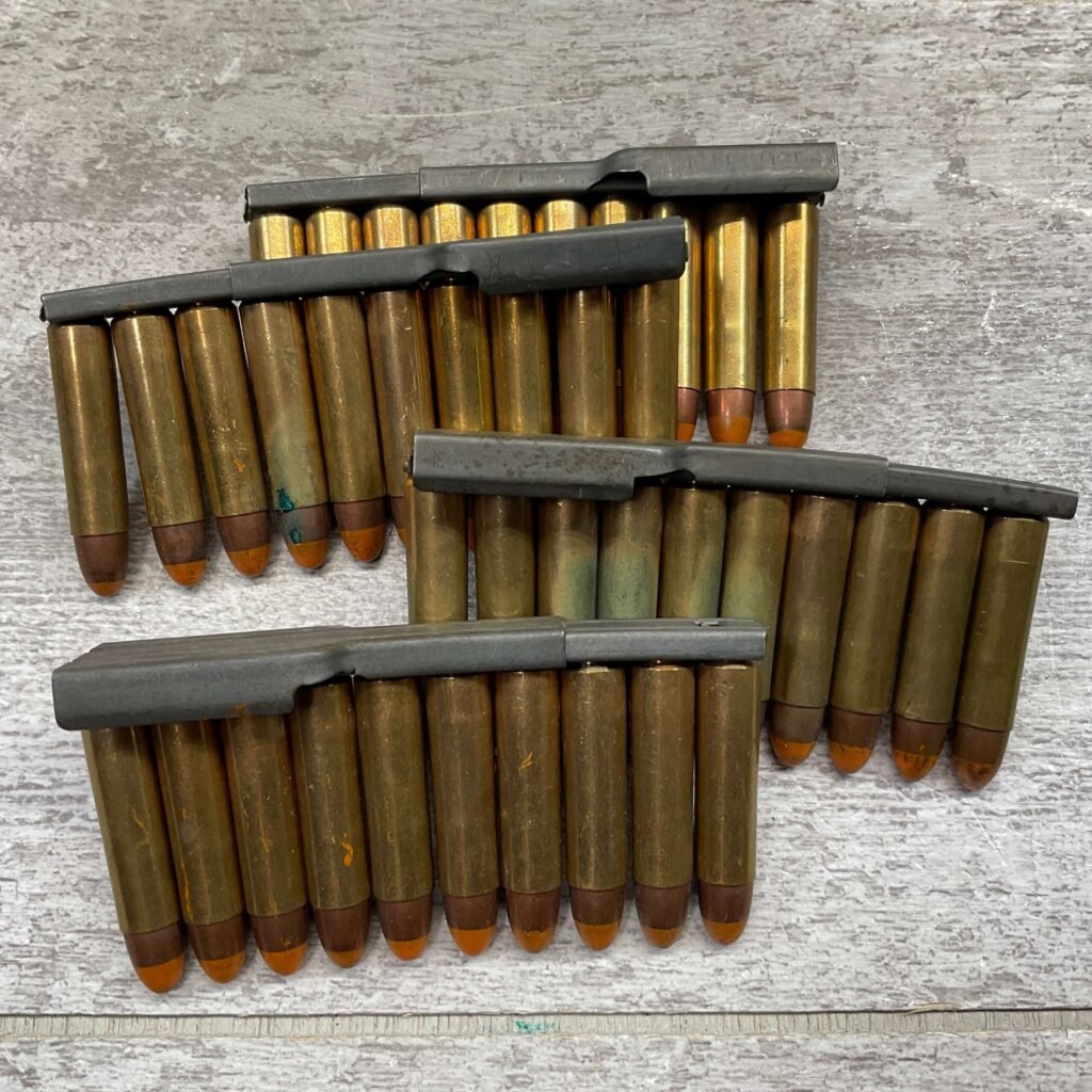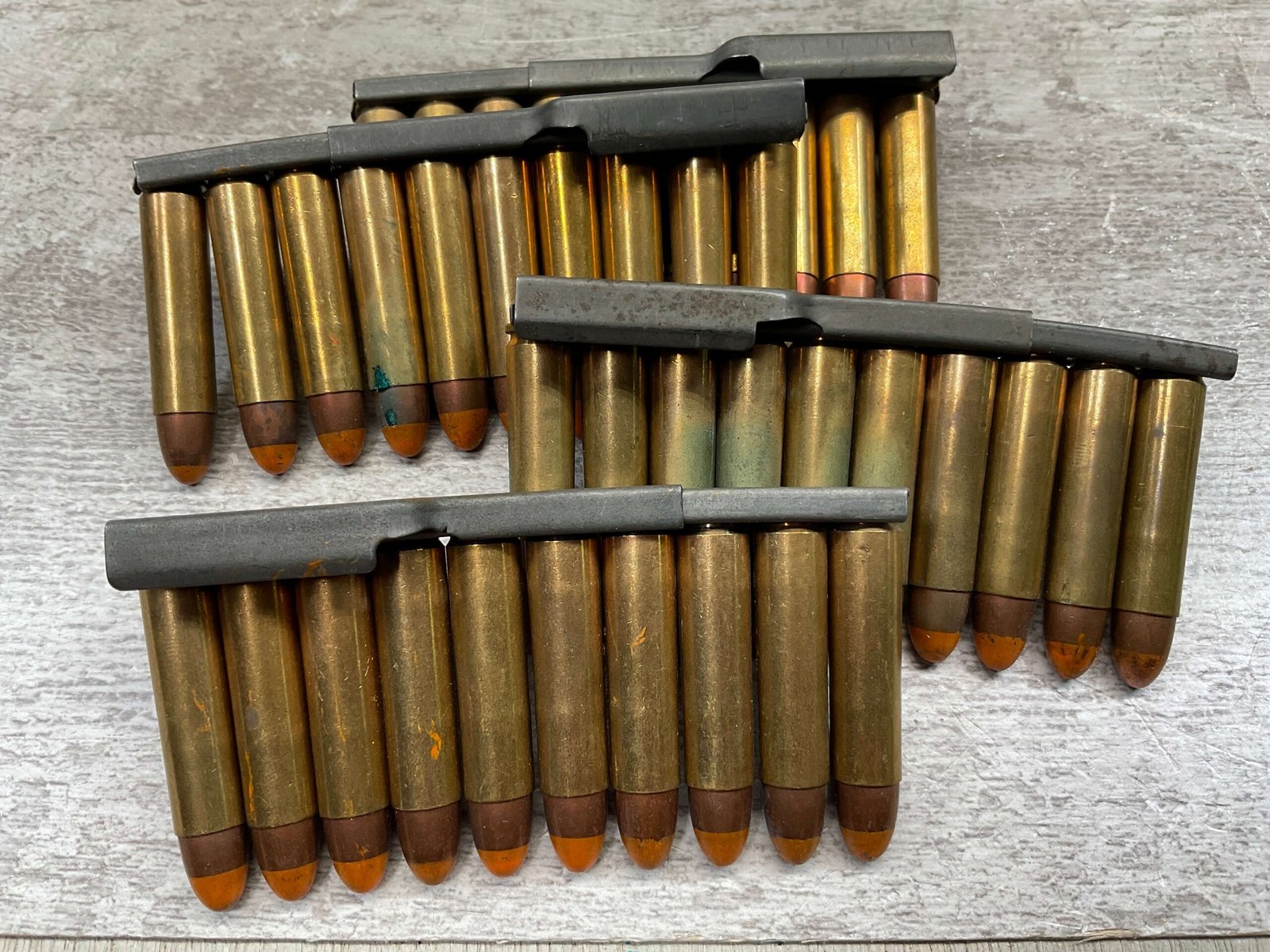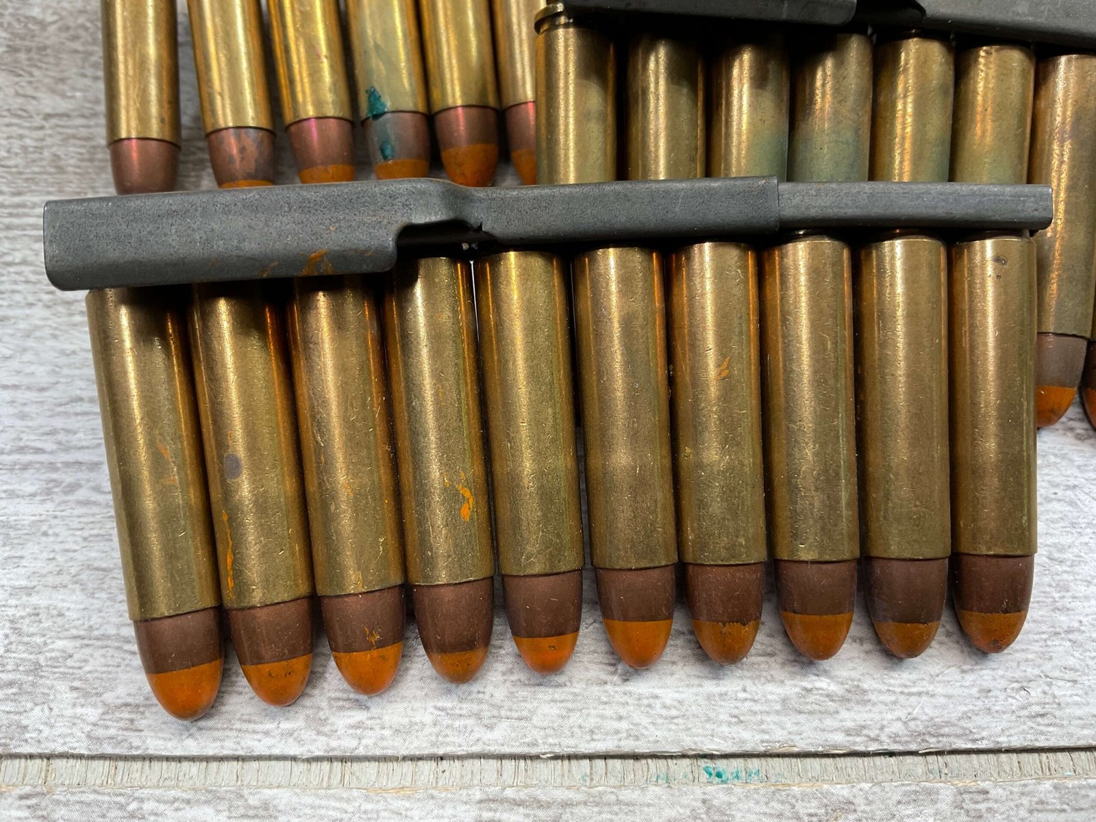 LAKE CITY AMMUNITION 1952 .30 U.S. CARBINE AMMO, QTY 40, VINTAGE, ON STRIPPER CLIPS, HEADSTAMP “LC / 52”