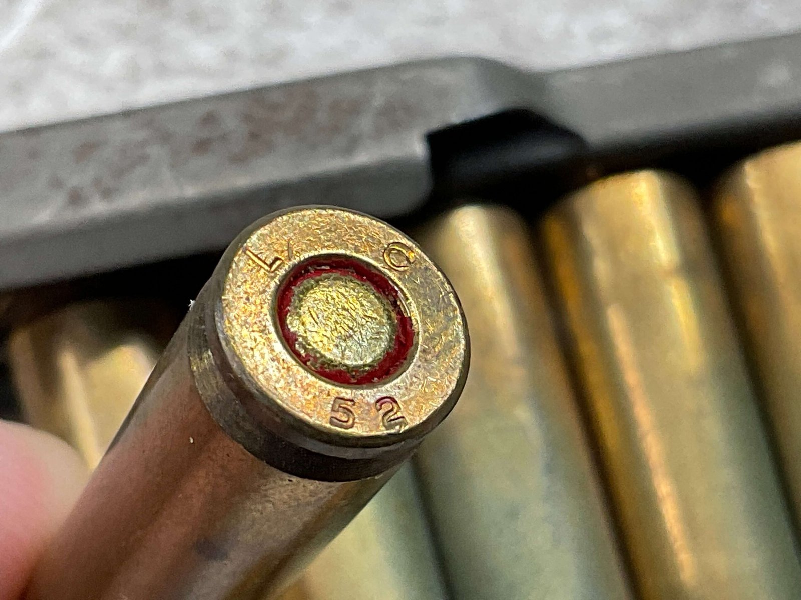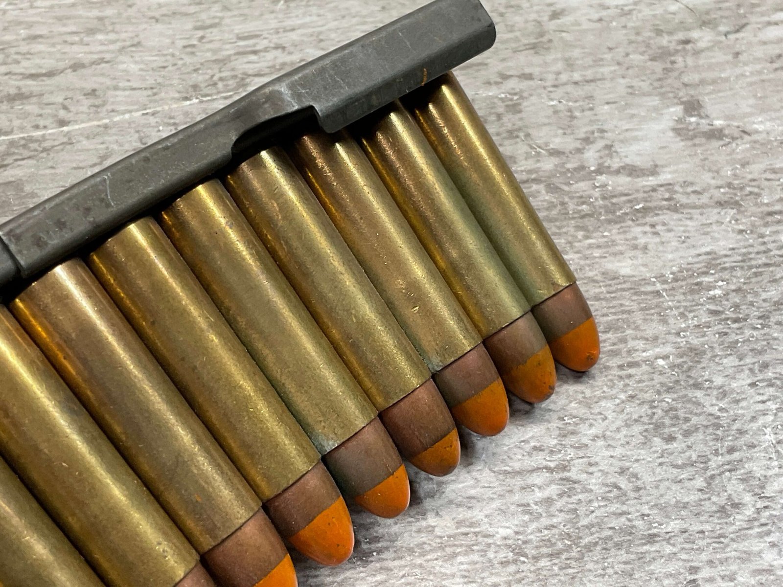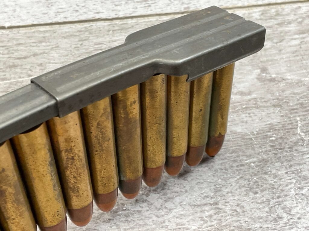 LAKE CITY AMMUNITION 1952 .30 U.S. CARBINE AMMO, QTY 40, VINTAGE, ON STRIPPER CLIPS, HEADSTAMP “LC / 52”