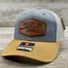 LEATHERING CO. RICHARDSON CUSTOM CHECKPOINT CHARLIE’S HEATHER GREY/BIRCH/AMBER GOLD TRUCKER HAT, NEW