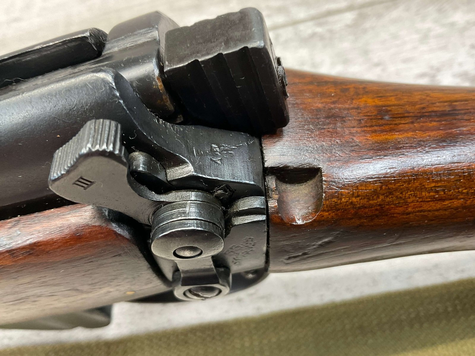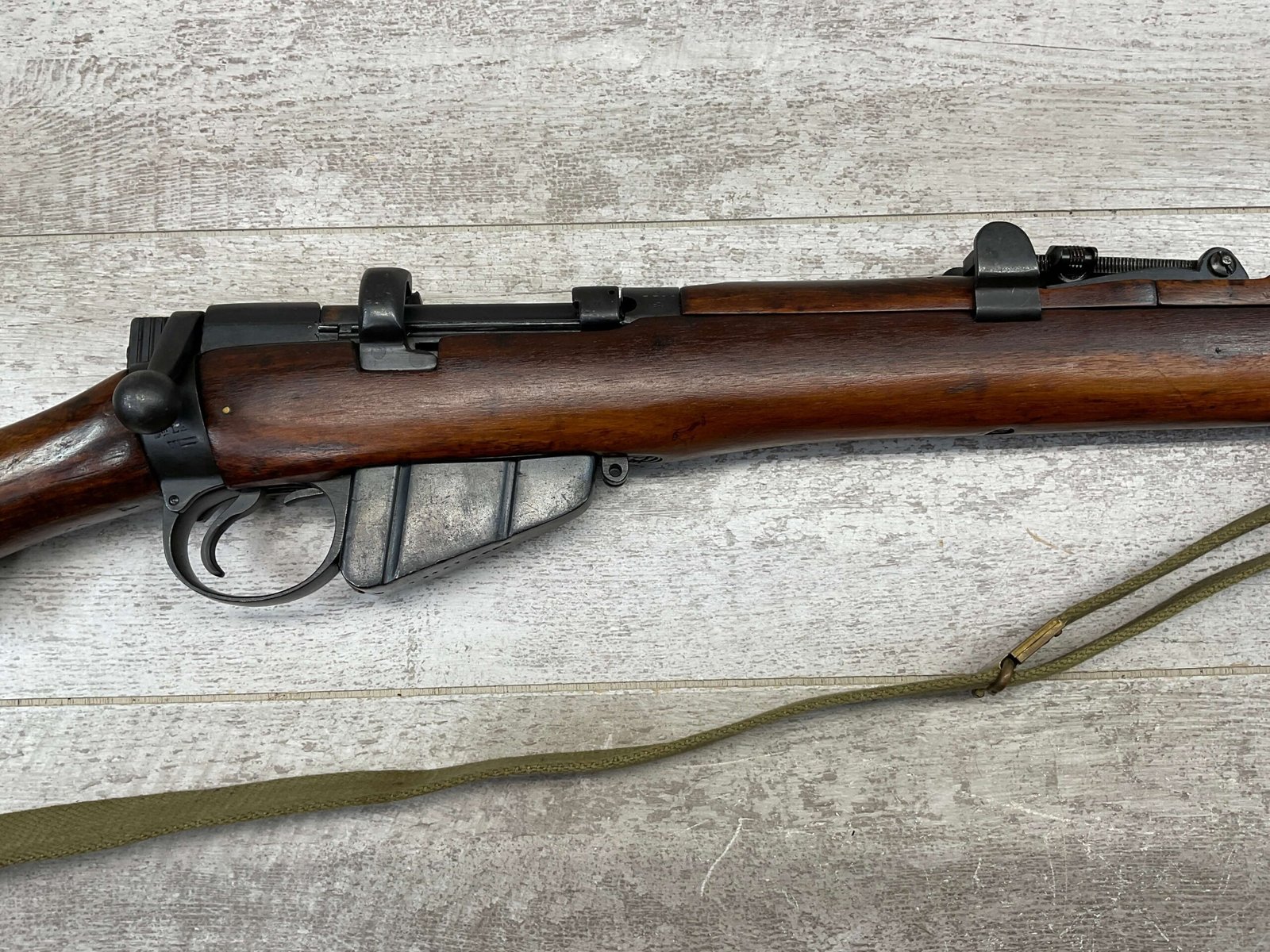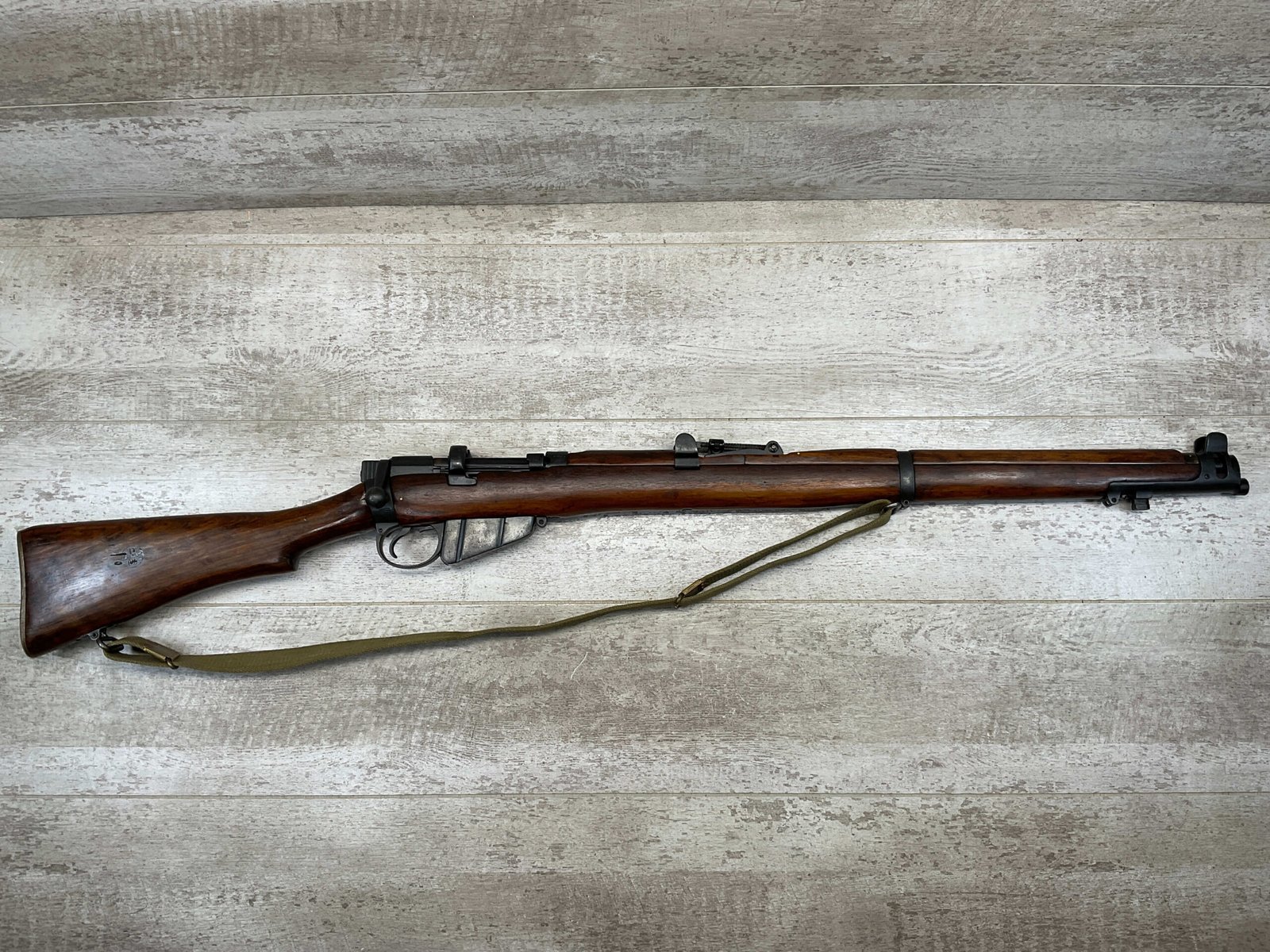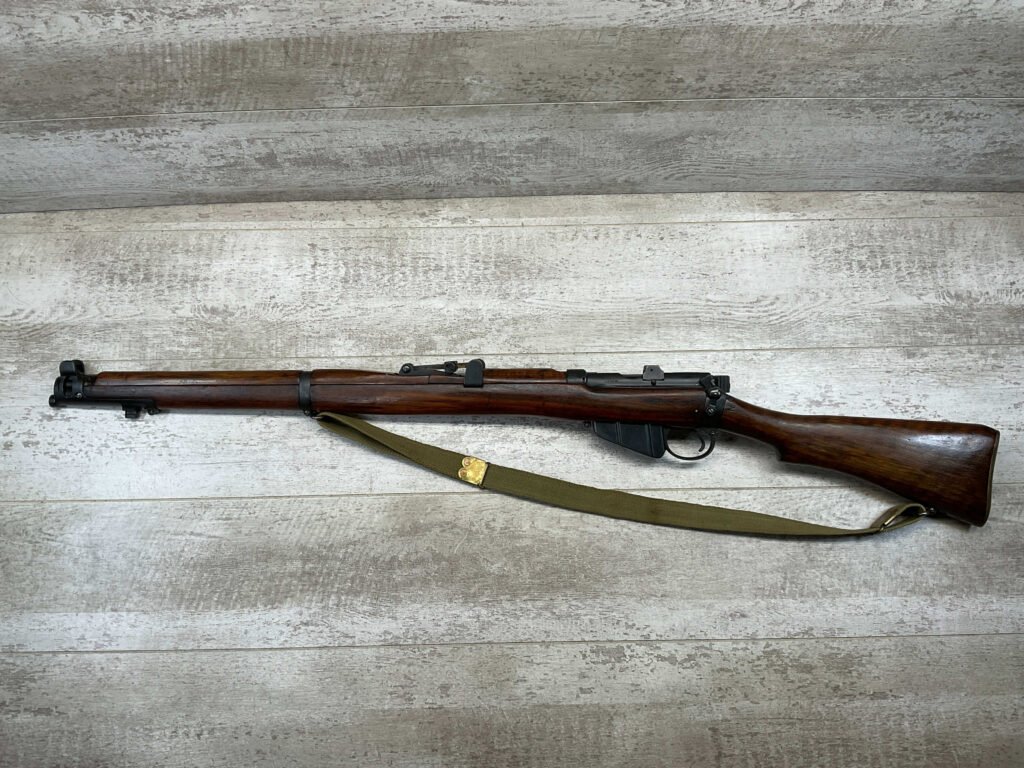 LEE ENFIELD NO 1 MK III .303 BRITISH BOLT ACTION RIFLE #7796, 303 BRITISH, ALL MATCHING EXCEPT FOR THE MAGAZINE, DARKER BORE W/ FROSTING THROUGHOUT, 90%+ PARKERIZED FINISH, VG-EXC STOCK NICELY REFINISHED, CANVAS SLING, BAYONET & REENACTMENT ITEMS INCLUDED AS WELL AS AMMO & CLIPS, EXC OVERALL & READY TO TAKE TO THE RANGE!!