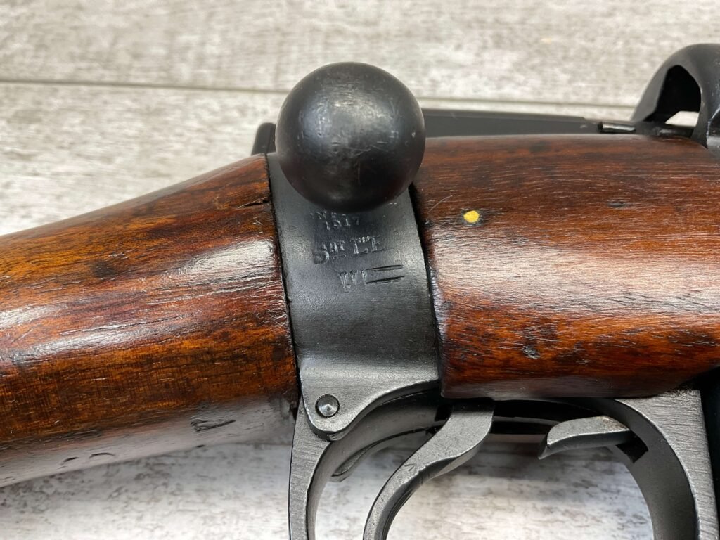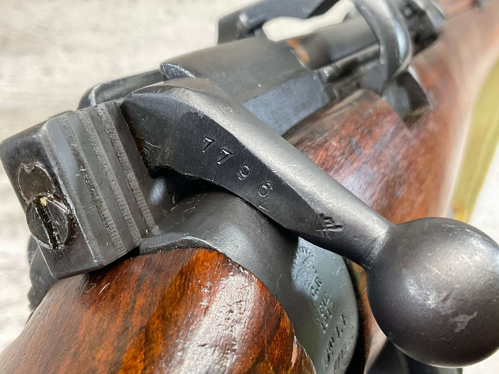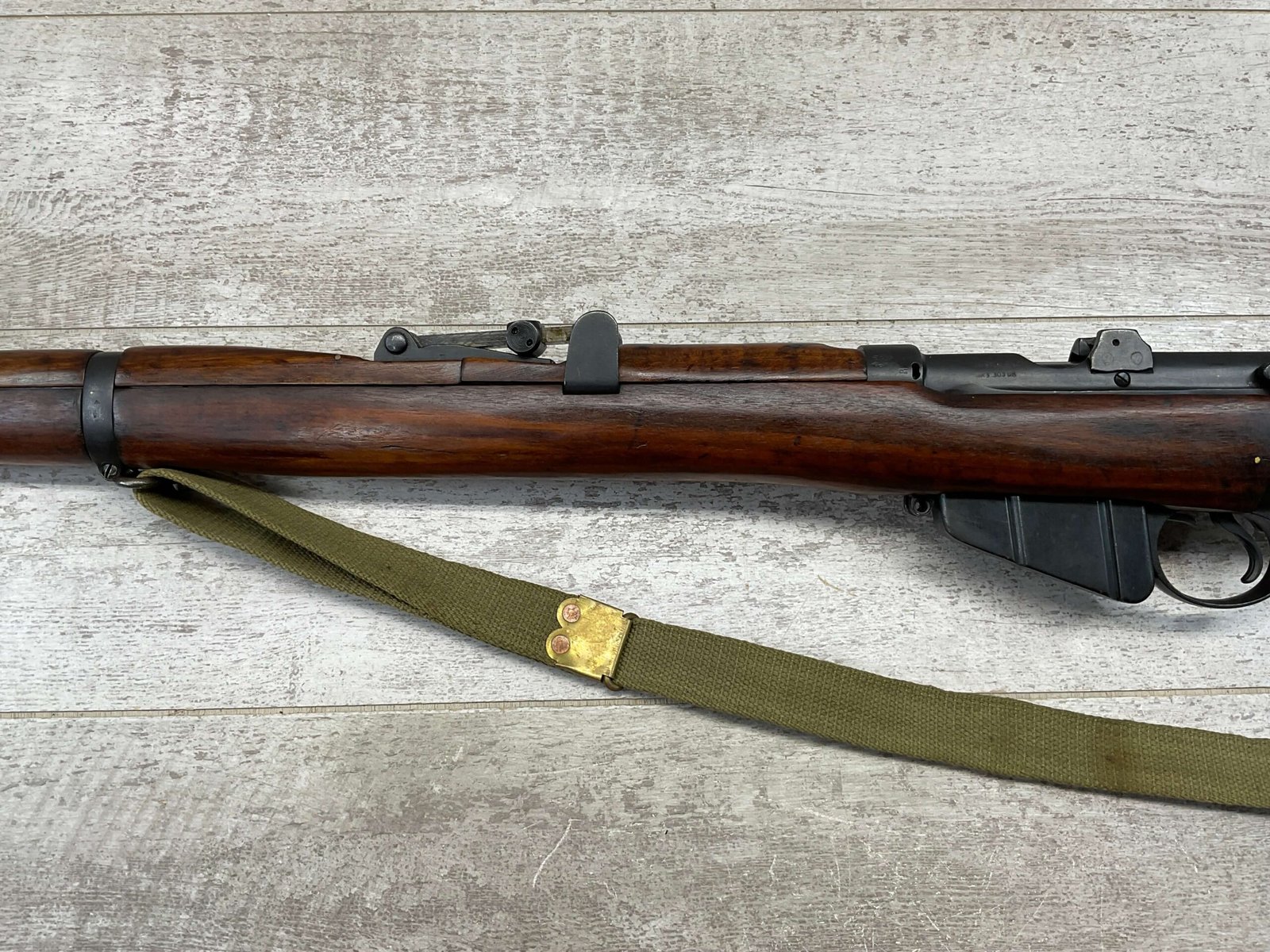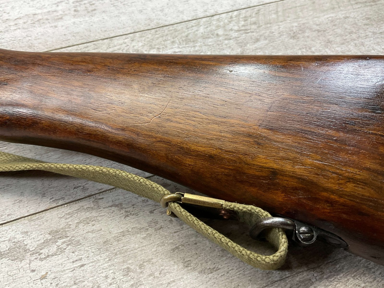 LEE ENFIELD NO 1 MK III .303 BRITISH BOLT ACTION RIFLE #7796, 303 BRITISH, ALL MATCHING EXCEPT FOR THE MAGAZINE, DARKER BORE W/ FROSTING THROUGHOUT, 90%+ PARKERIZED FINISH, VG-EXC STOCK NICELY REFINISHED, CANVAS SLING, BAYONET & REENACTMENT ITEMS INCLUDED AS WELL AS AMMO & CLIPS, EXC OVERALL & READY TO TAKE TO THE RANGE!!